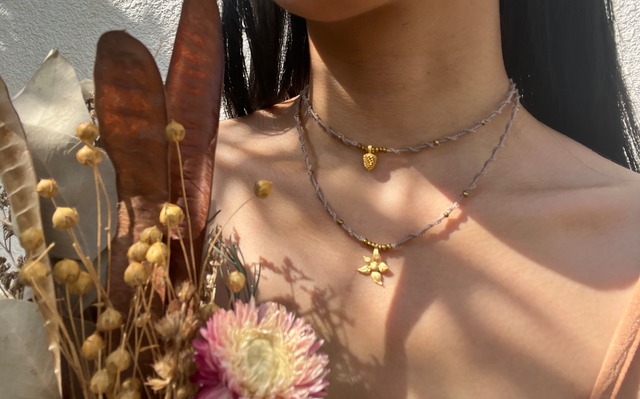 beige*(pine cone/Flower)hematite〜necklace
