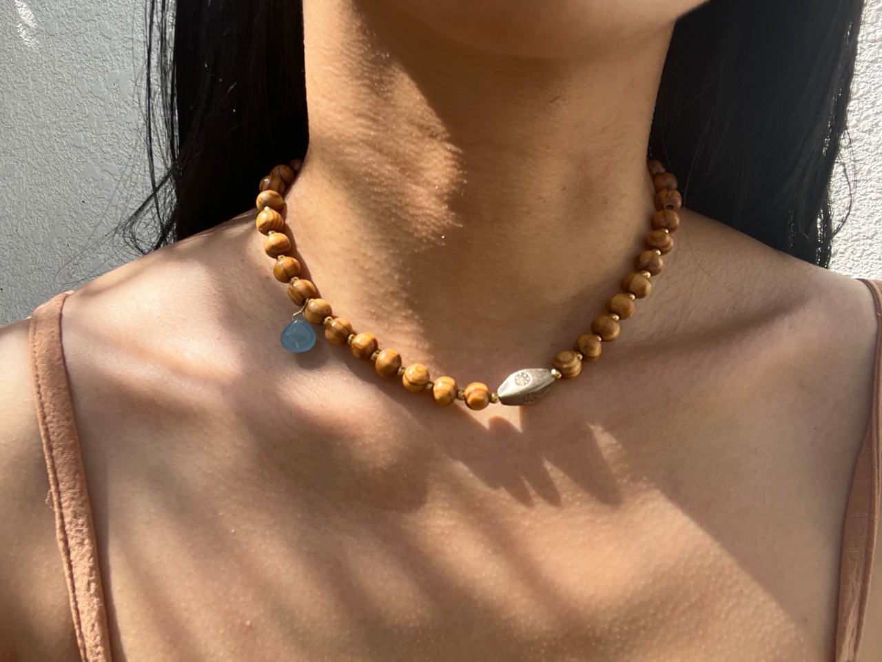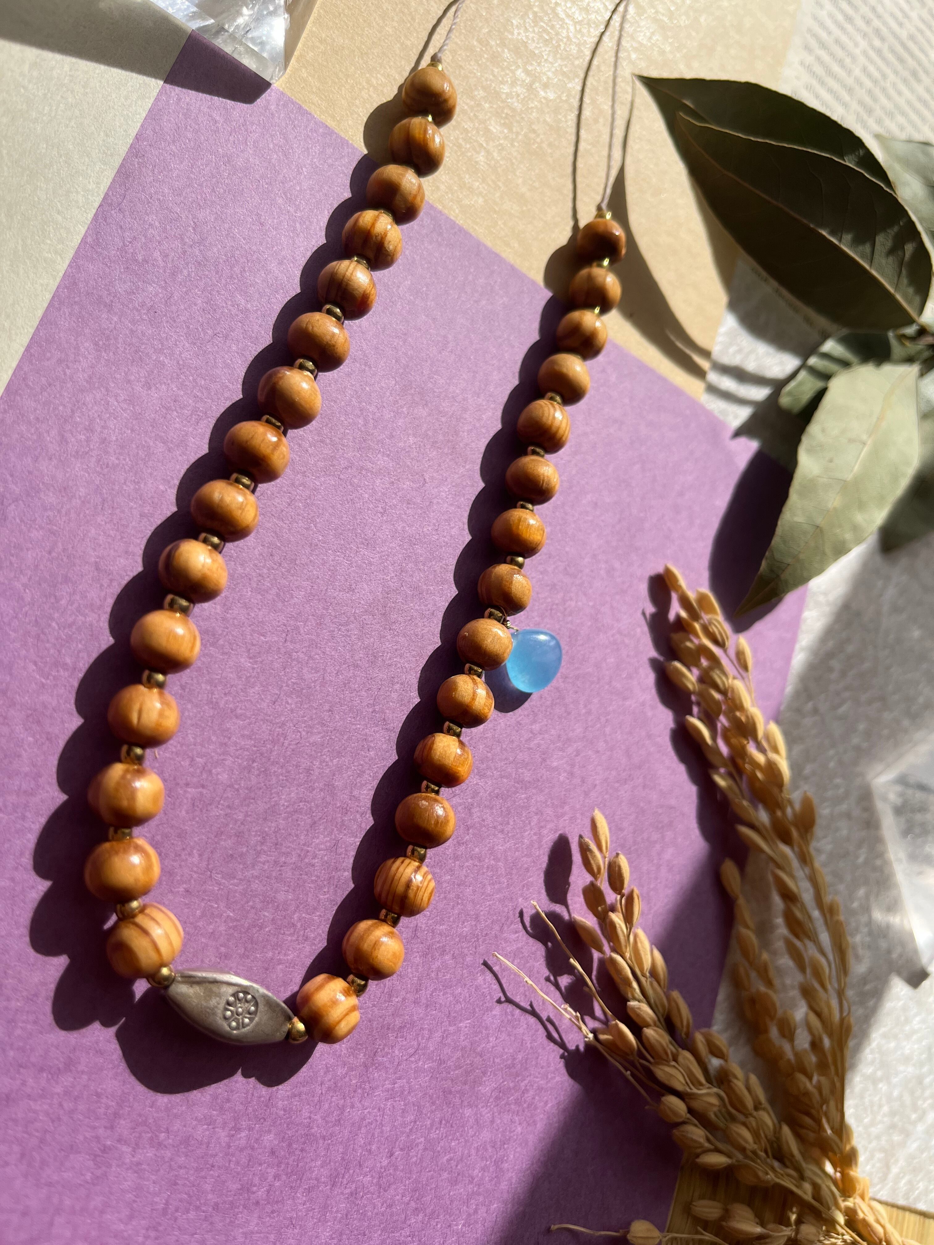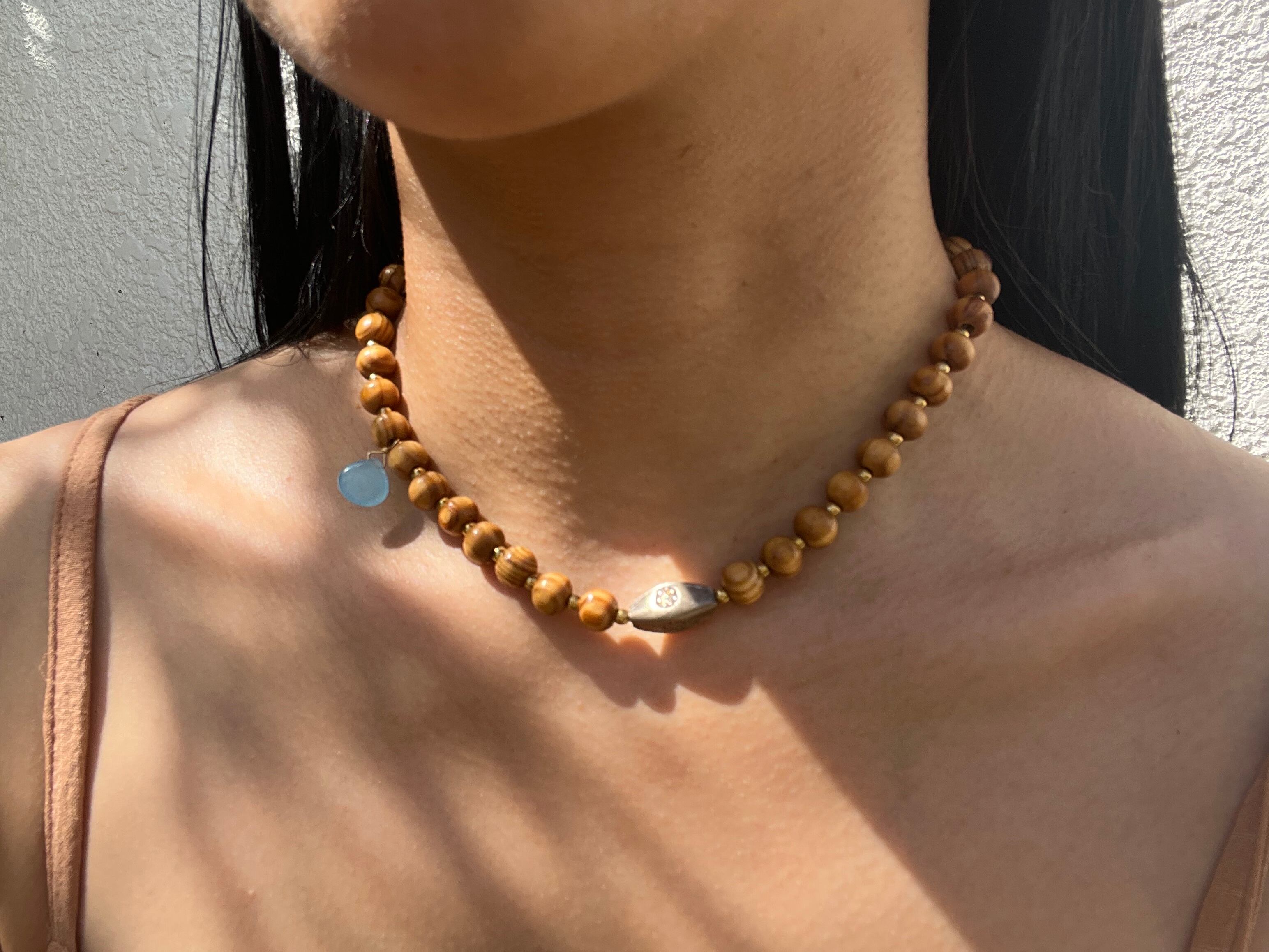手作業で丁寧に作られたこのネックレスは、天然素材の個性を大切にしたデザインです。