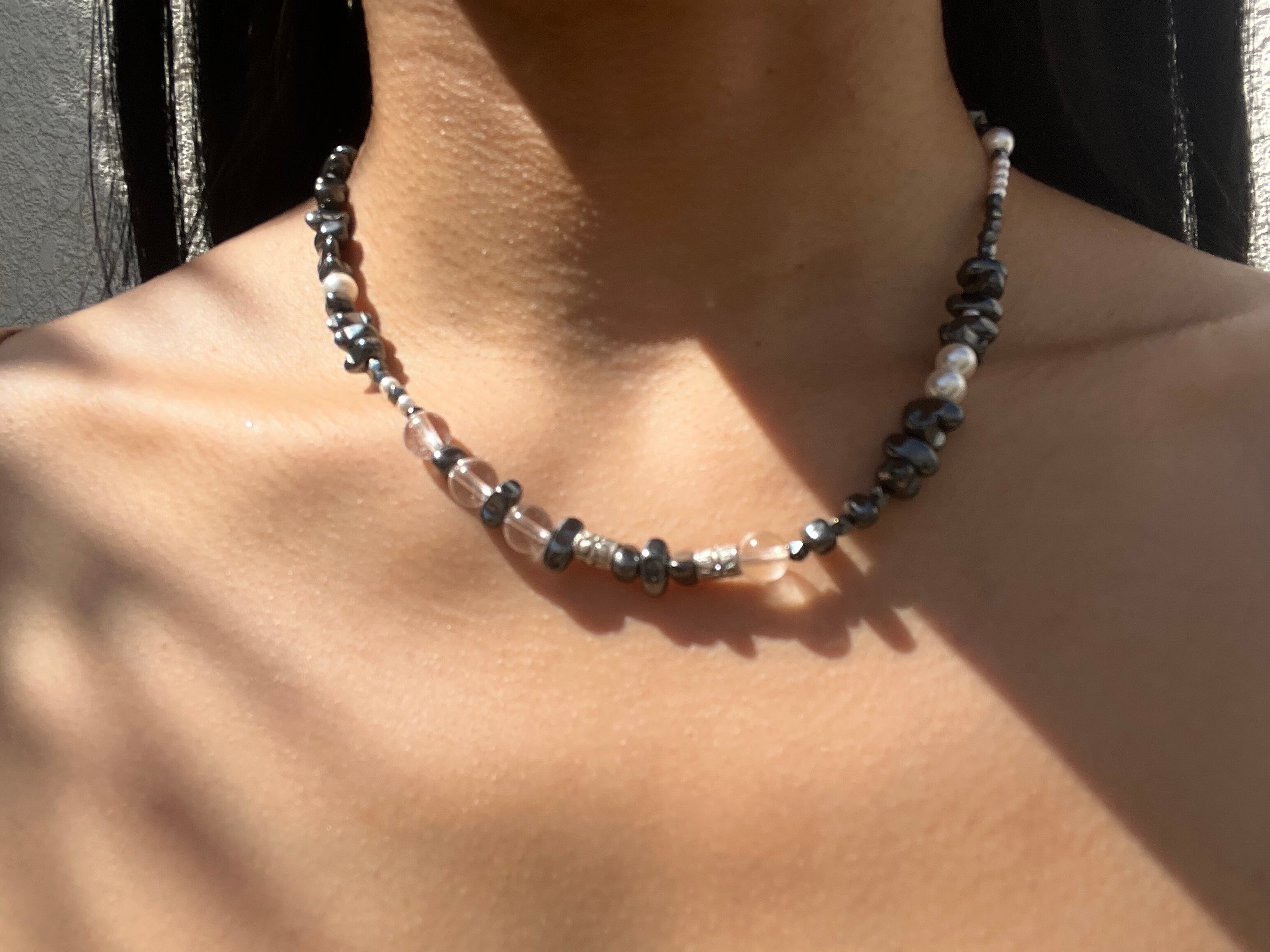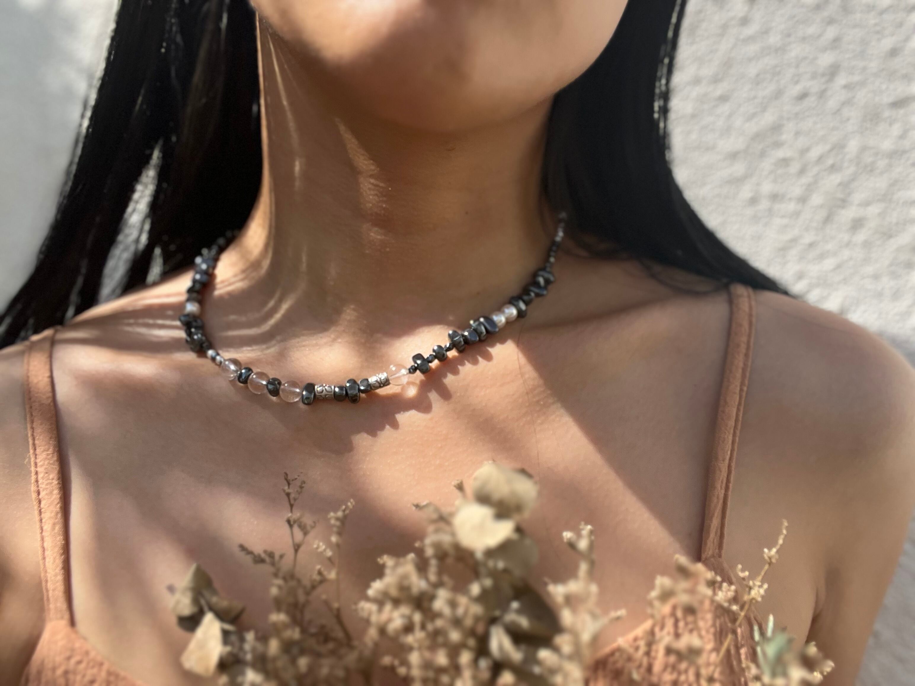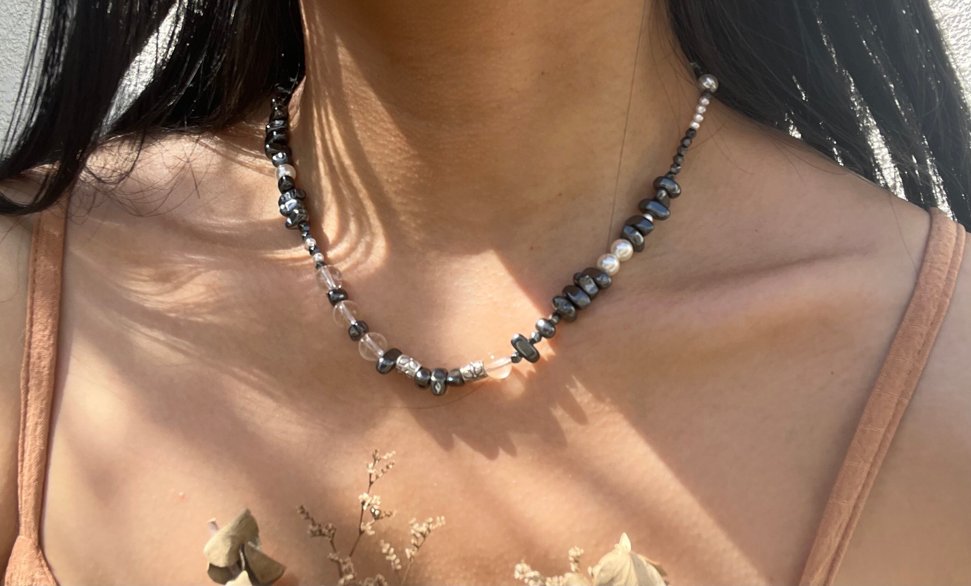 「NATURE'S HARMONY*自然の調和」は、カレンシルバー、ヘマタイト、水晶、スワロフスキーパールが織りなす魅力的なネックレスです。
