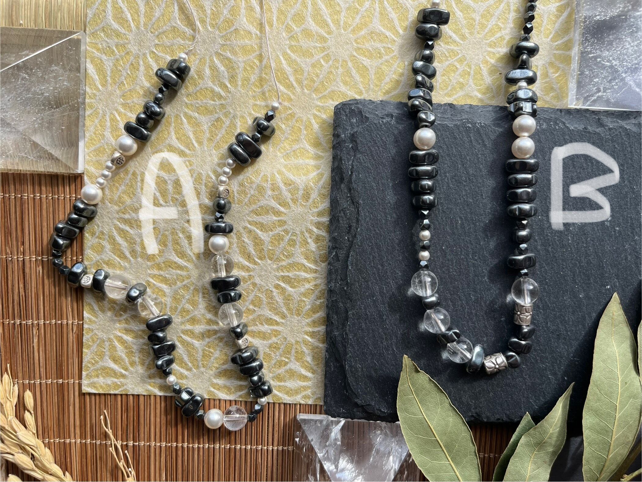 ・素材:カレンシルバー、ヘマタイト、水晶、スワロフスキーパール