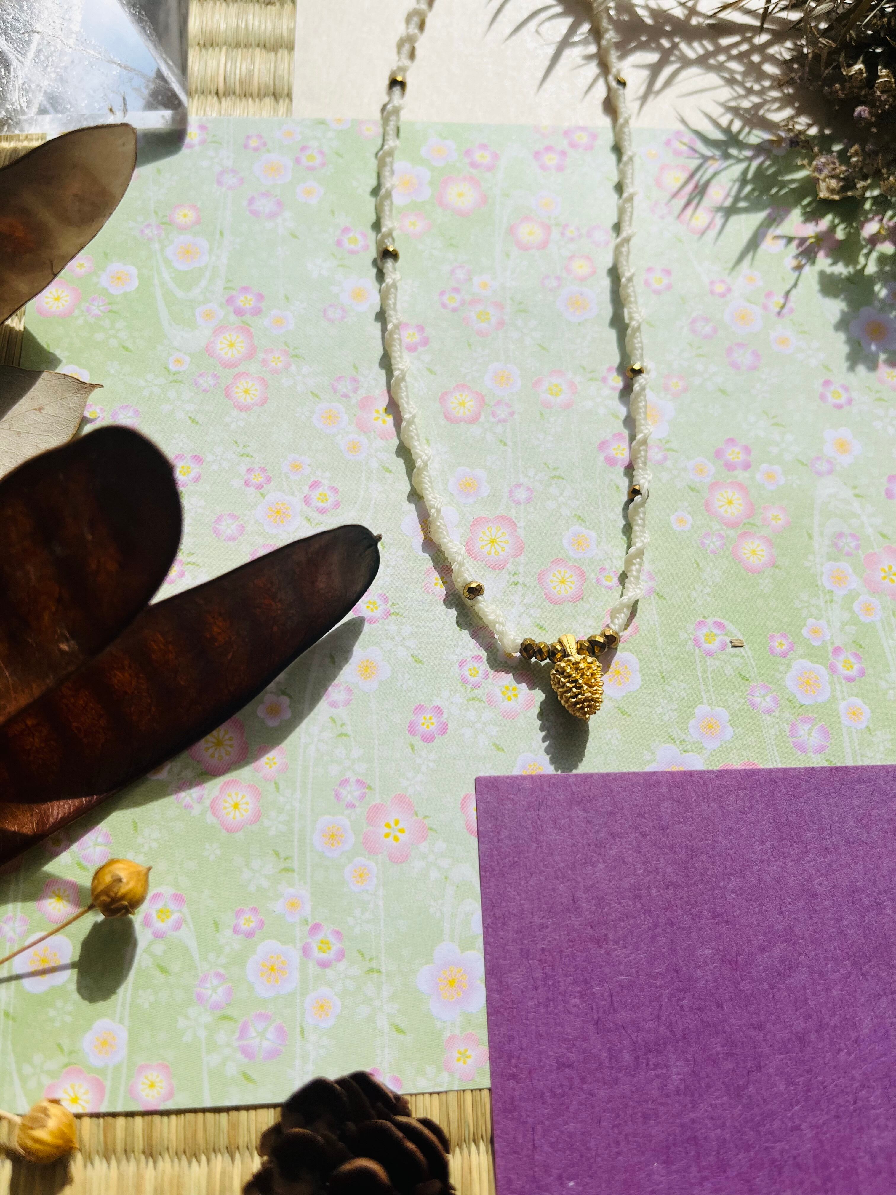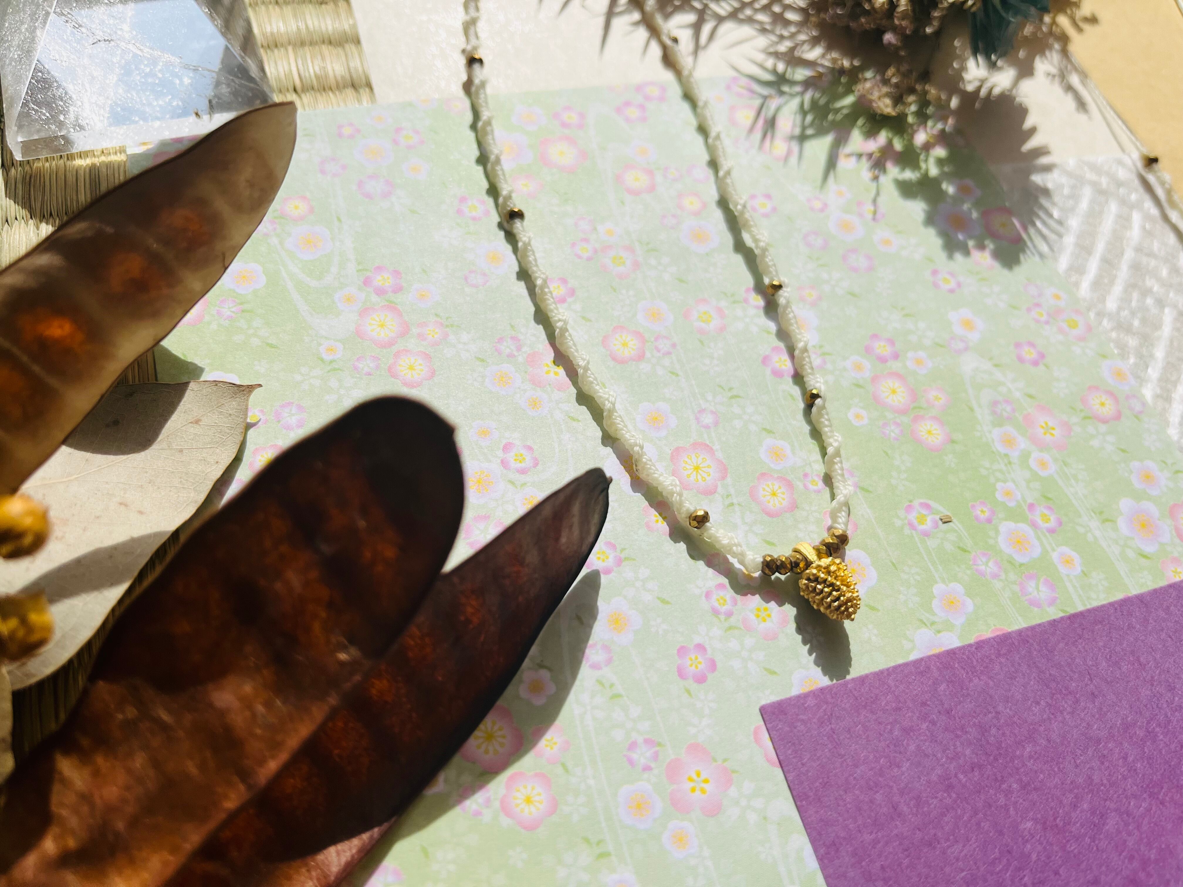 松ぼっくりは、自然の力と生命を象徴する素材であり、成長や再生のシンボルとなります。このネックレスを身に着けることで、自然のエネルギーを感じつつ、日々の生活にさらなる豊かさを加えることができるでしょう。