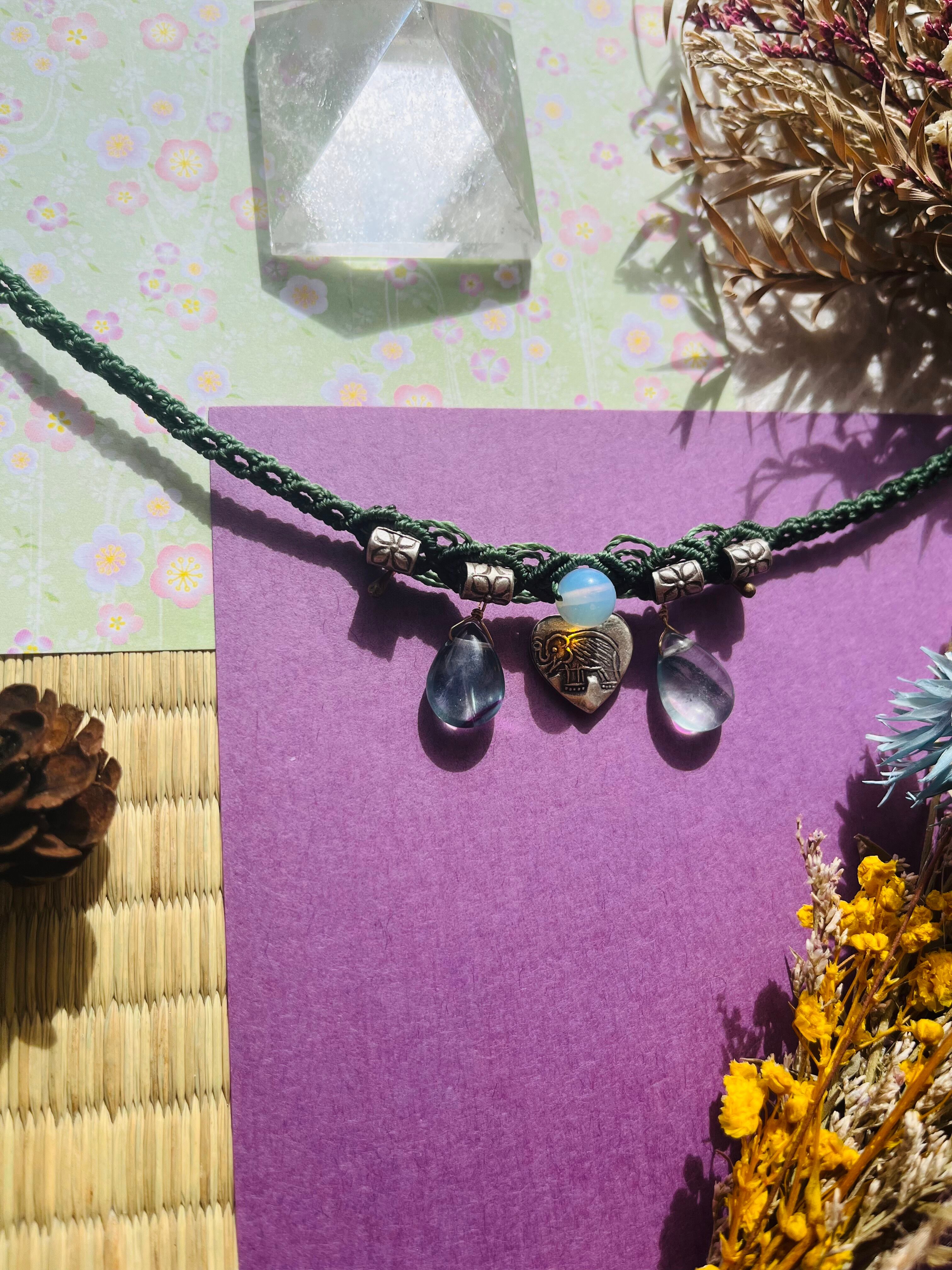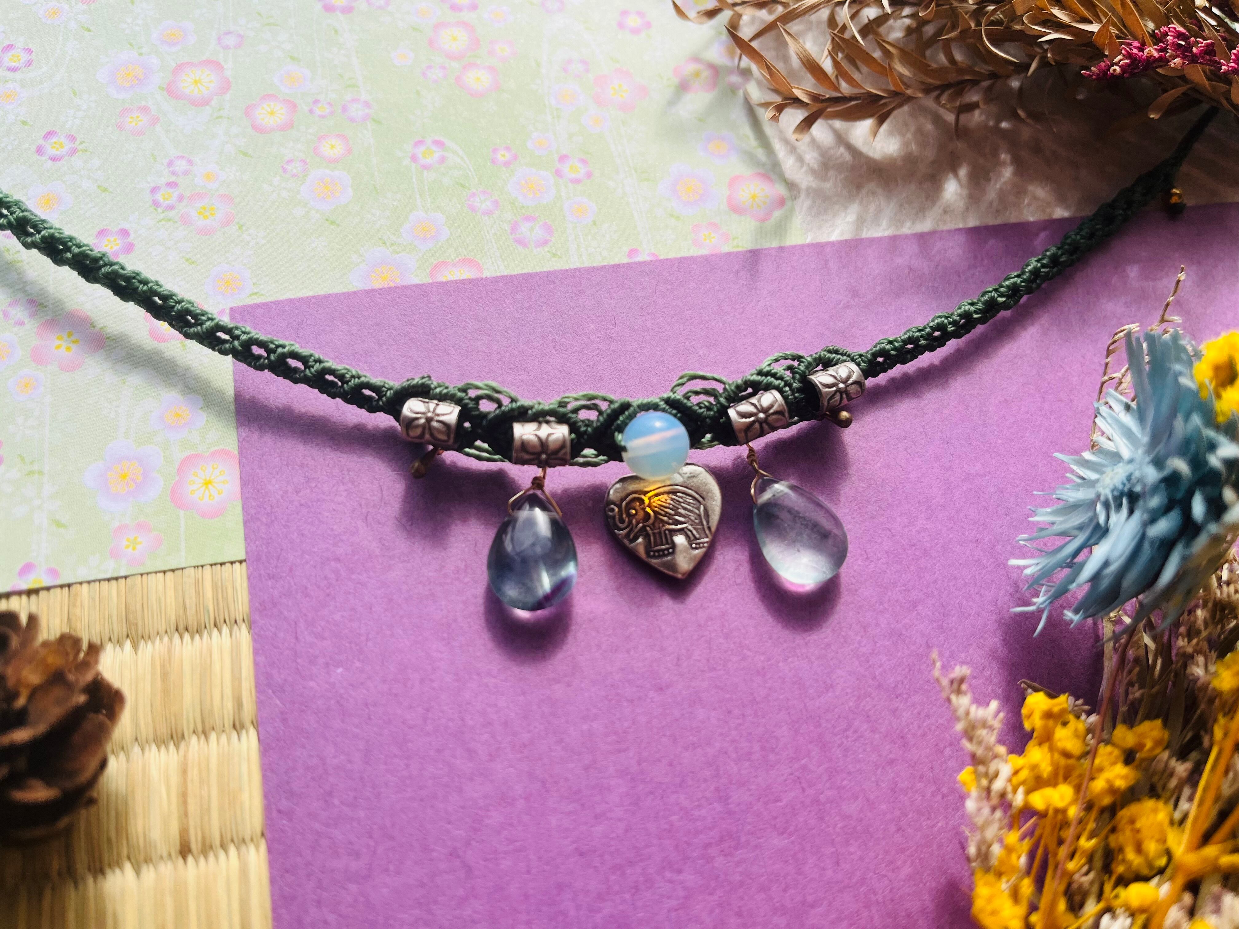カレンシルバーの象のトップ、オパール、フローライトが美しく調和し、あなたのスタイルに優雅な輝きを添えます。