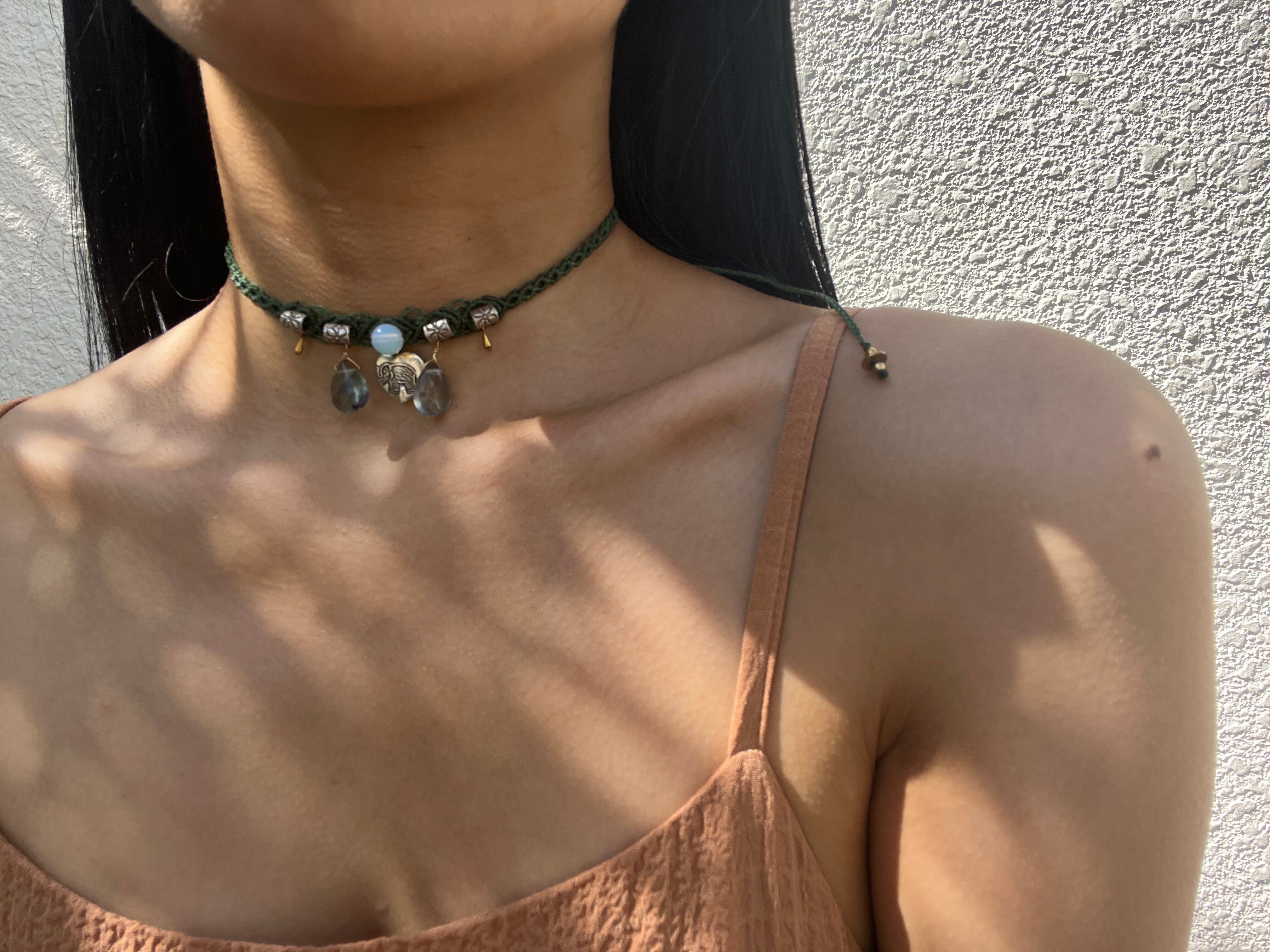 カレンシルバー、オパール、フローライトが織りなす魅力的なチョーカーです。