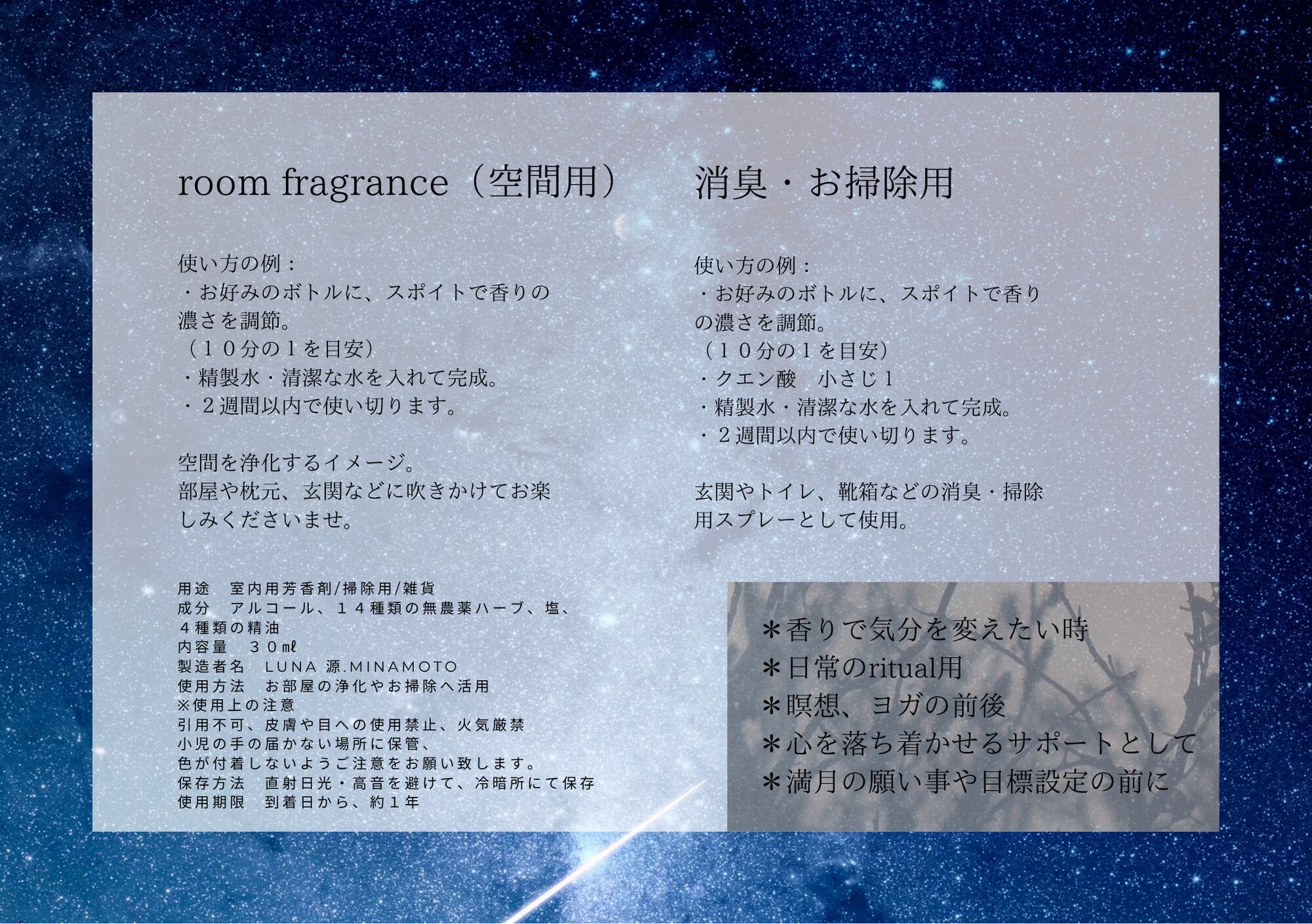 使い方の例:room fragrance(室内用)