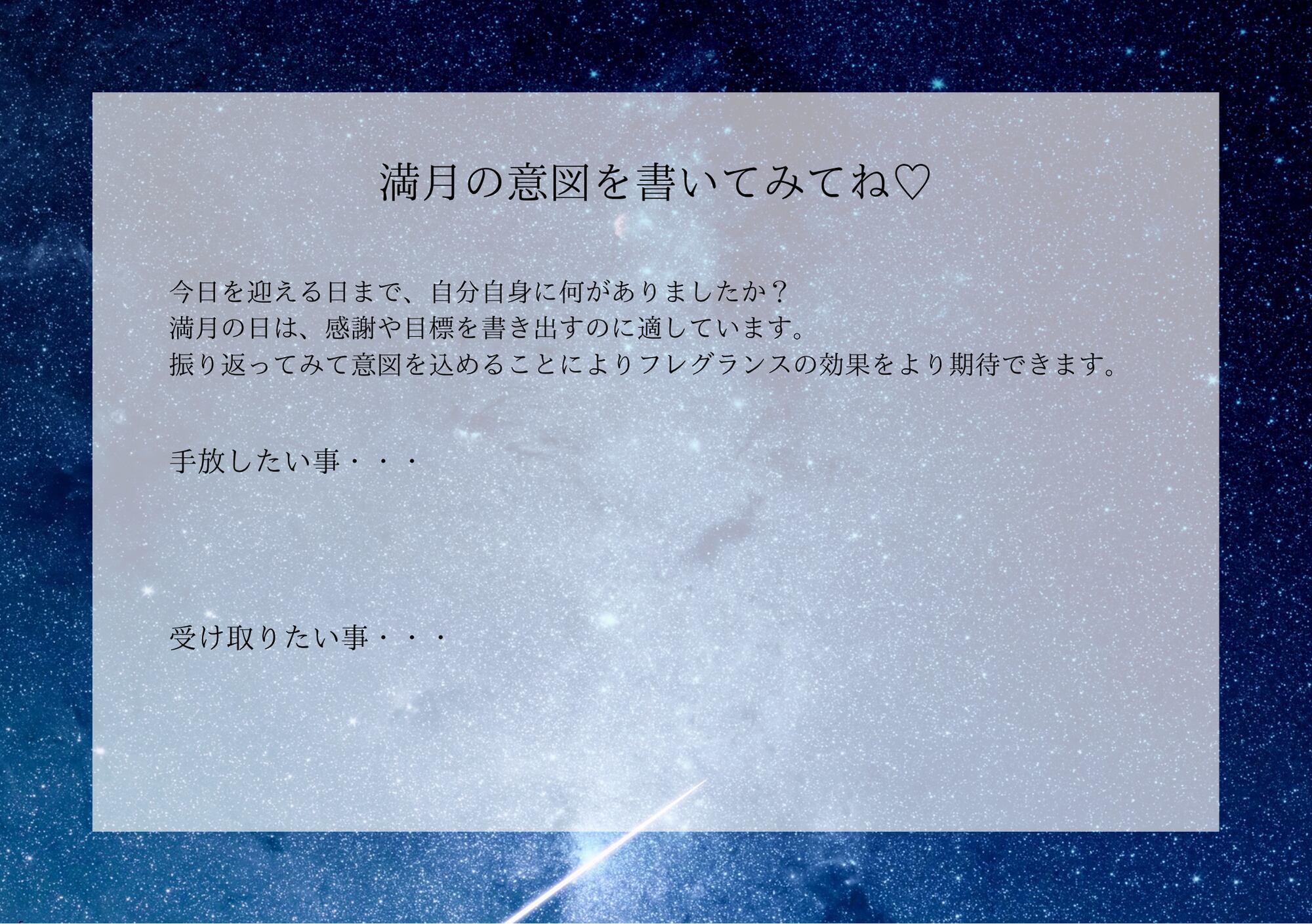 ◉別途ハガキサイズの満月の意図への用紙も送ります。