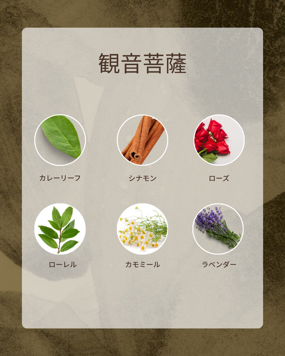 「この香りたちが、あなたの心に平和と強さをもたらし、