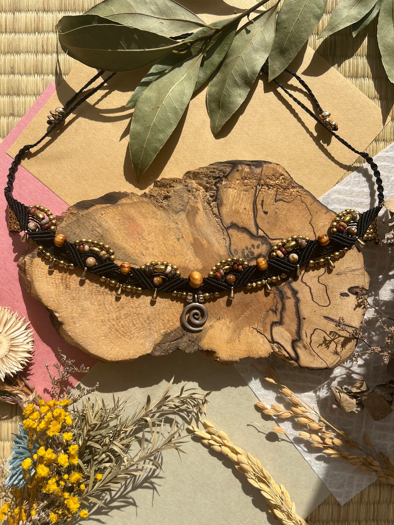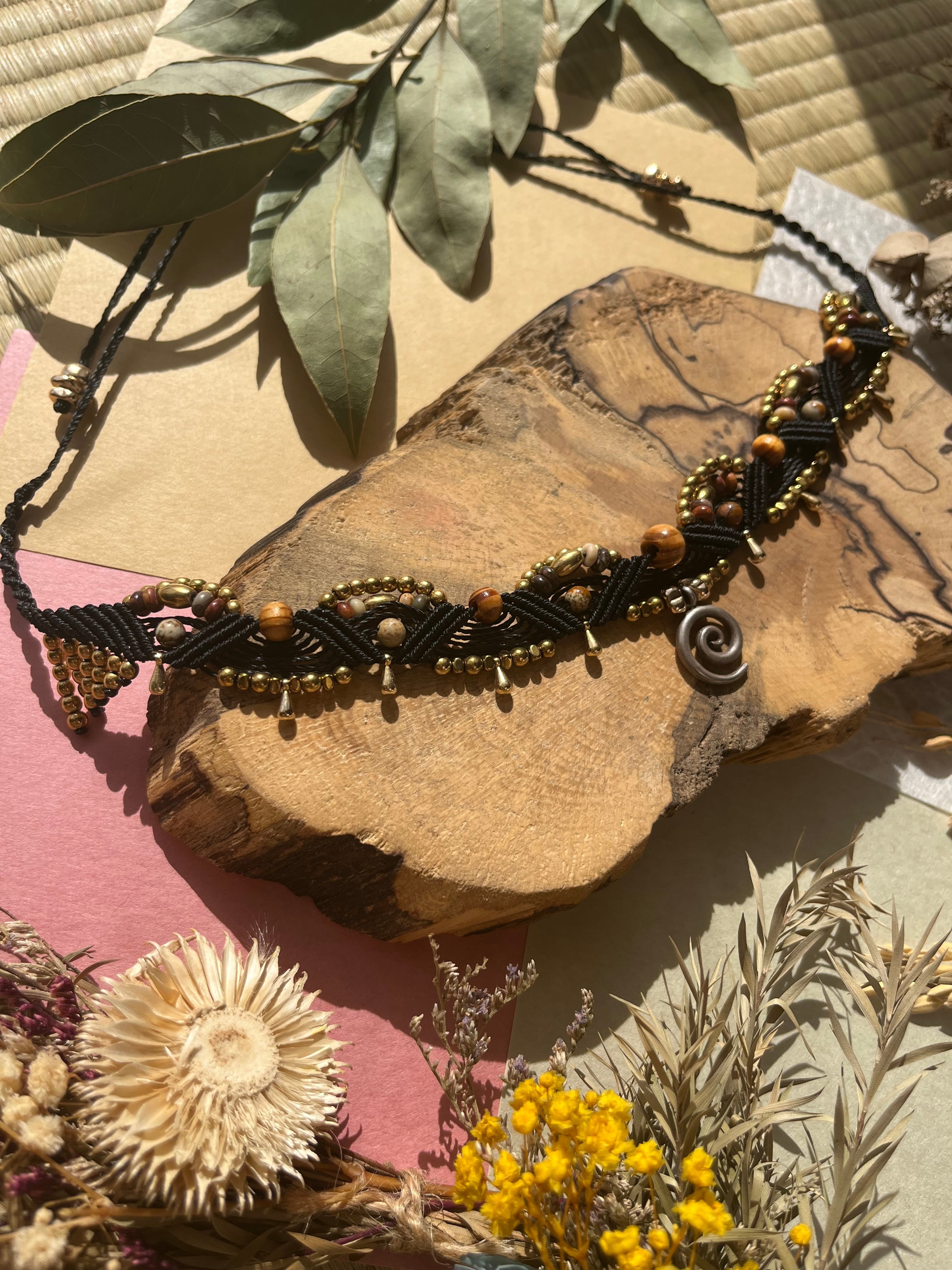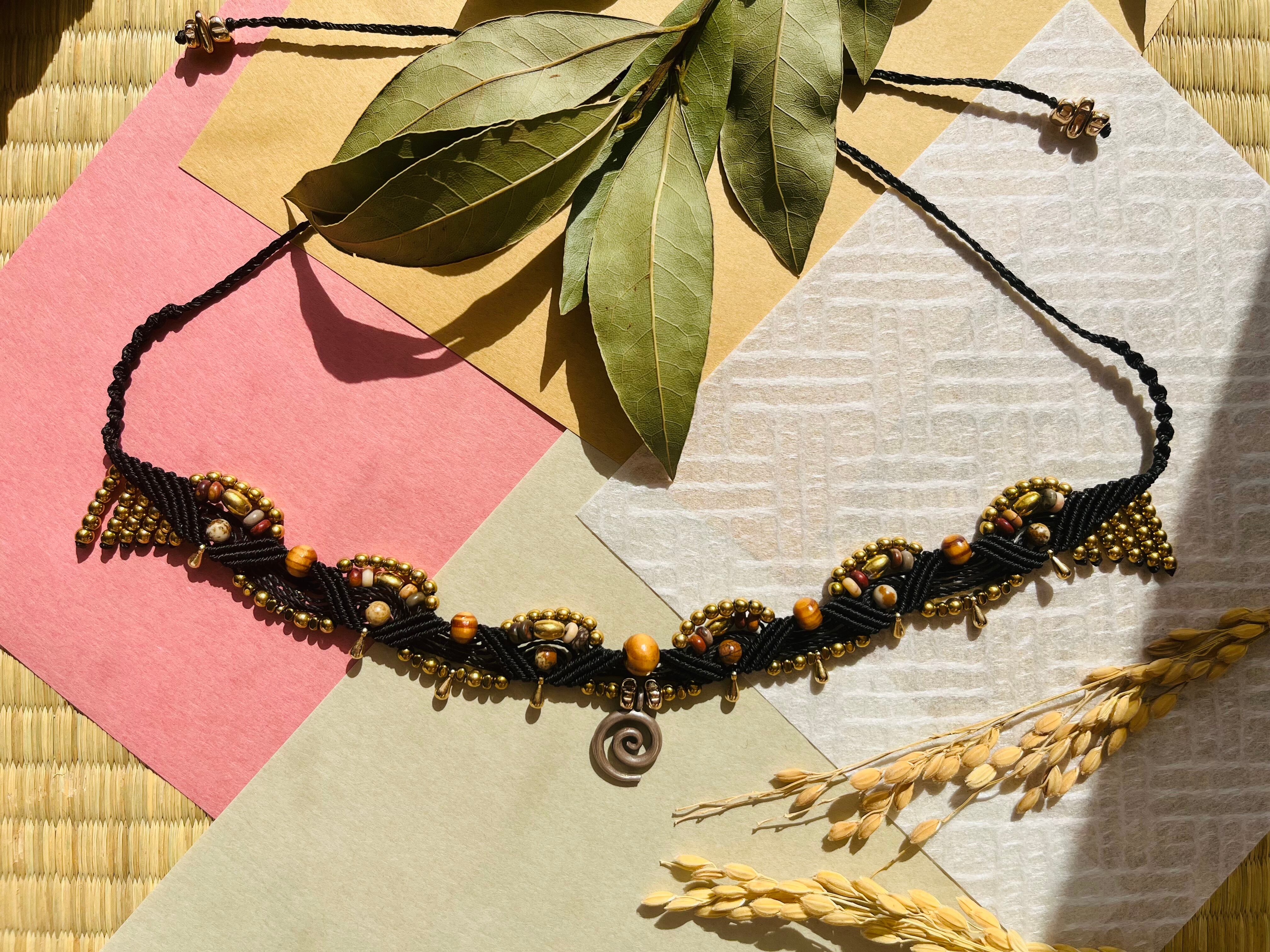 特別な日からカジュアルなシーンまで、幅広く活躍するチョーカーです。手作業で丹念に作られたこのアイテムは、天然素材の温かみを感じることができます。あなたのスタイルを際立たせるだけでなく、心にも癒しを与えるアクセサリーです。