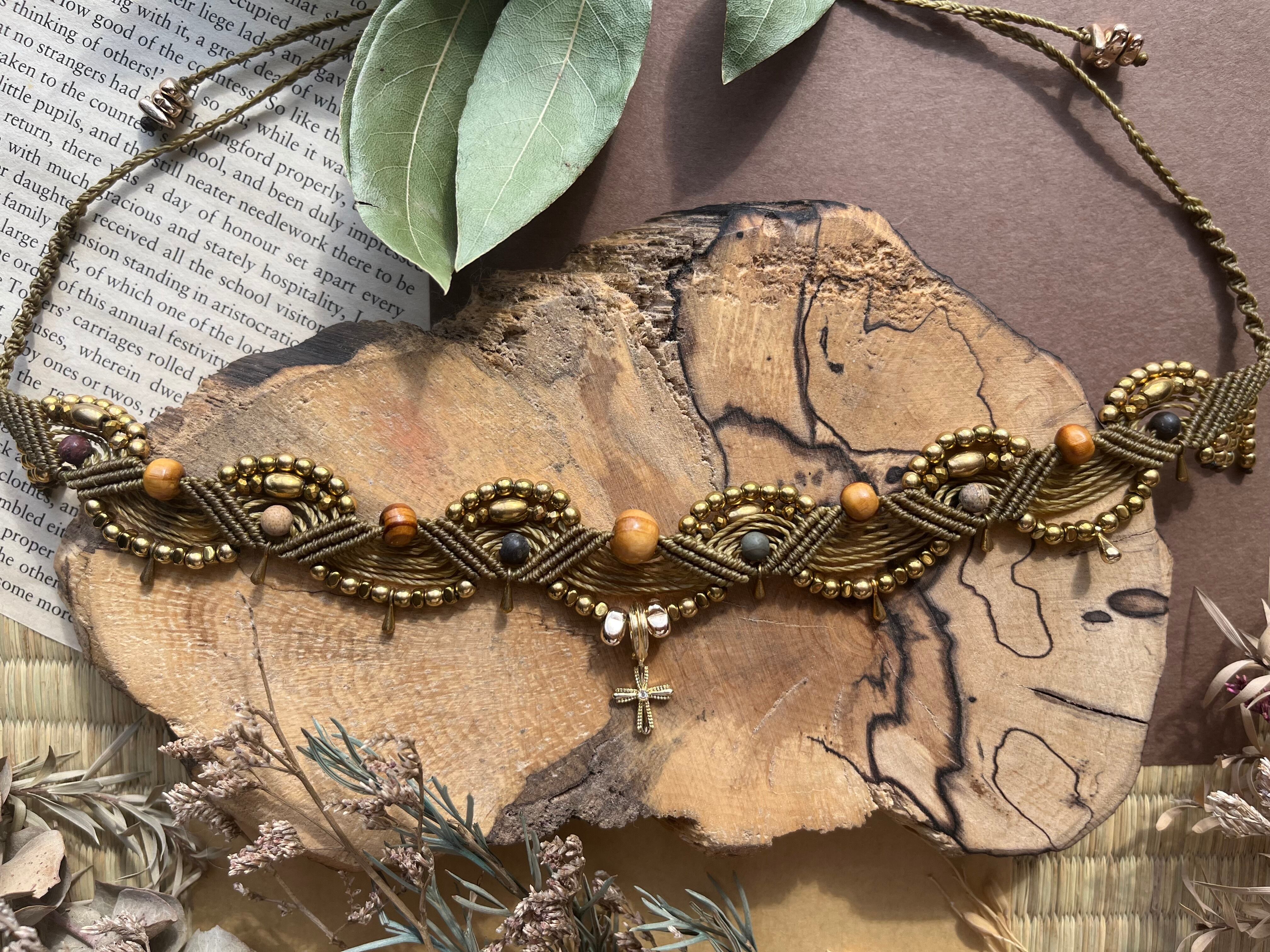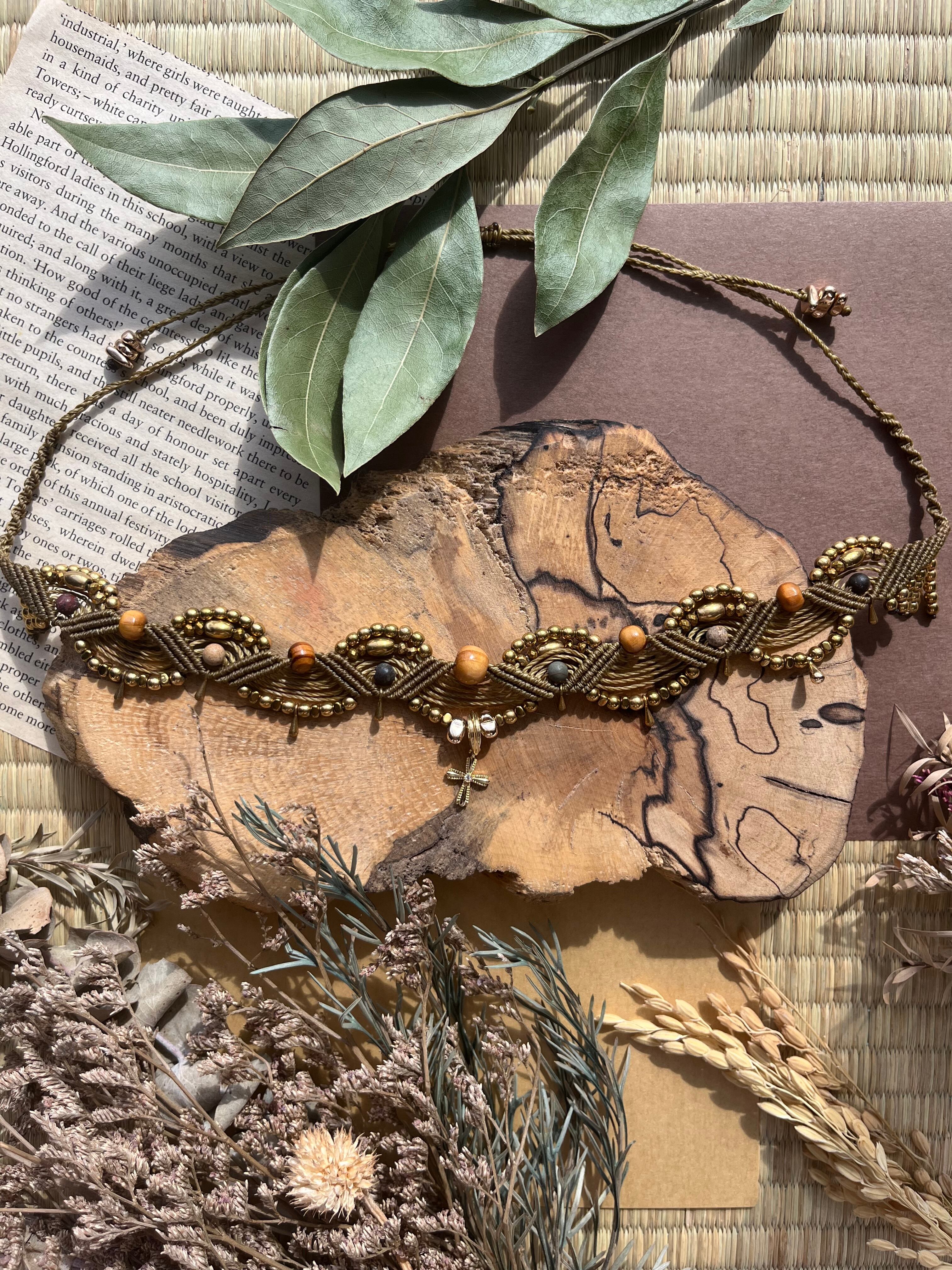 特別な日やカジュアルなシーンまで、幅広く活躍するチョーカーです。手作業で丁寧に作り上げられたこのアイテムは、天然素材の温かみを感じさせ、あなたの魅力を一層引き立てることでしょう。心にも癒しを与える、素敵なアクセサリーです。