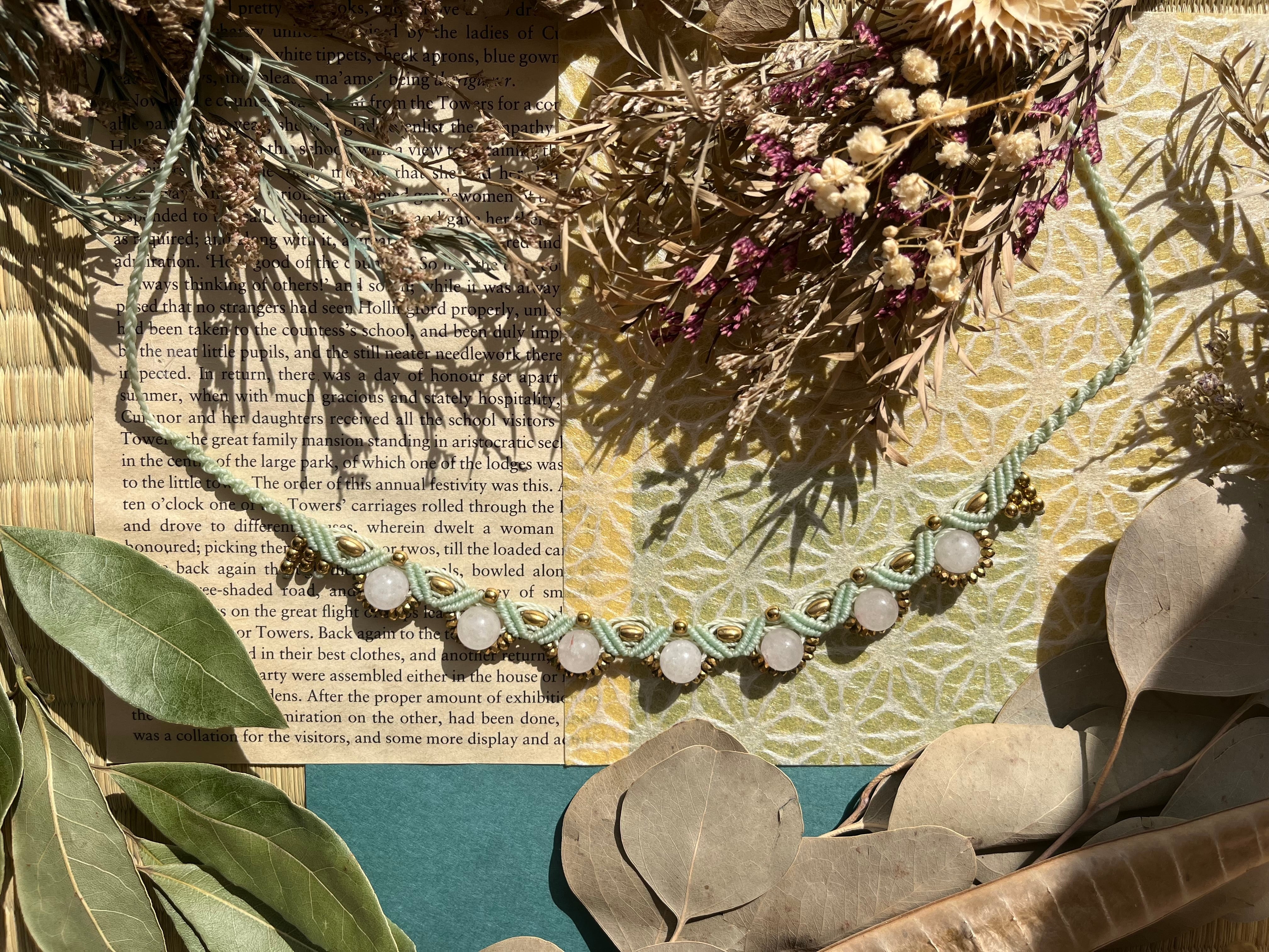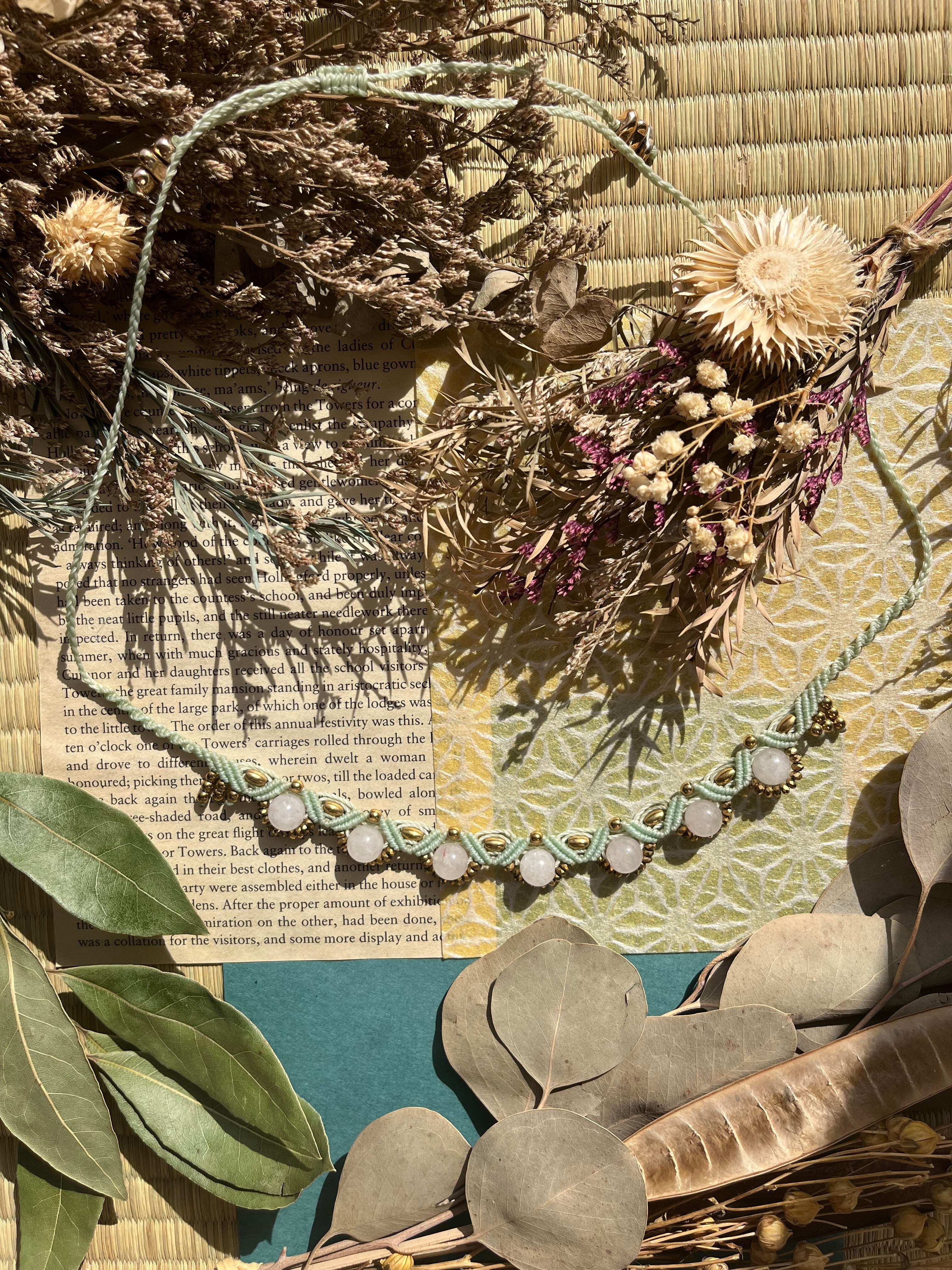 華やかな瞬間から普段使いまで、あらゆる場面で役立つチョーカーです。手作業で丁寧に仕立てられたこのアイテムは、天然素材の心地よさを感じさせ、あなたの魅力を引き出す素敵なアクセサリーです。