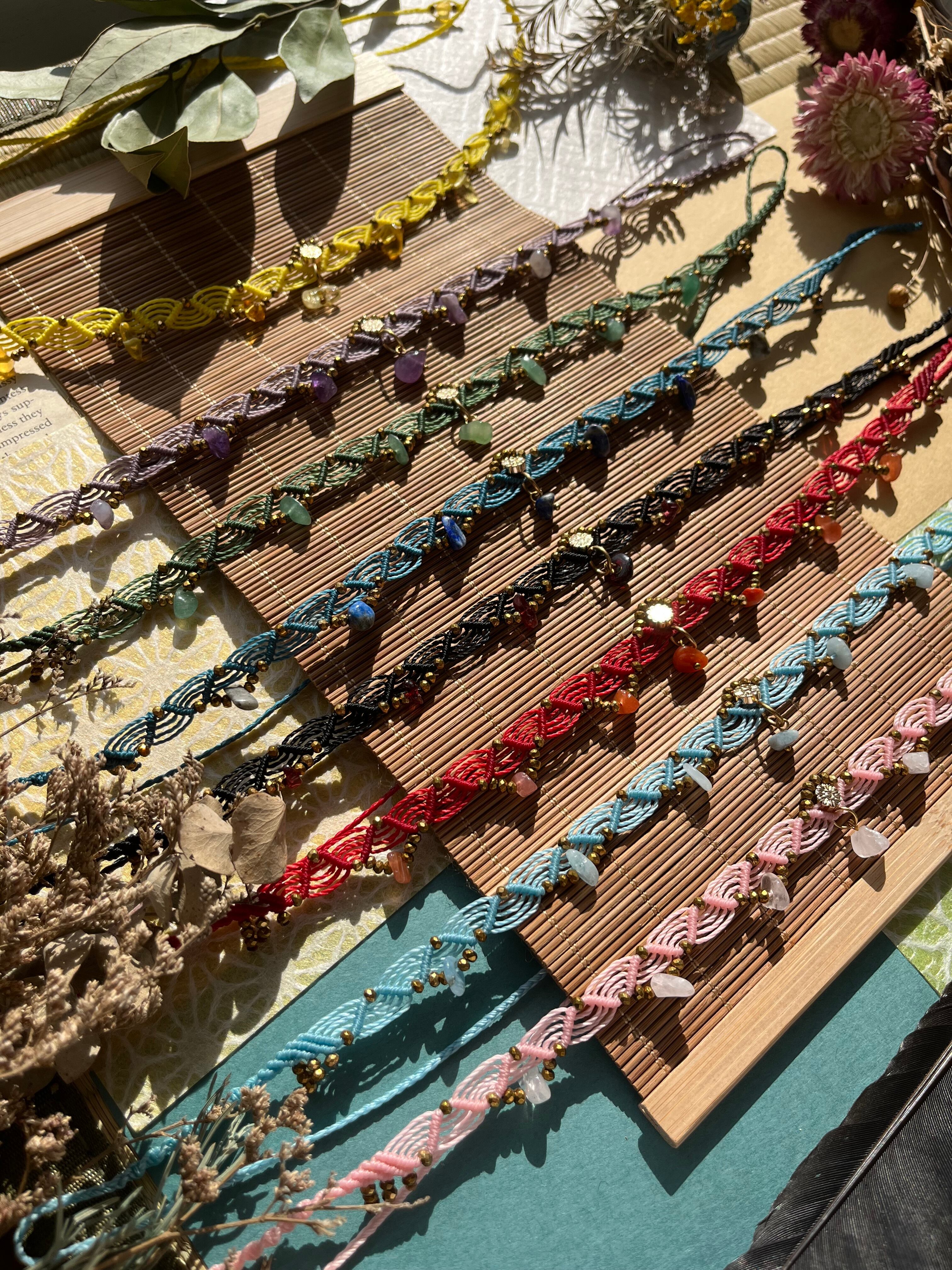 特別な日からカジュアルな装いまで、さまざまなシーンで重宝するチョーカーです。手作業で丁寧に仕立てられたこのアイテムは、多彩な天然素材の魅力を存分に感じさせ、あなたの美しさを一層引き立ててくれることでしょう。