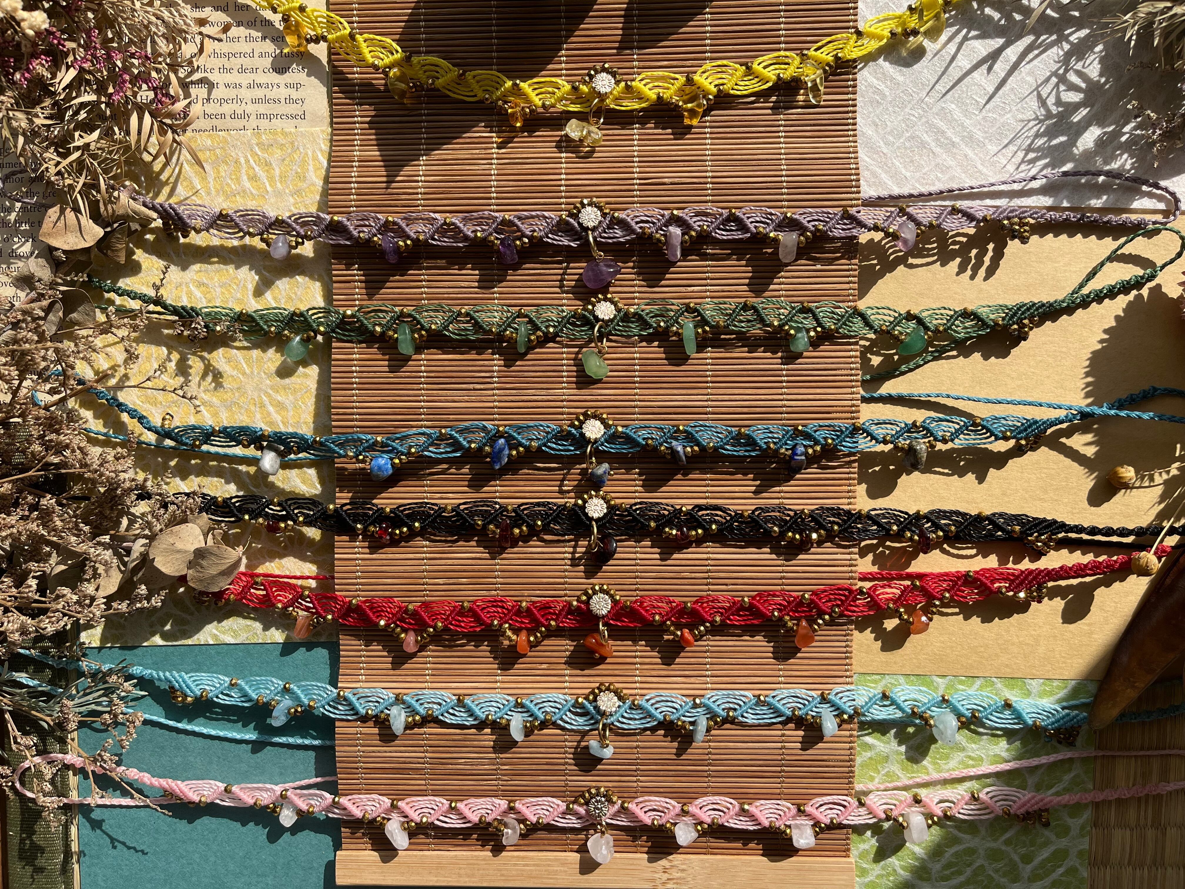 ・素材:ヘマタイト、シトリン、アメジスト、グリーンアベンチュリン、ラピスラズリ、ガーネット、カーネリアン、アクアマリン、ローズクウォーツ