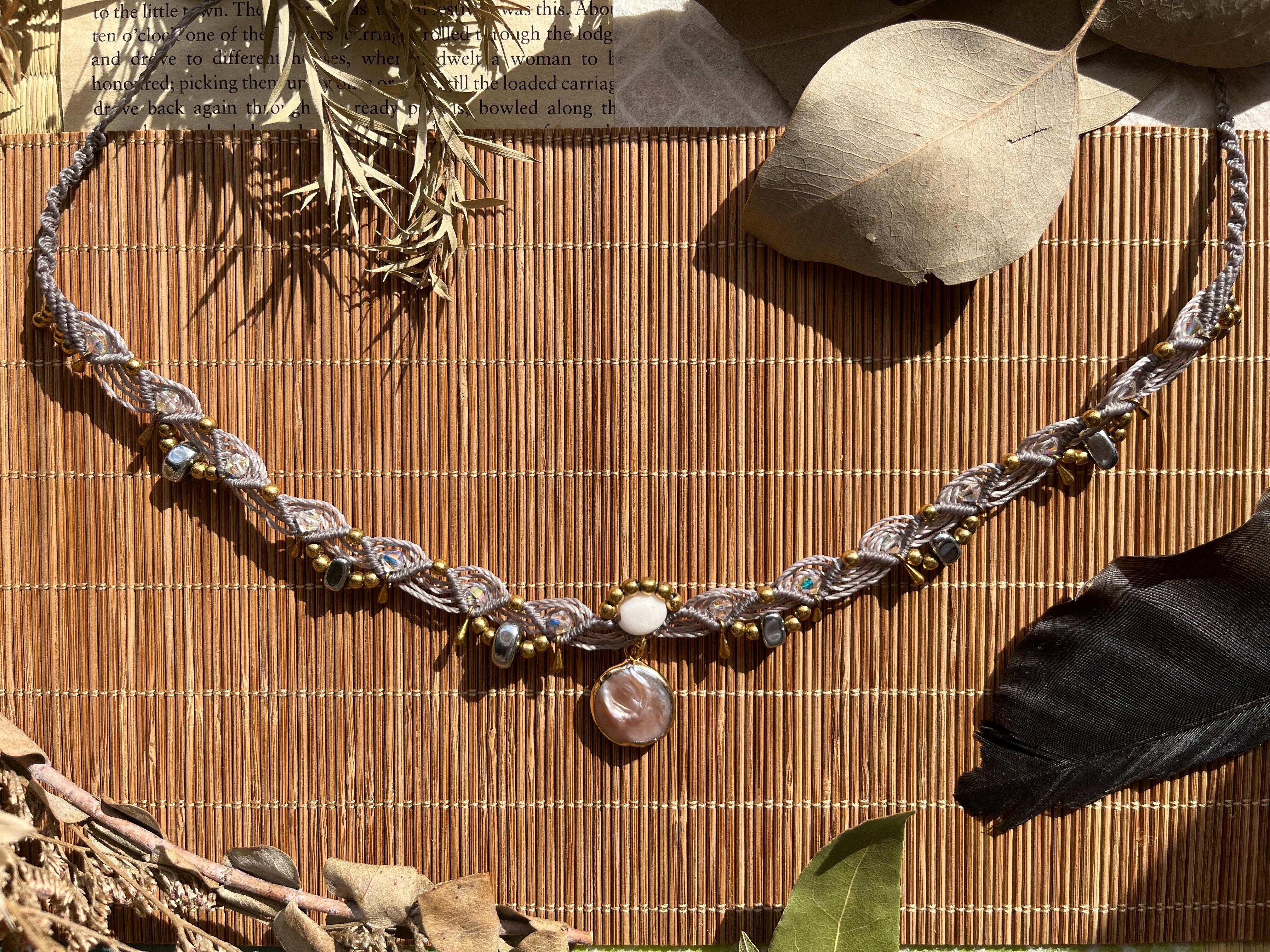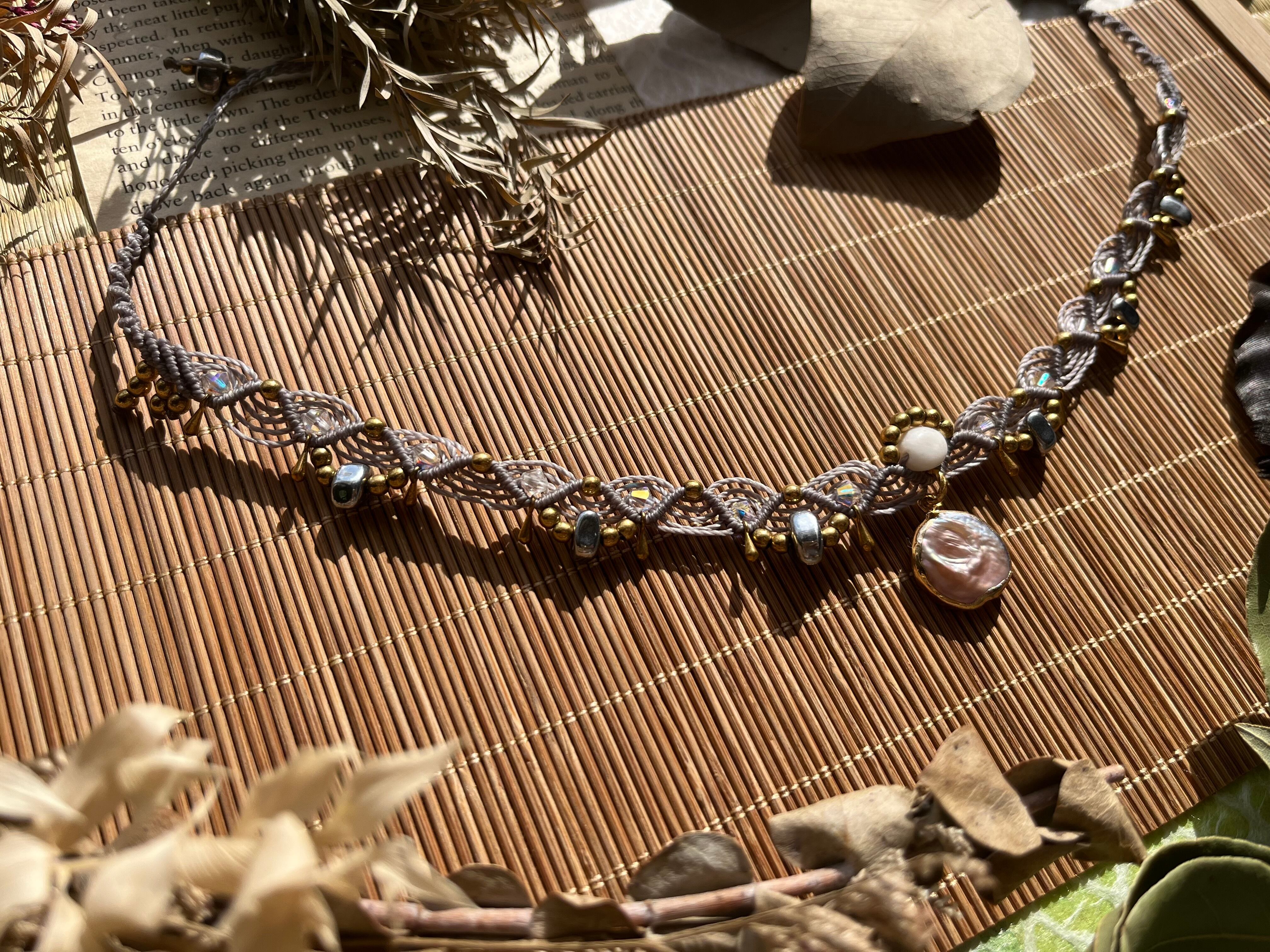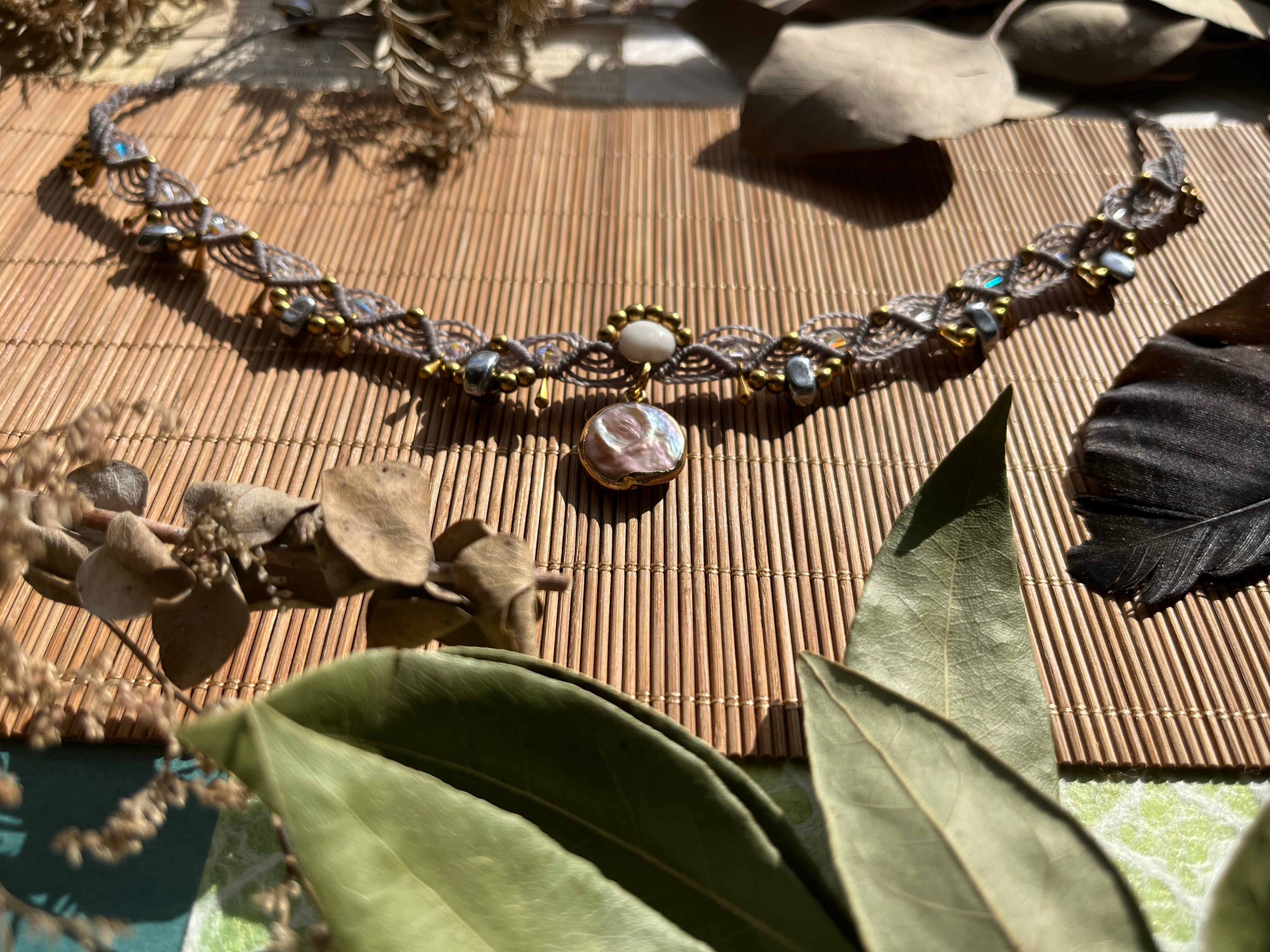 特別な日からカジュアルな装いまで、多様なシーンで重宝するチョーカーです。手作業で丁寧に仕立てられたこのアイテムは、天然素材の優雅さを存分に感じさせ、あなたの美しさを一層引き立ててくれることでしょう。