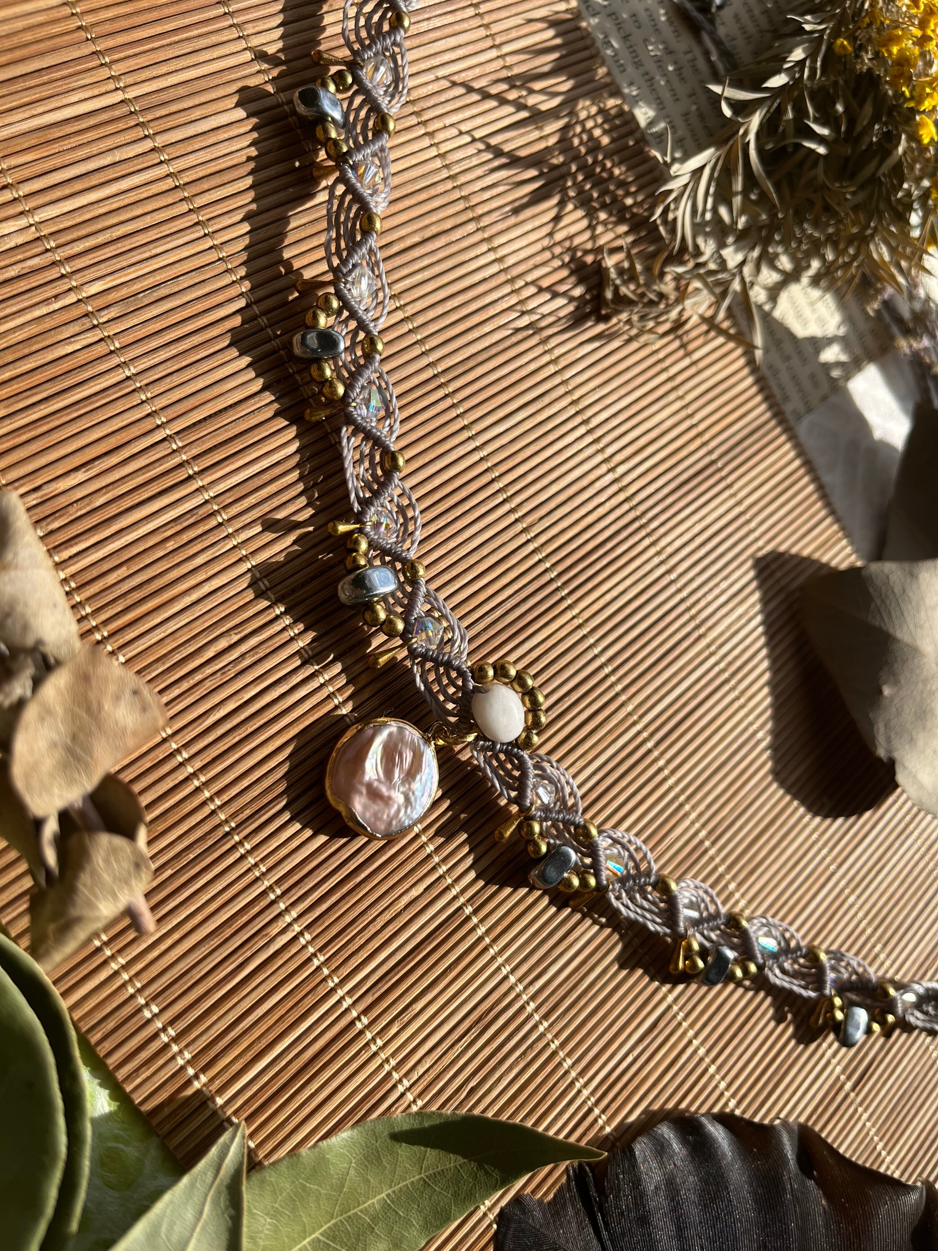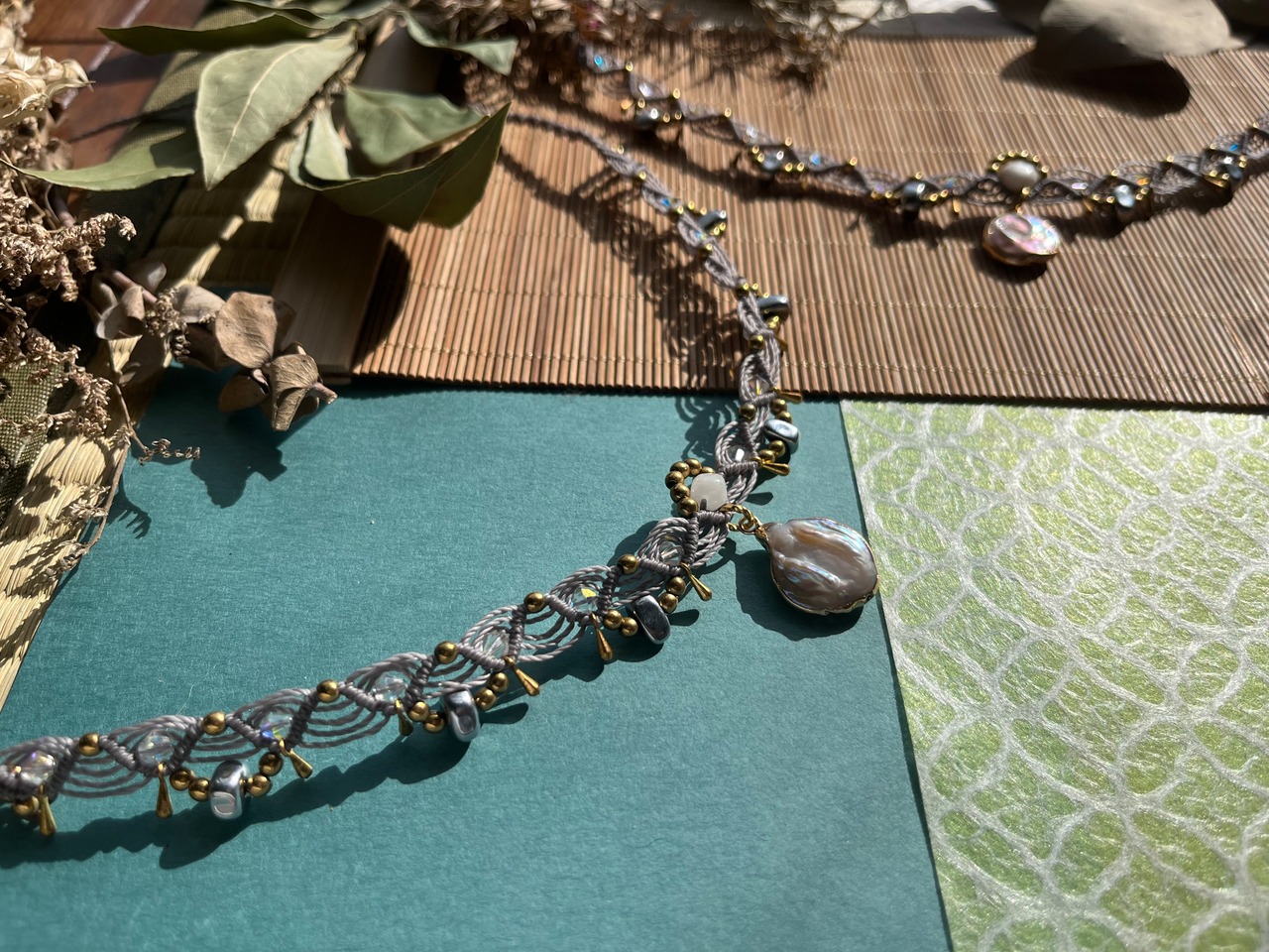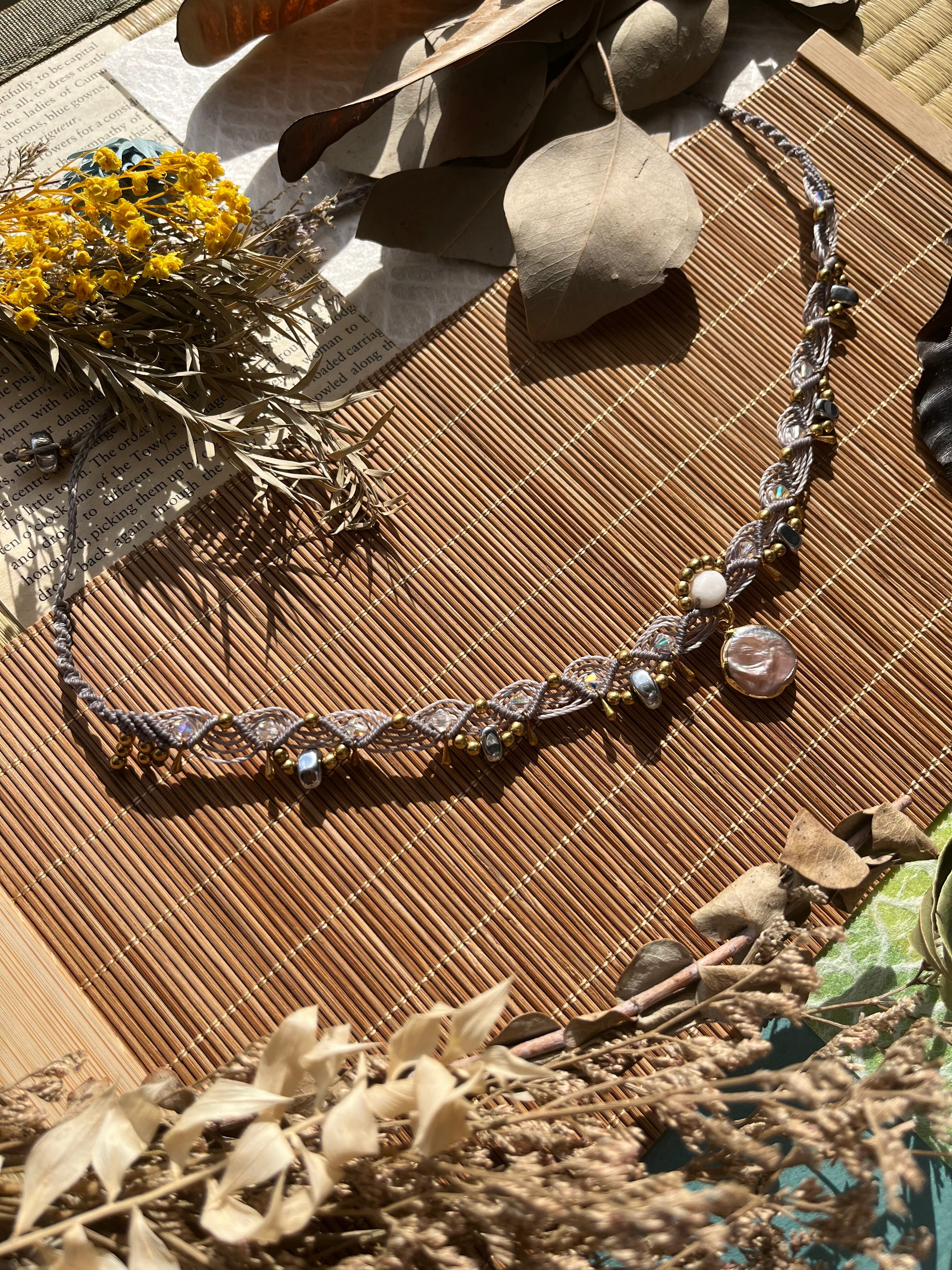 特別な日からカジュアルな装いまで、多様なシーンで重宝するチョーカーです。手作業で丁寧に仕立てられたこのアイテムは、天然素材の優雅さを存分に感じさせ、あなたの美しさを一層引き立ててくれることでしょう。