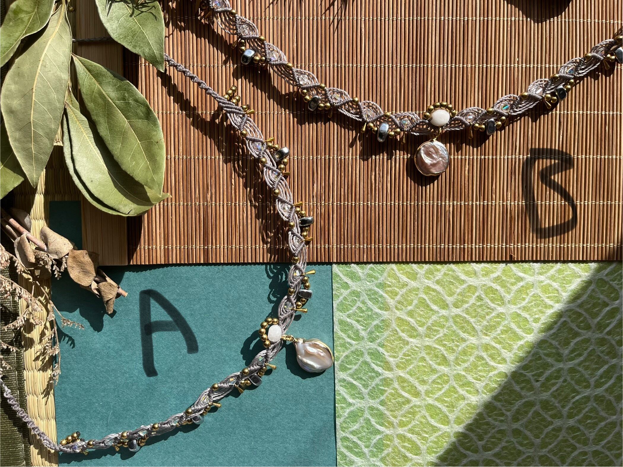 "このチョーカーは、日本の美しい青海波模様と天然真珠を贅沢に取り入れた、エレガントなアイテムです。ヘマタイトとの組み合わせが、あなたのスタイルに独自の華やかさを加え、シンプルながらも目を引く存在感を醸し出します。日常使いから特別なシーンまで、幅広く活躍することでしょう。"
