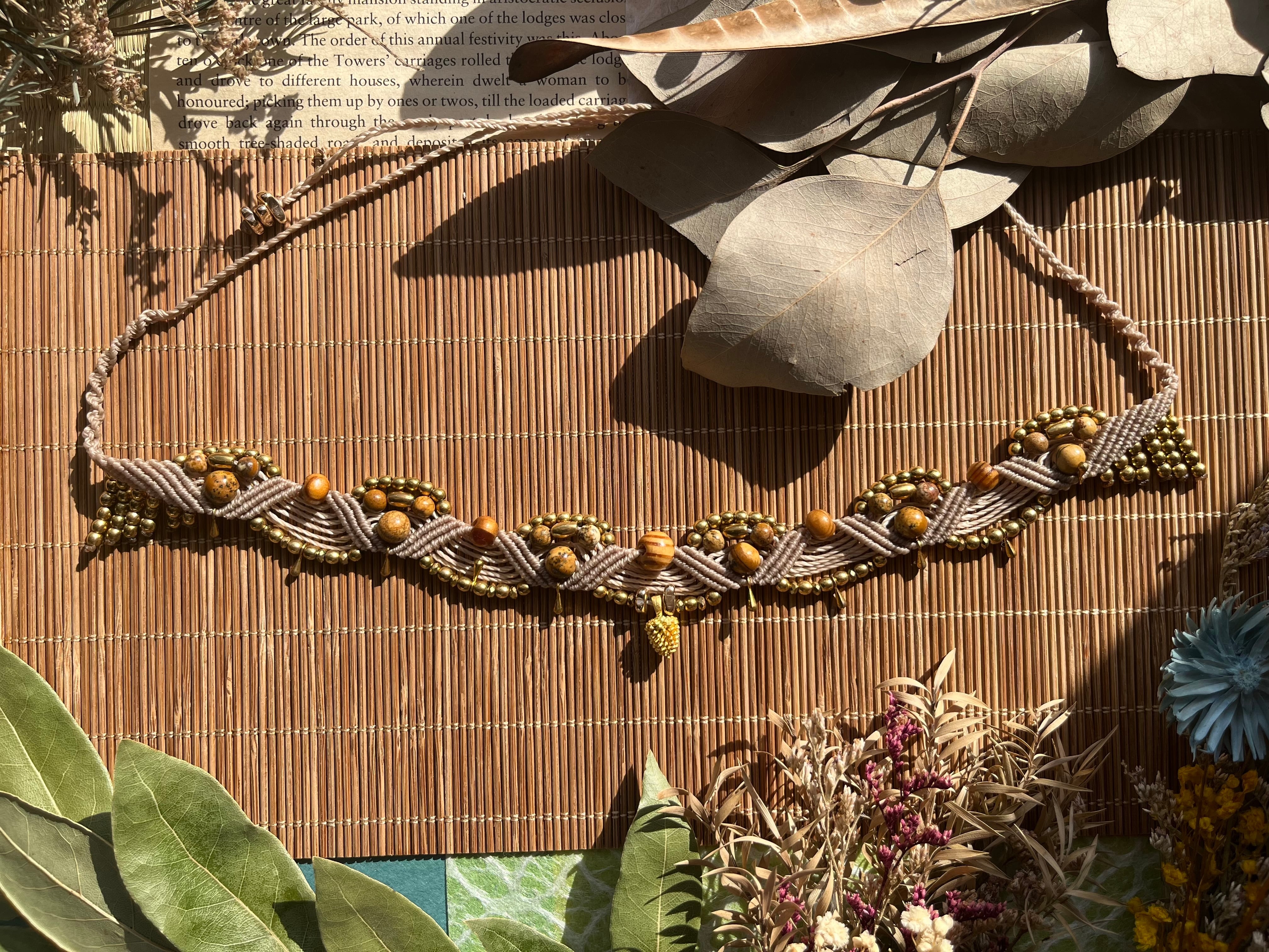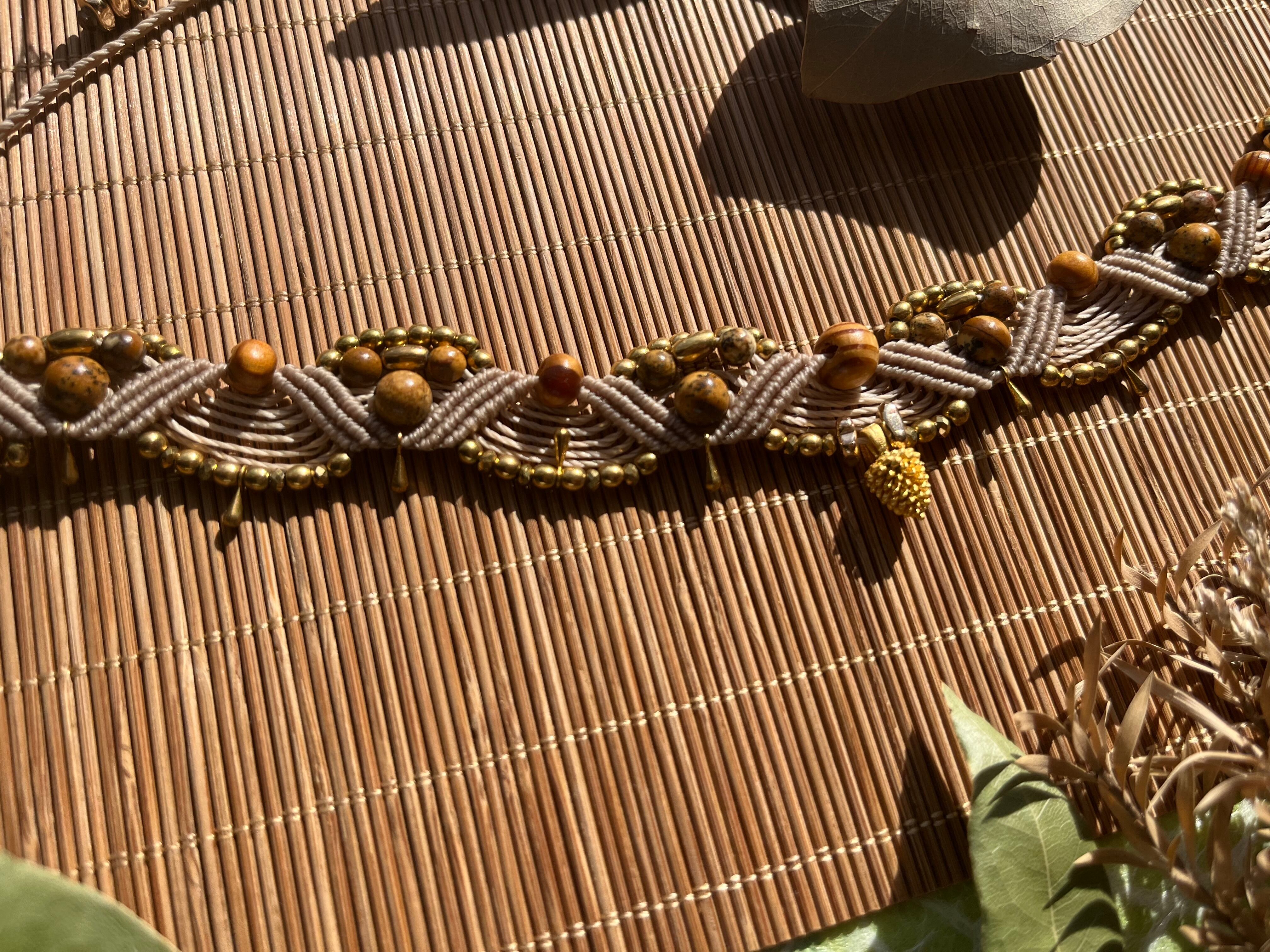 特別な日からカジュアルな装いまで、幅広くご利用できるチョーカーです。手作業で丁寧に仕立てられたこのアイテムは、天然素材の魅力を存分に感じさせ、あなたをさらに引き立ててくれることでしょう。