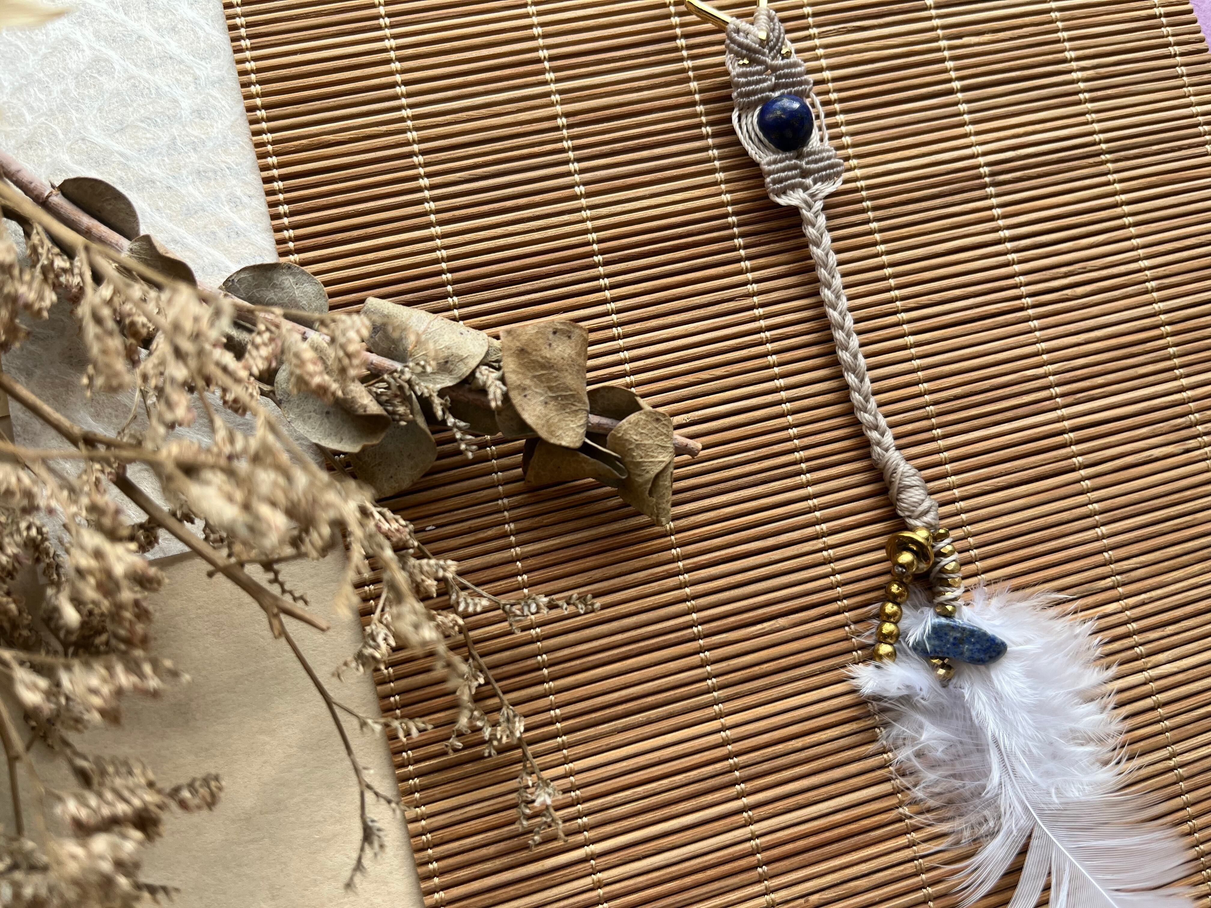 "この片耳ピアスは、羽付きのデザインにラピスラズリとヘマタイトを組み合わせた、美しい魅力を持つアイテムです。深い青色のラピスラズリが神秘的な雰囲気を演出し、ヘマタイトがクールな印象を添えています。特別な日から日常使いまで、様々なシーンで活躍すること間違いなしです!"