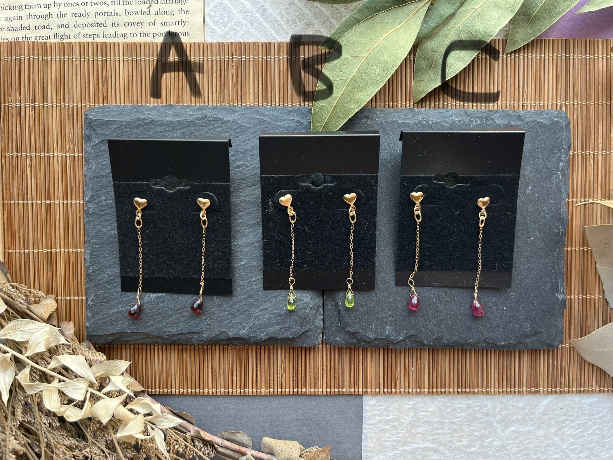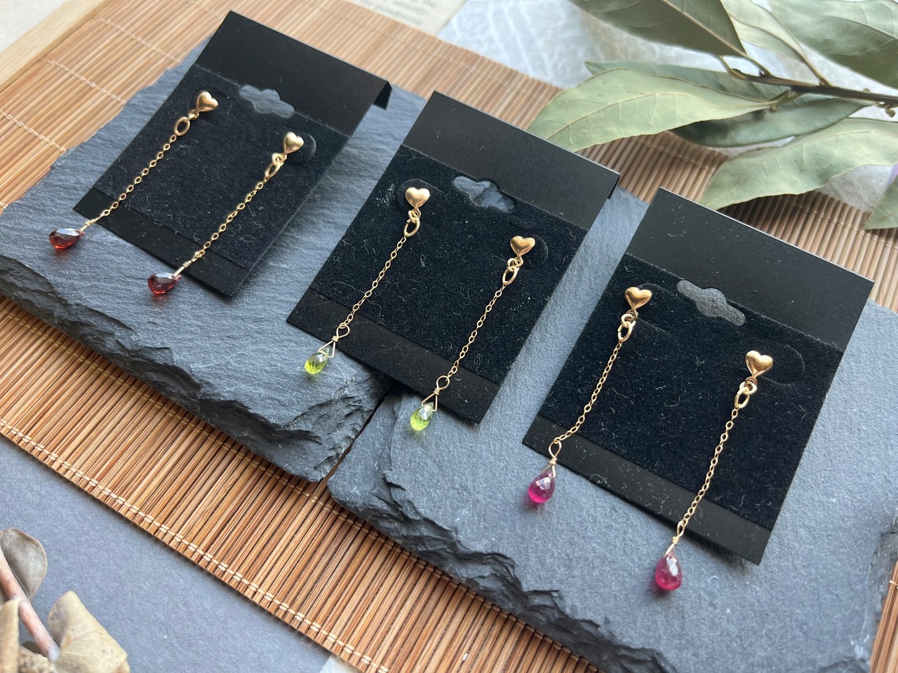 ・カラー:ガーネット(深い赤色)、ペリドット(鮮やかな緑)、ルビー(鮮烈な紅)