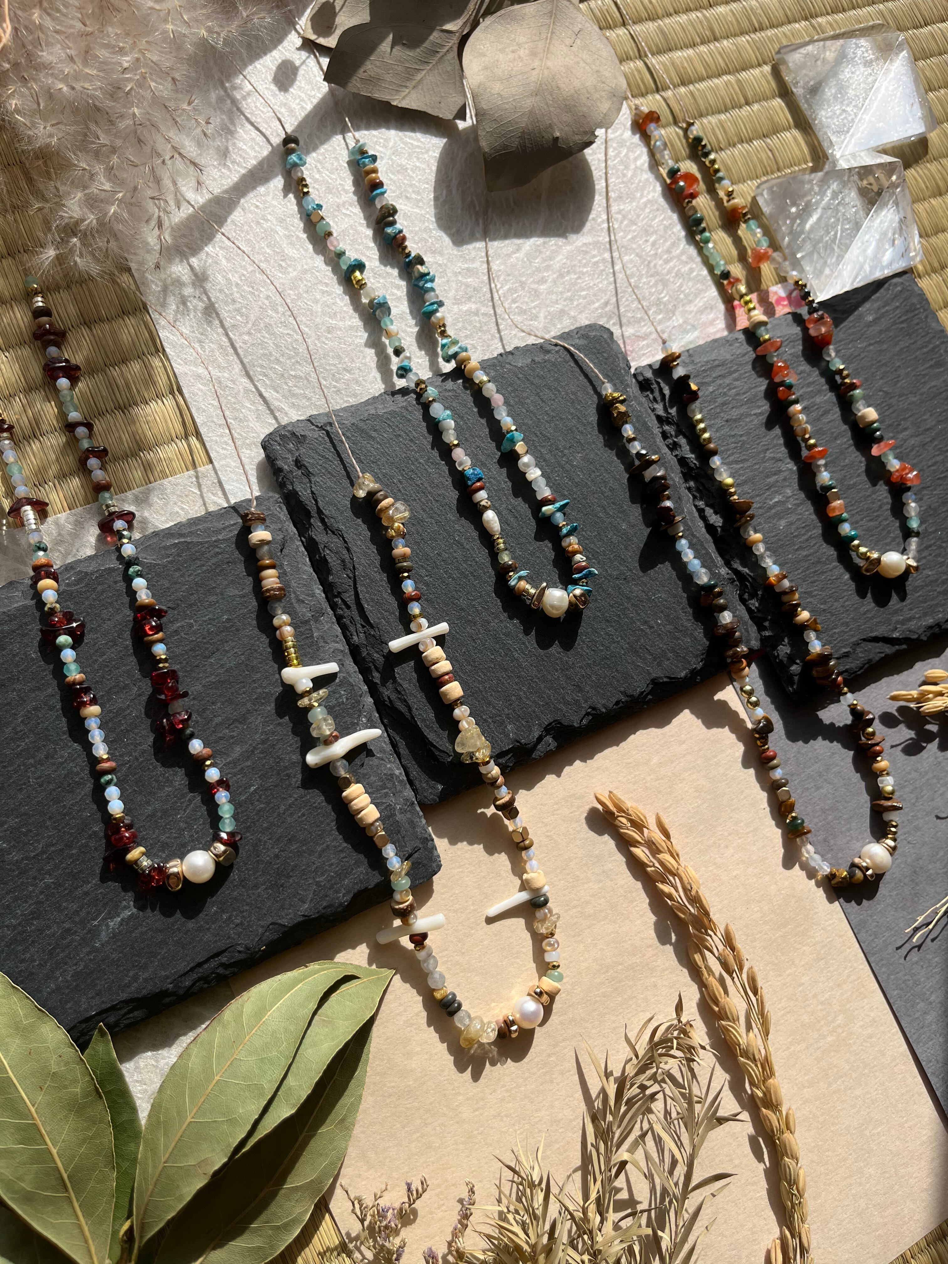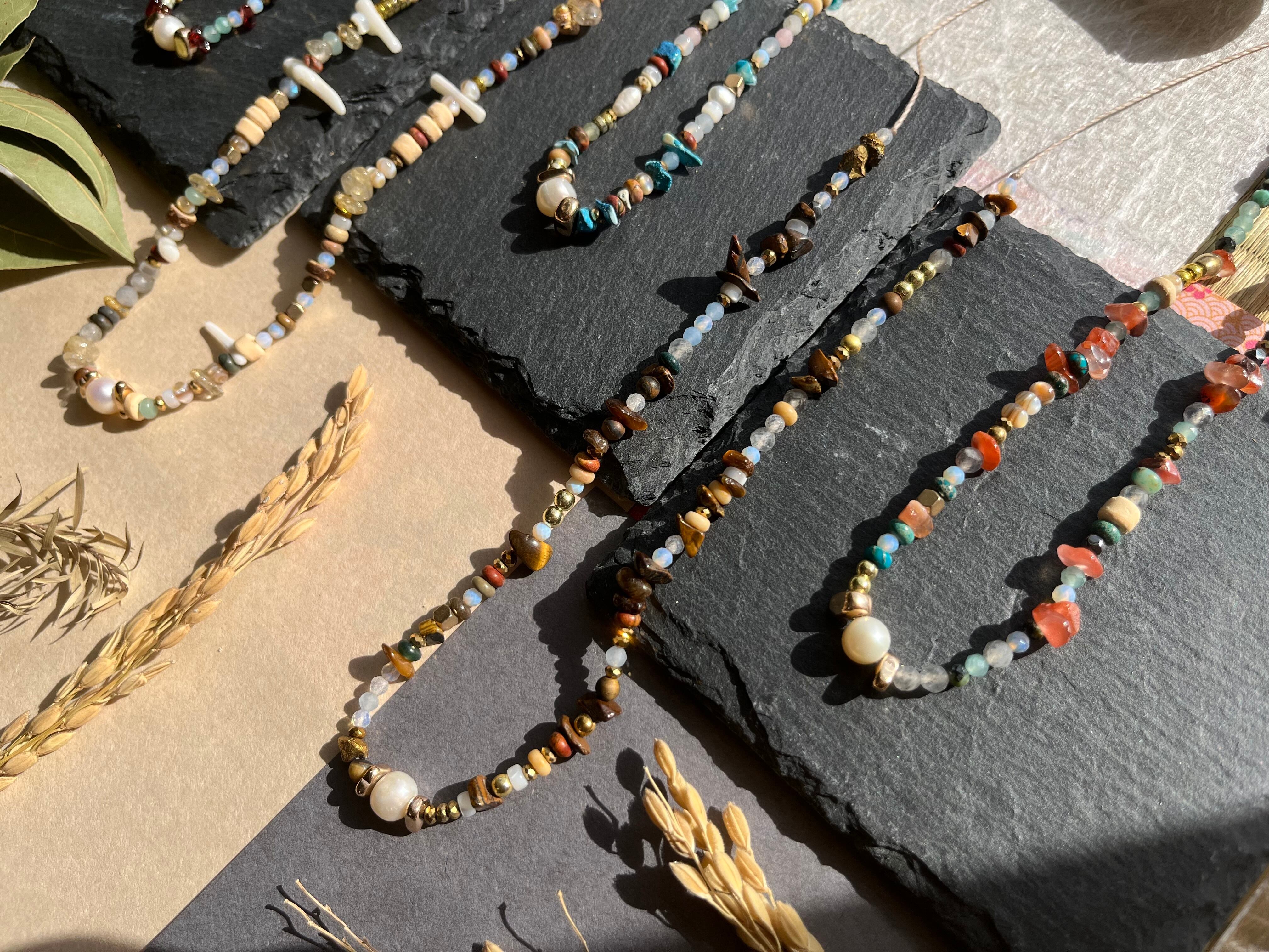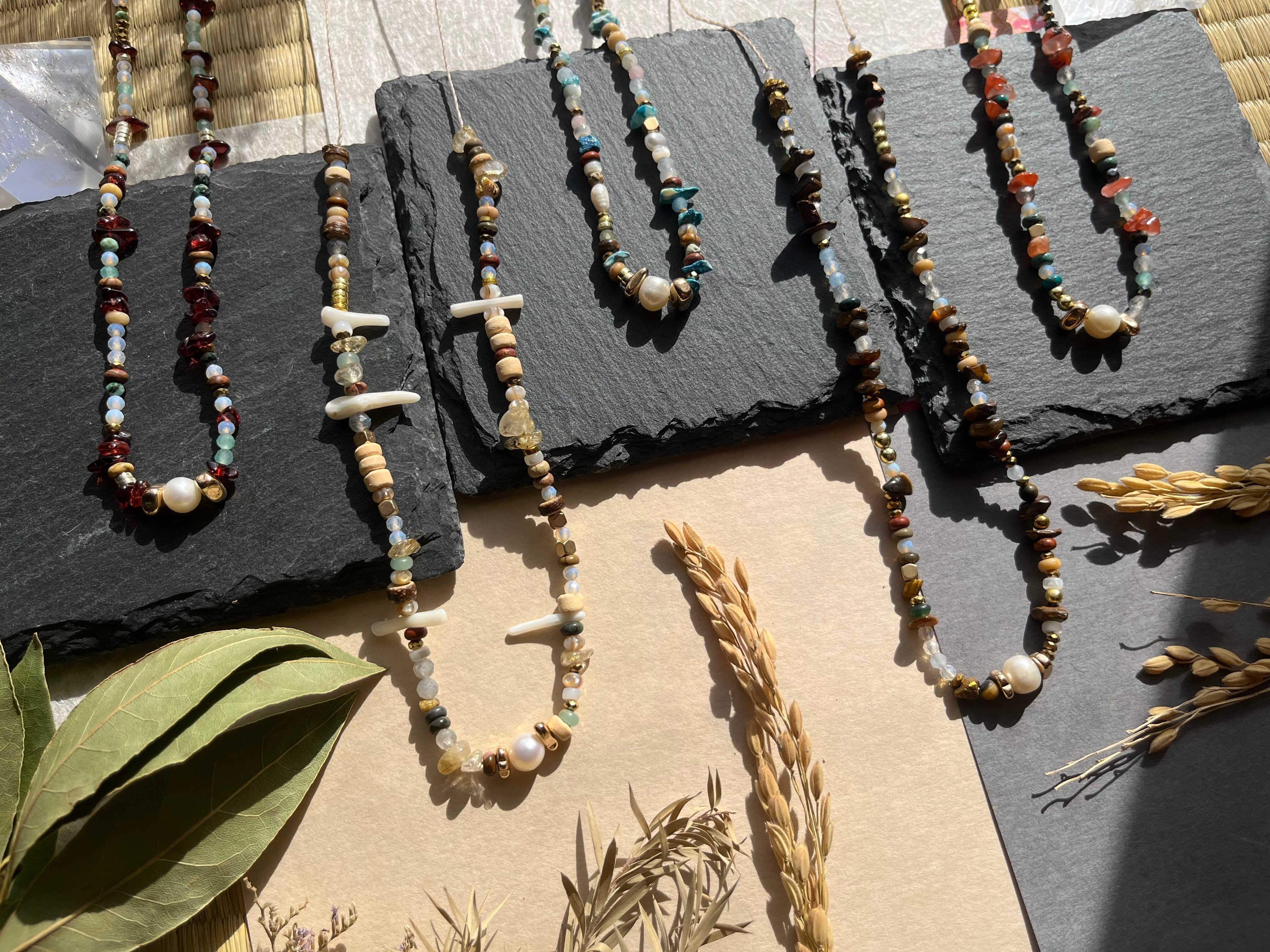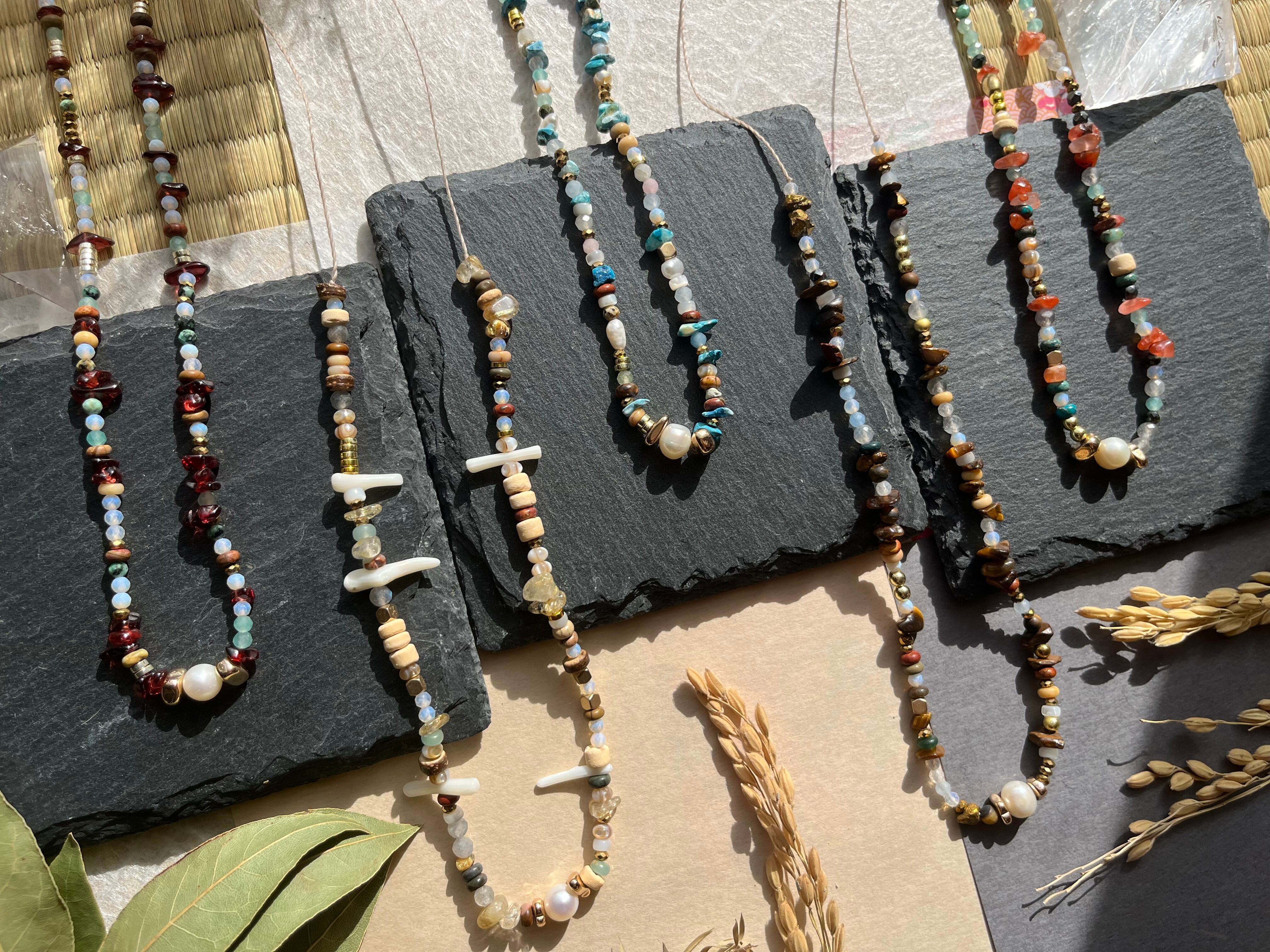 多様なシーンでご利用できるこのネックレスは、丁寧に手作業で仕上げられた逸品です。淡水パールの上品な輝きと、豊富な天然石の色合いが際立ち、あなたの個性を一層引き立てることでしょう。