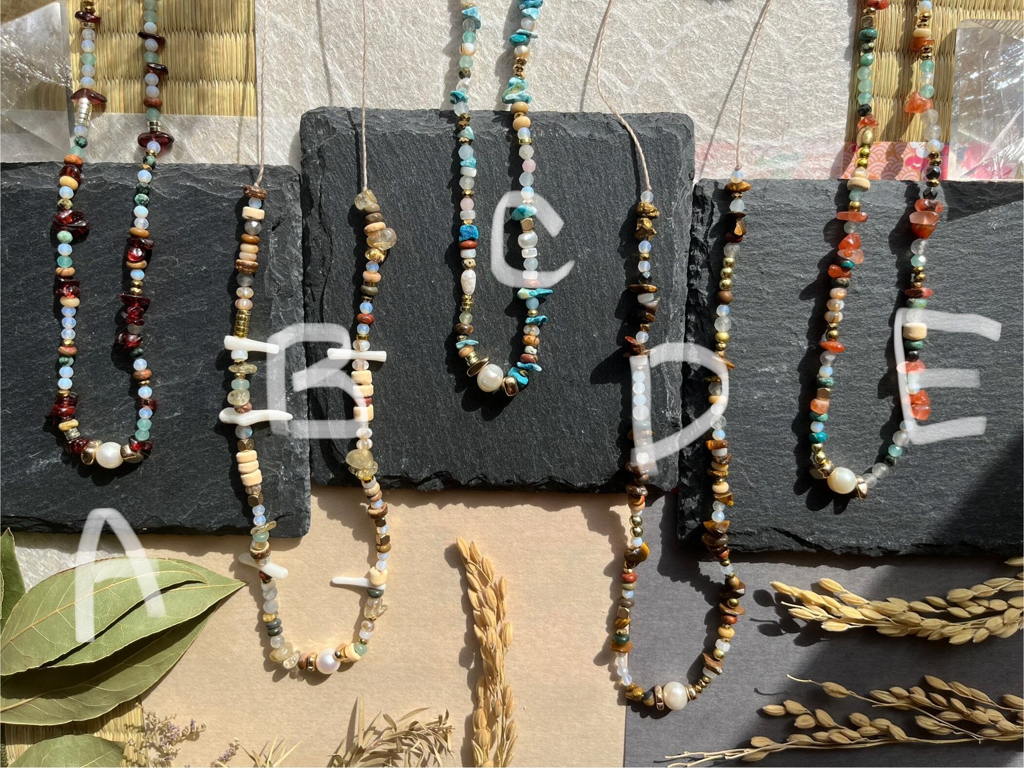 お問い合わせはショップのお問い合わせフォームからお気軽にどうぞ。この5タイプの淡水パールと天然石で、あなたの日常を特別に彩る瞬間をお楽しみください!