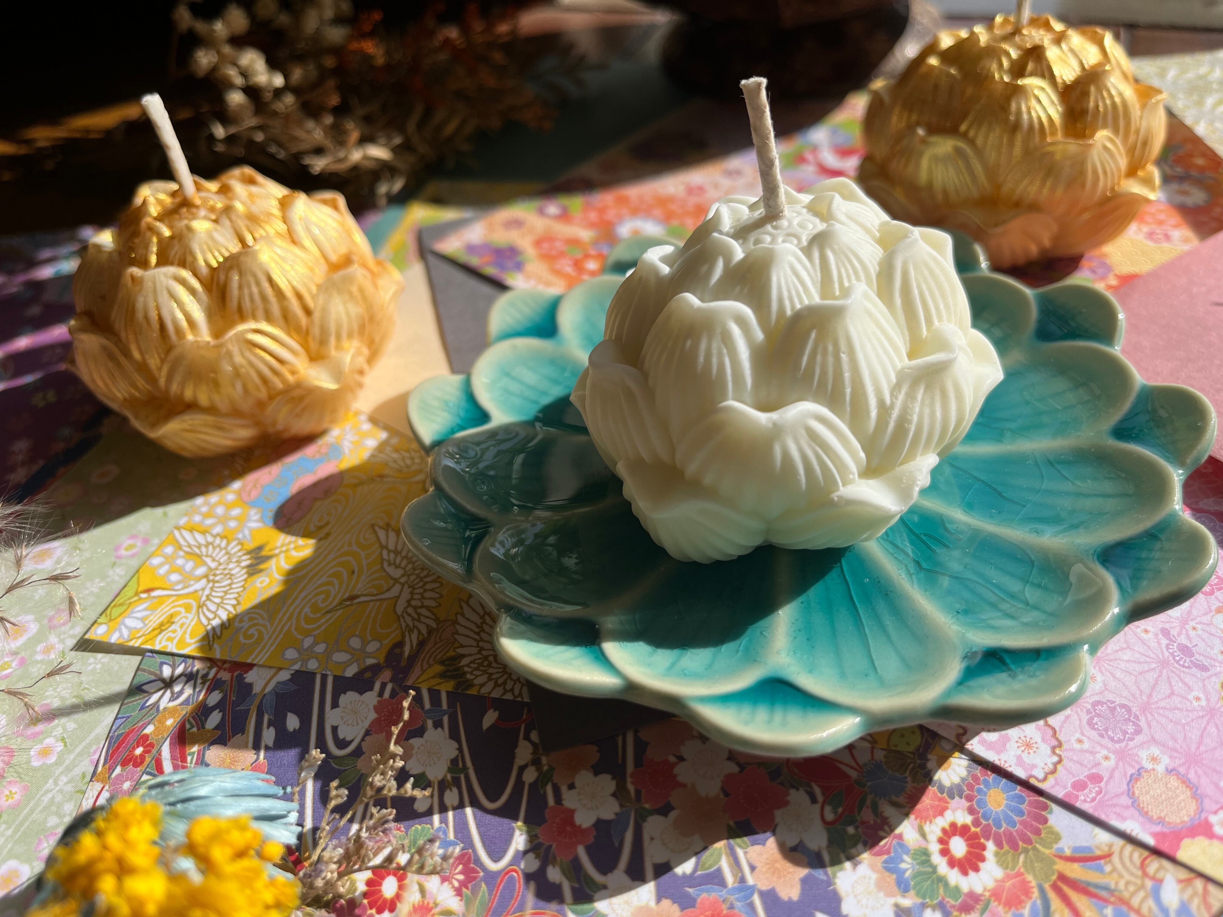 "このソイキャンドルは、2タイプの蓮デザイン(ゴールド・ノーマル)を使用した、心地よい香りと美しい見た目を兼ね備えたアイテムです。それぞれのタイプが持つ特長が、あなたの空間に特別なひとときをもたらし、癒しのシーンを演出します!"