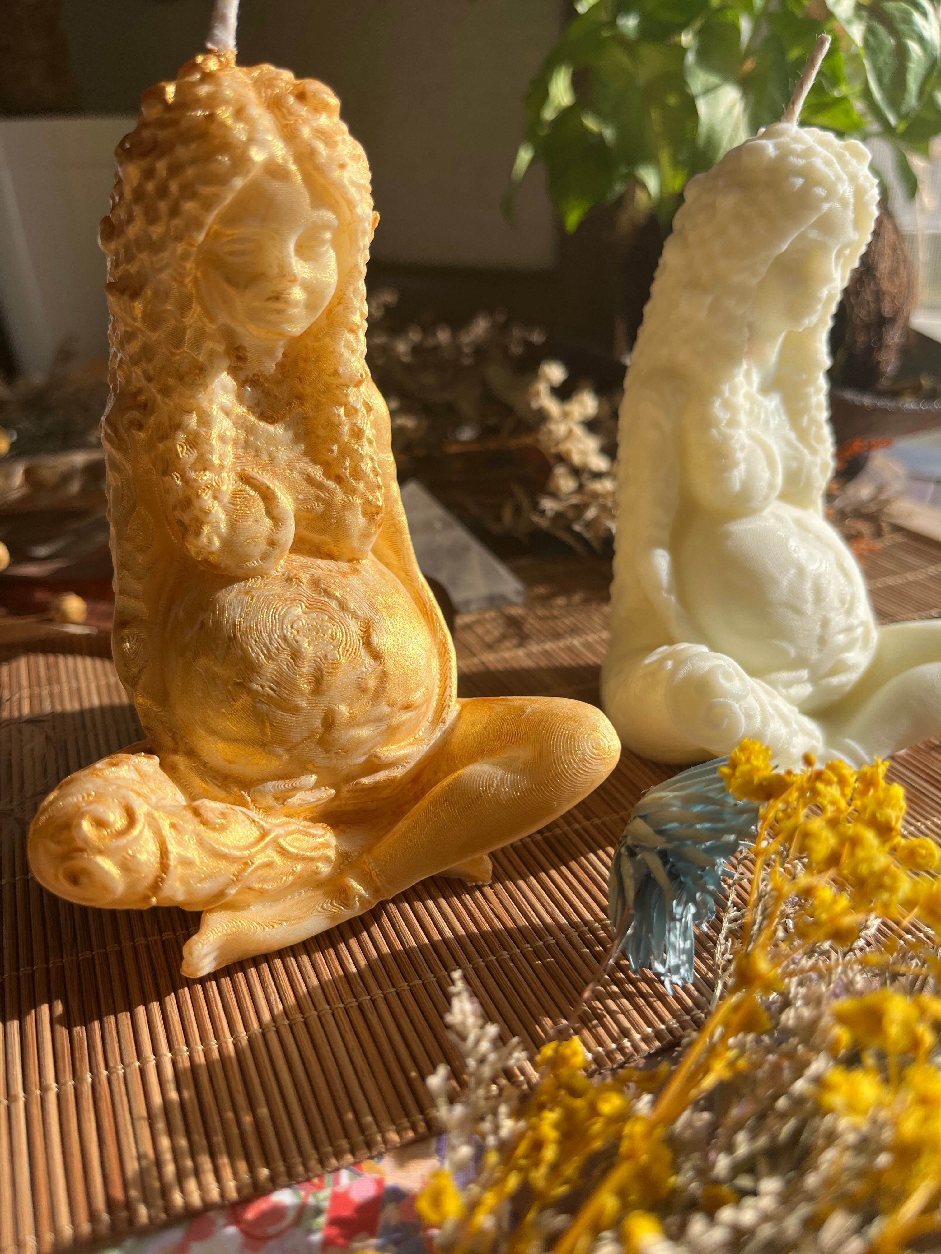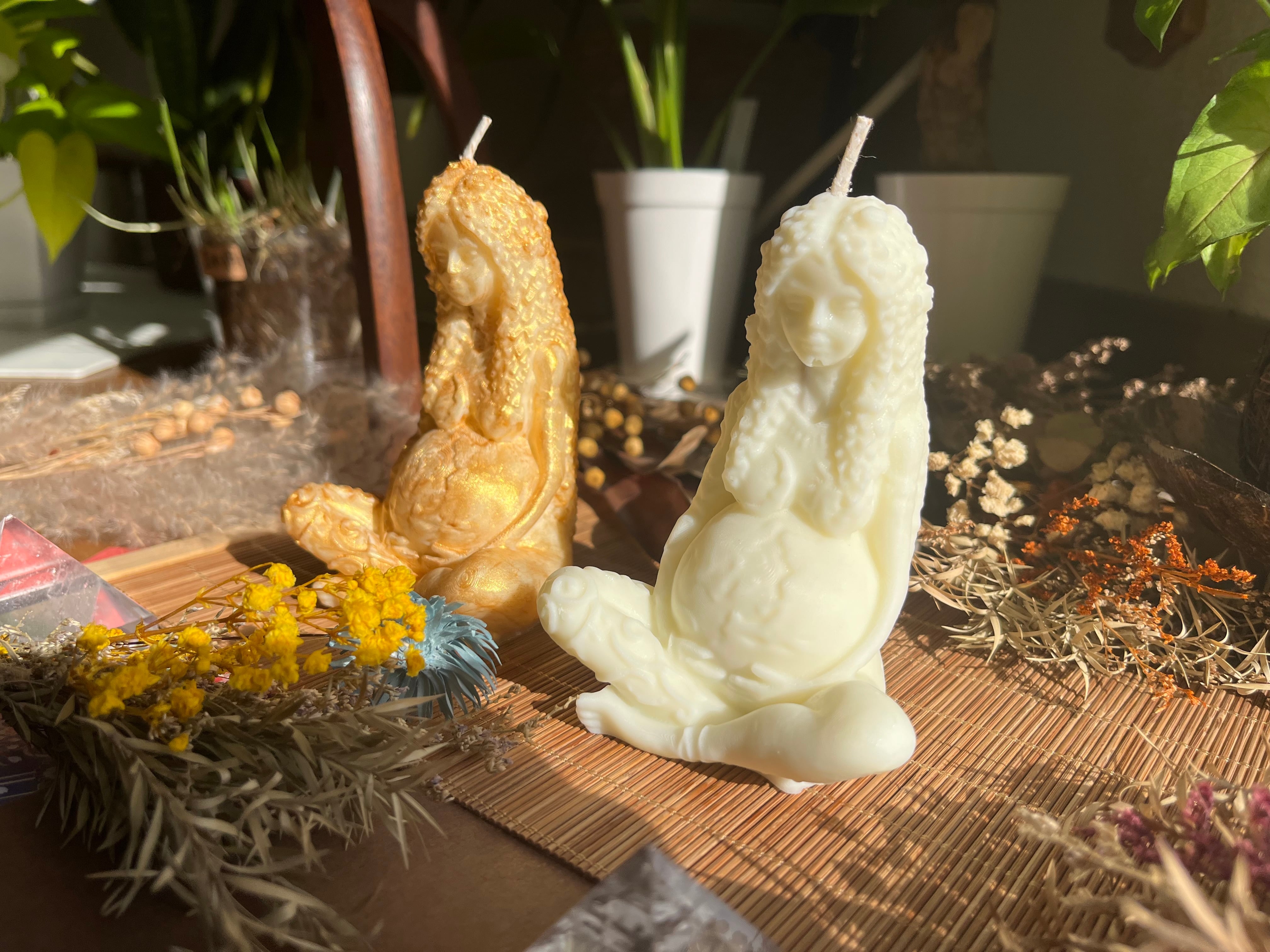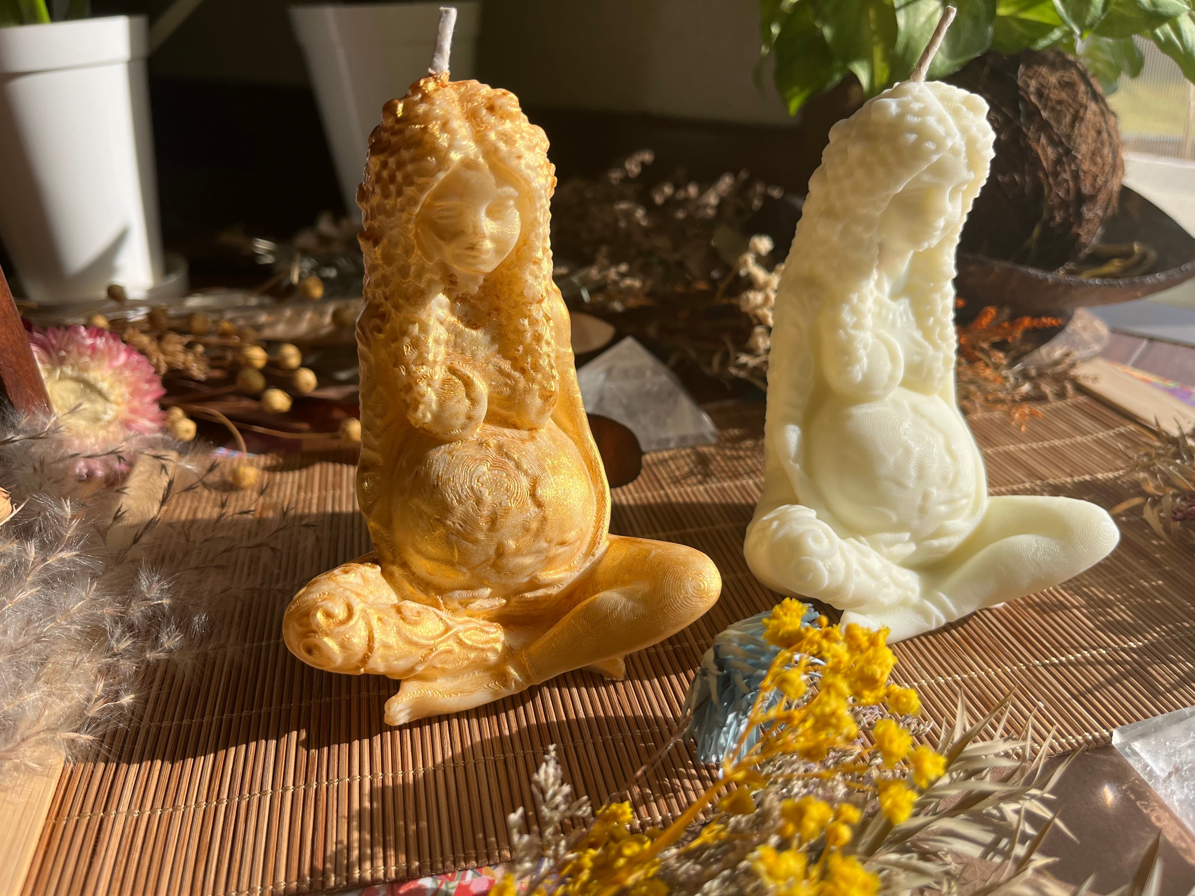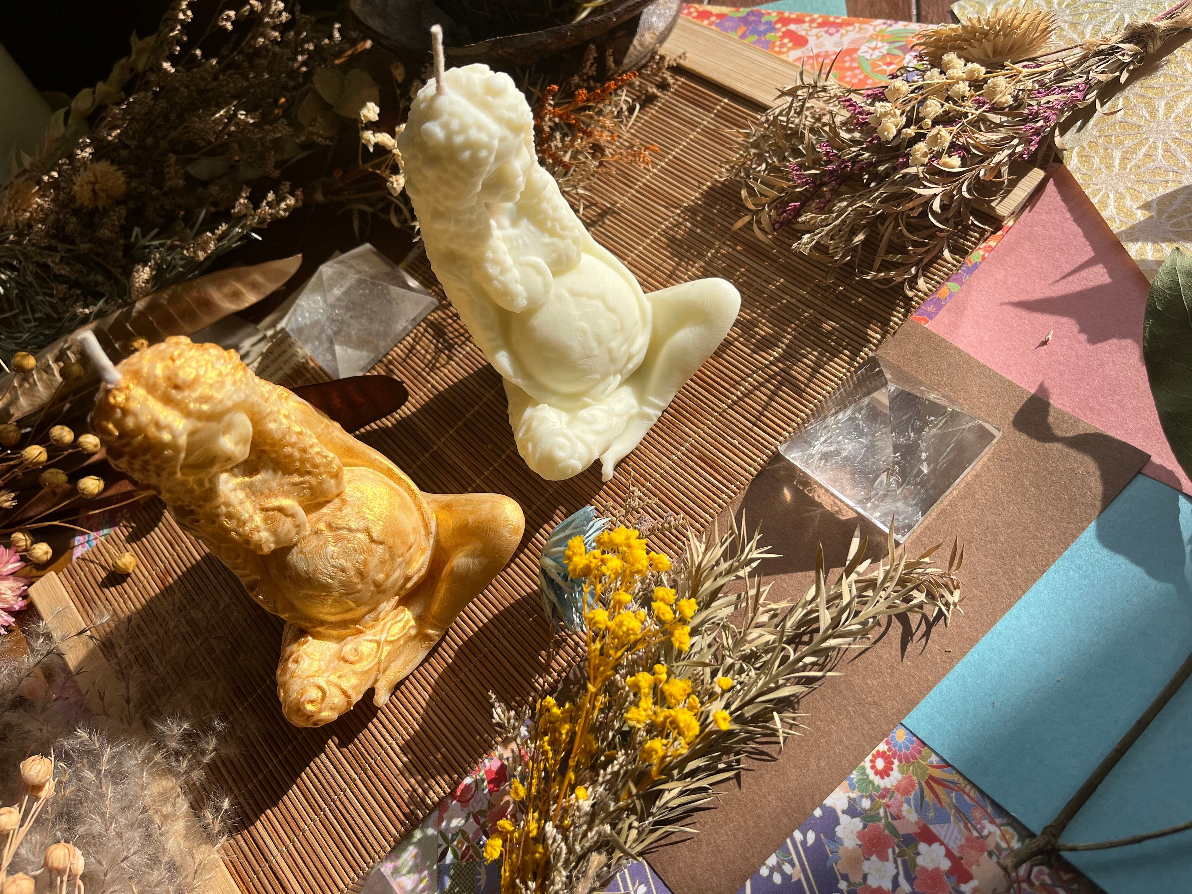 "このソイキャンドルは、2タイプのパチャママデザイン(ゴールド・ノーマル)を使用した、心温まる香りと美しいビジュアルが調和したアイテムです。それぞれのタイプが持つ魅力が、あなたの空間に特別な癒しをもたらし、日常を彩ります!"