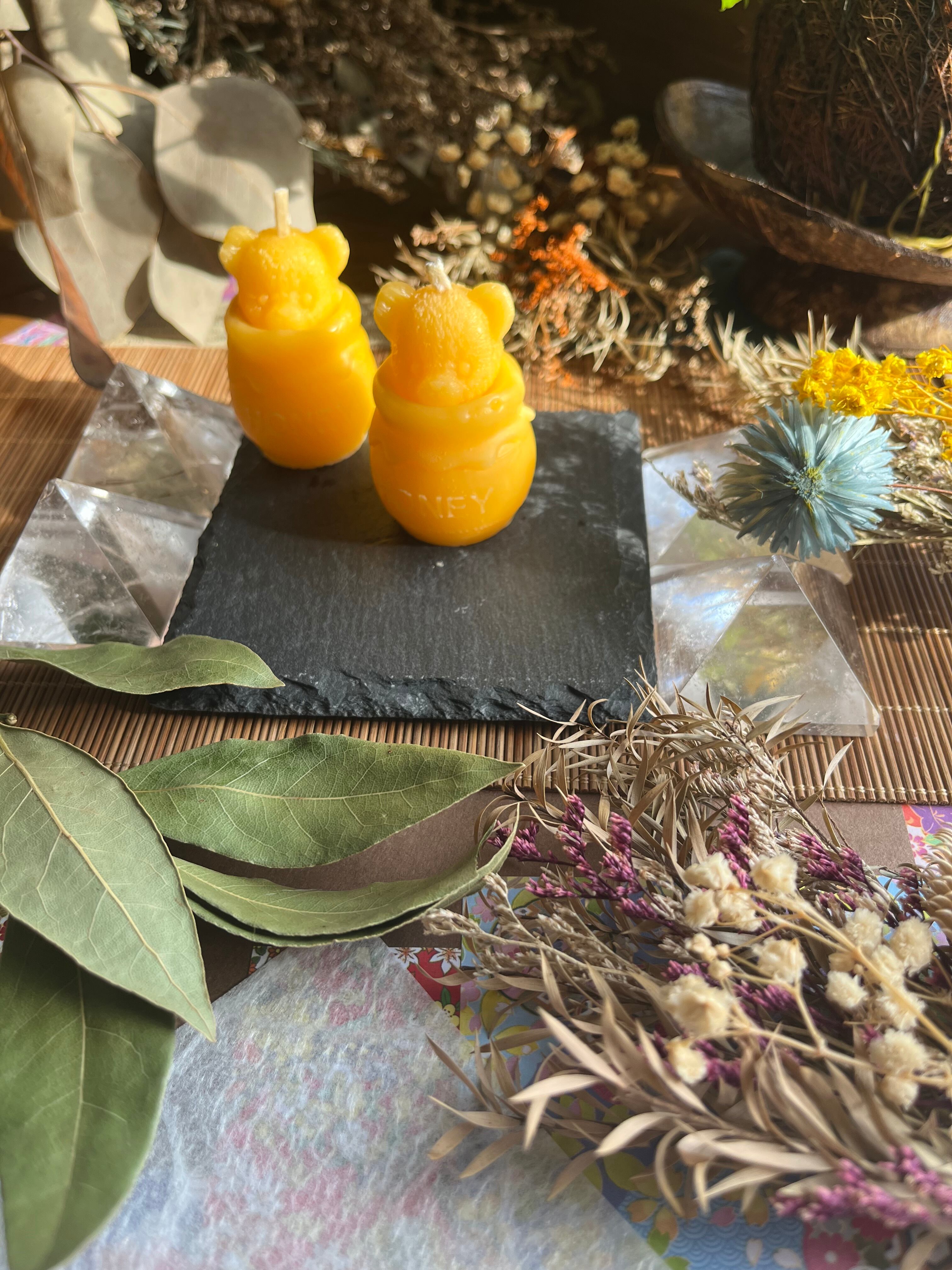 "この蜂蜜くまさん*yellow蜜蝋キャンドルは、愛らしいくまのデザインが特徴のアイテムです。自然のやさしさあふれる香りと柔らかな光が調和し、あなたの空間に温かい癒しをもたらします!"