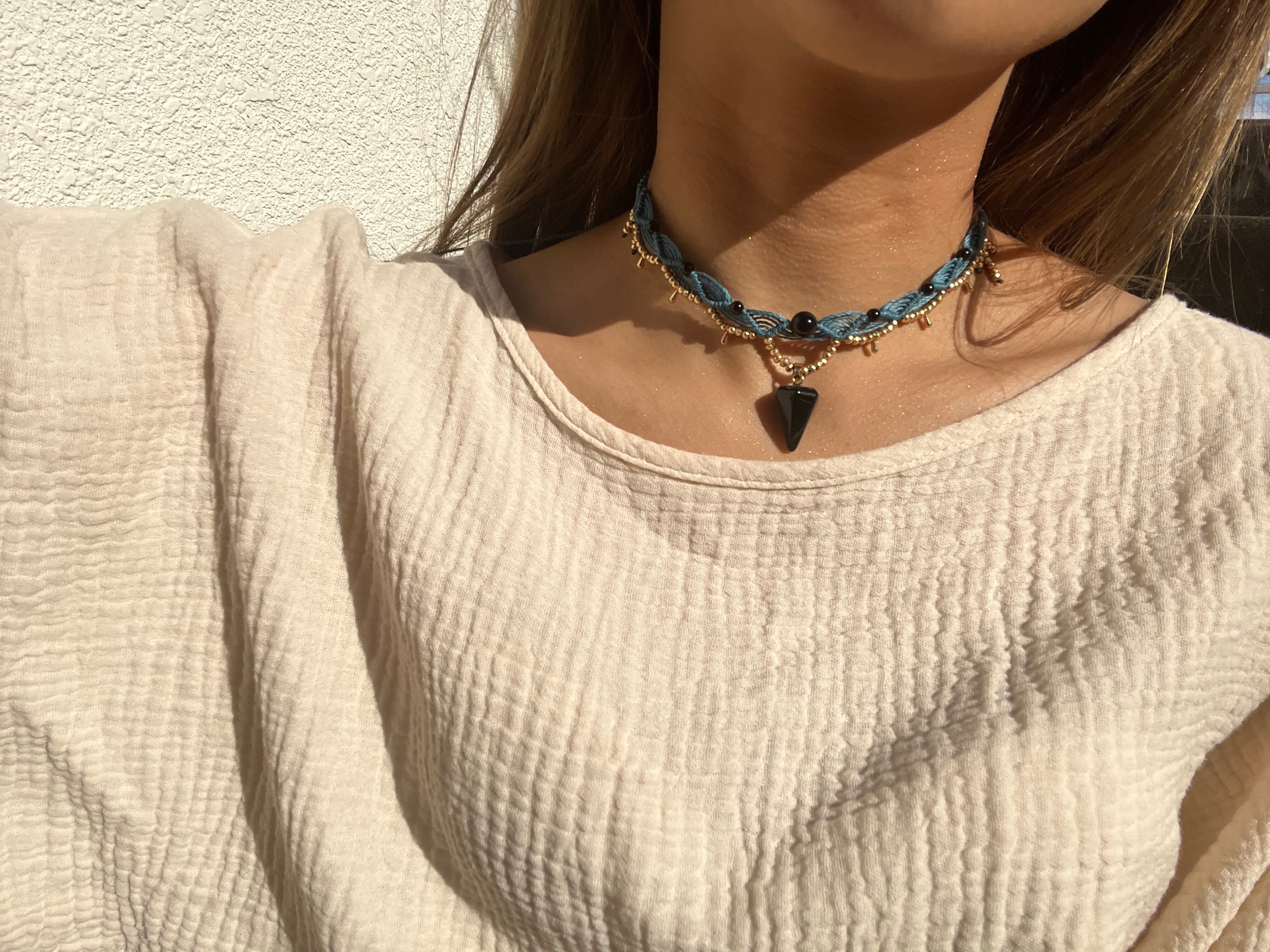 Blue青海波模様*Diamond top.onyx.hematite〜choker