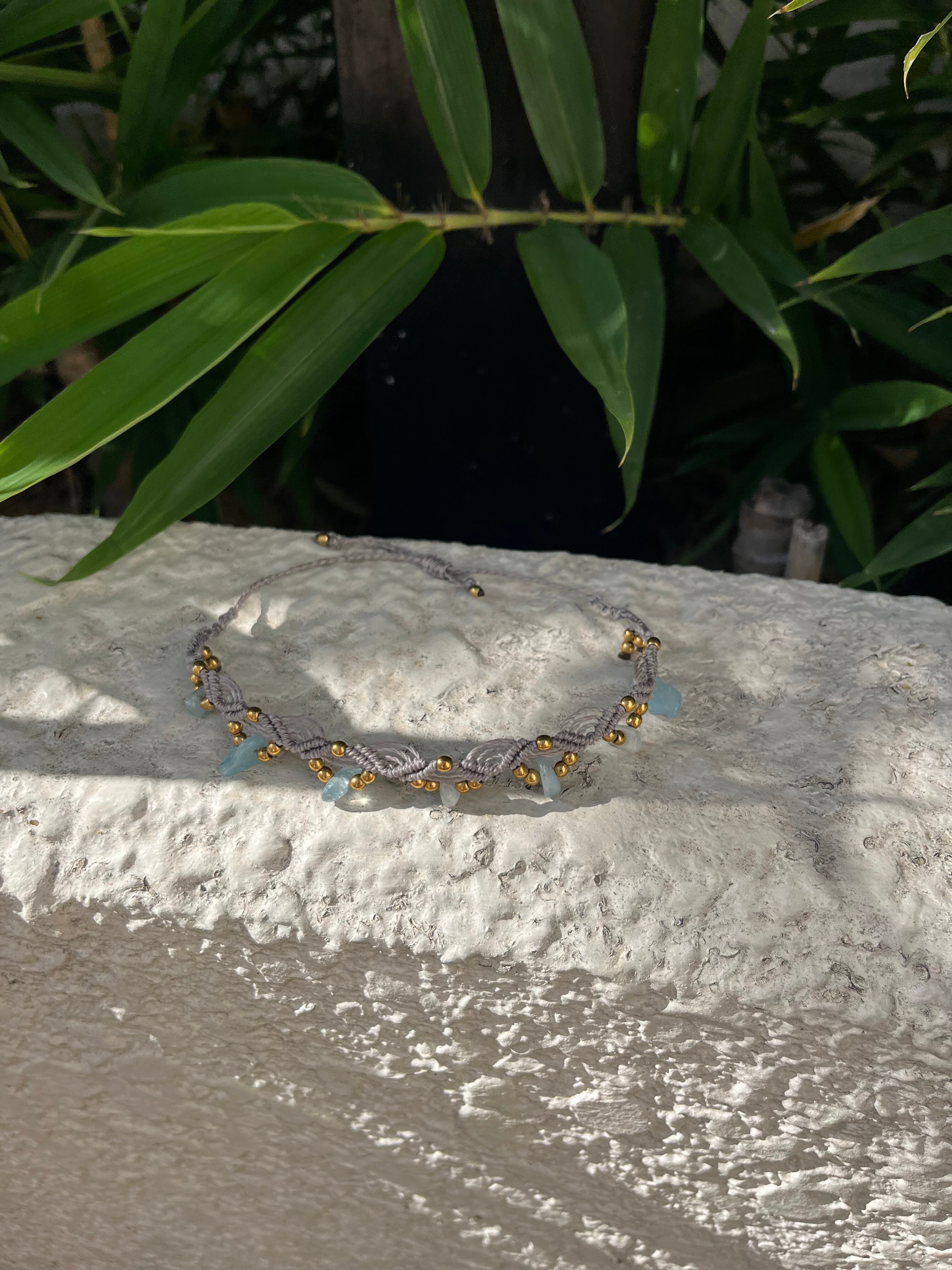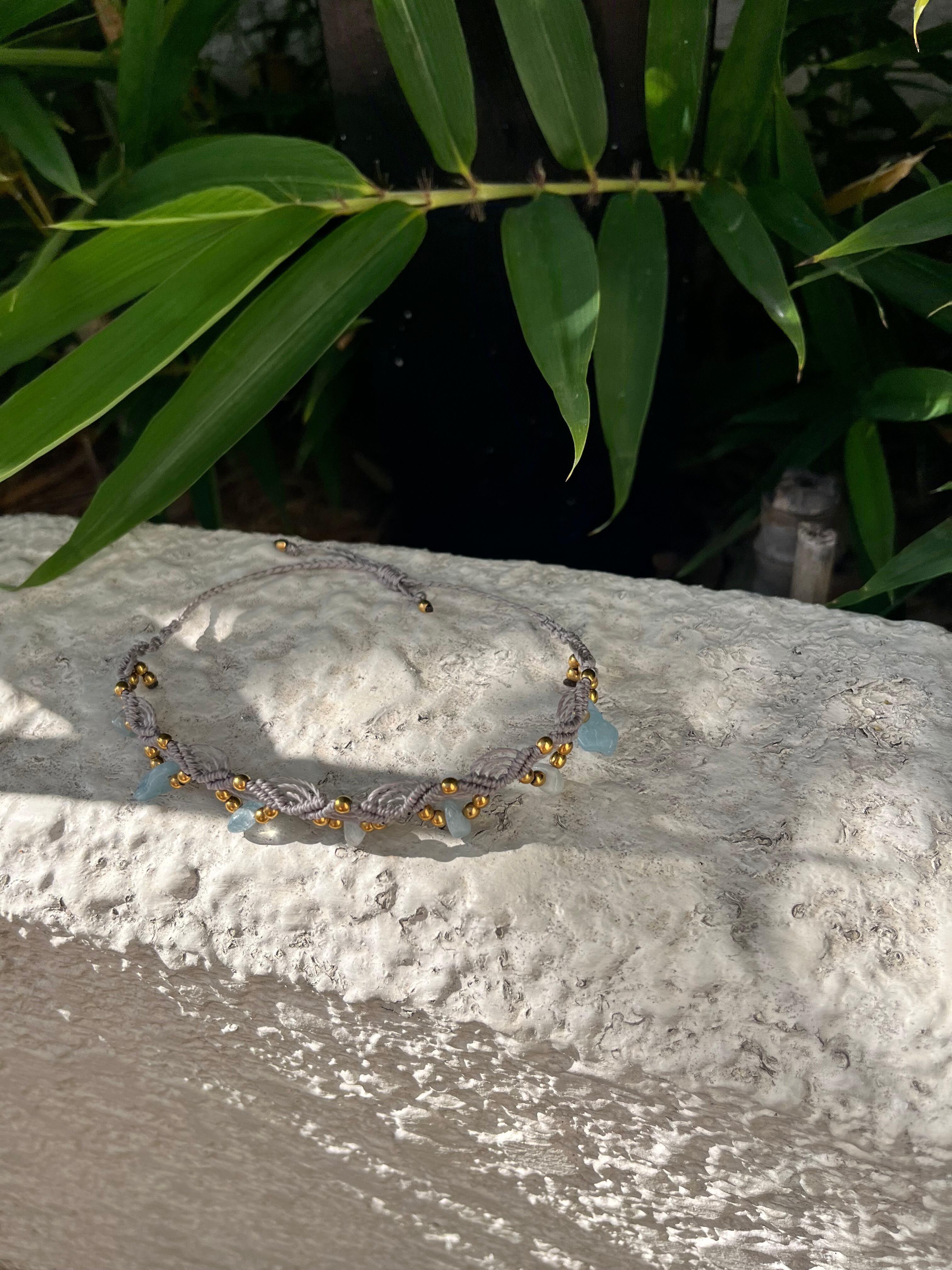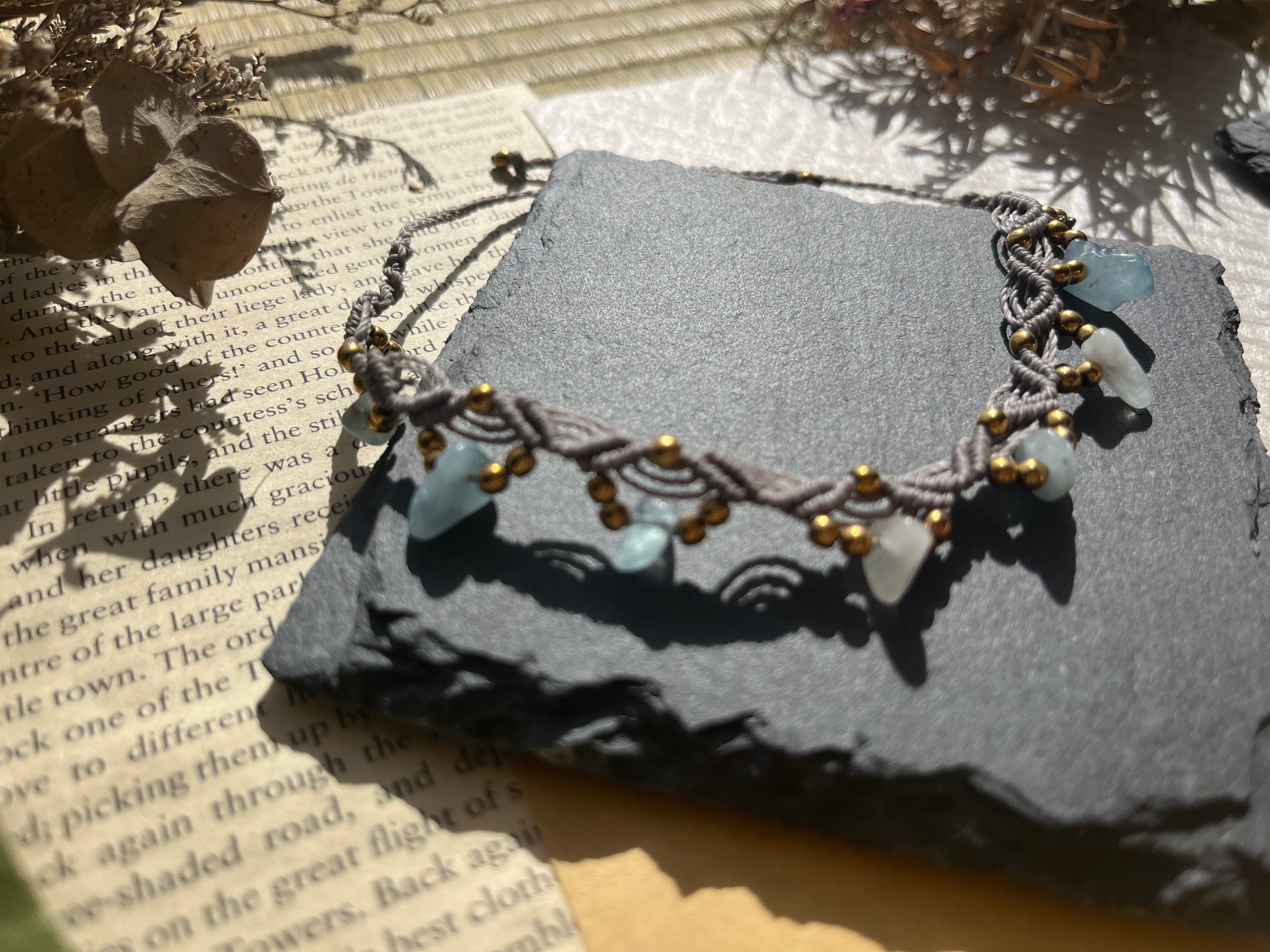 アクアマリンとヘマタイトが織りなす特別なアンクレットです。