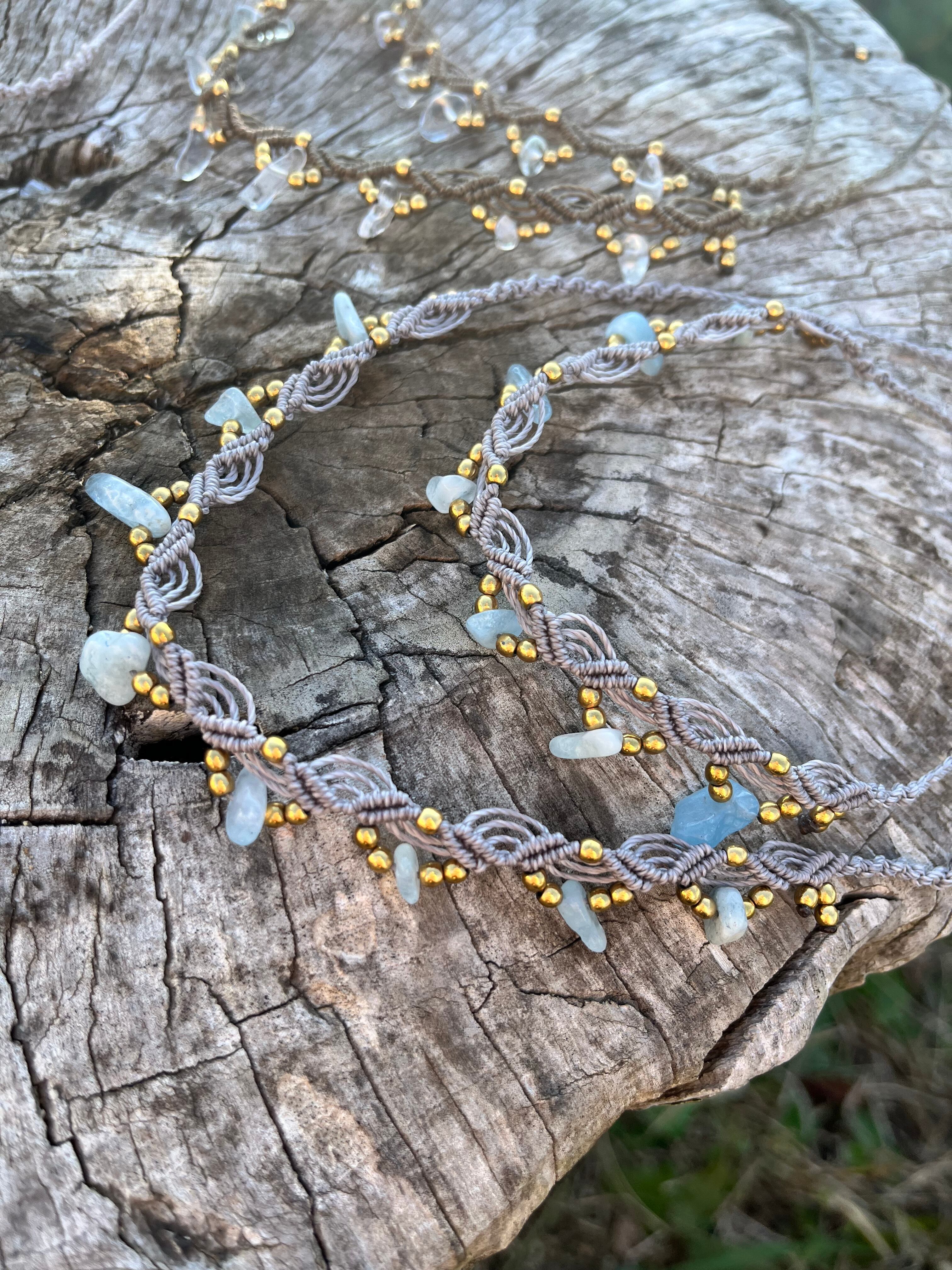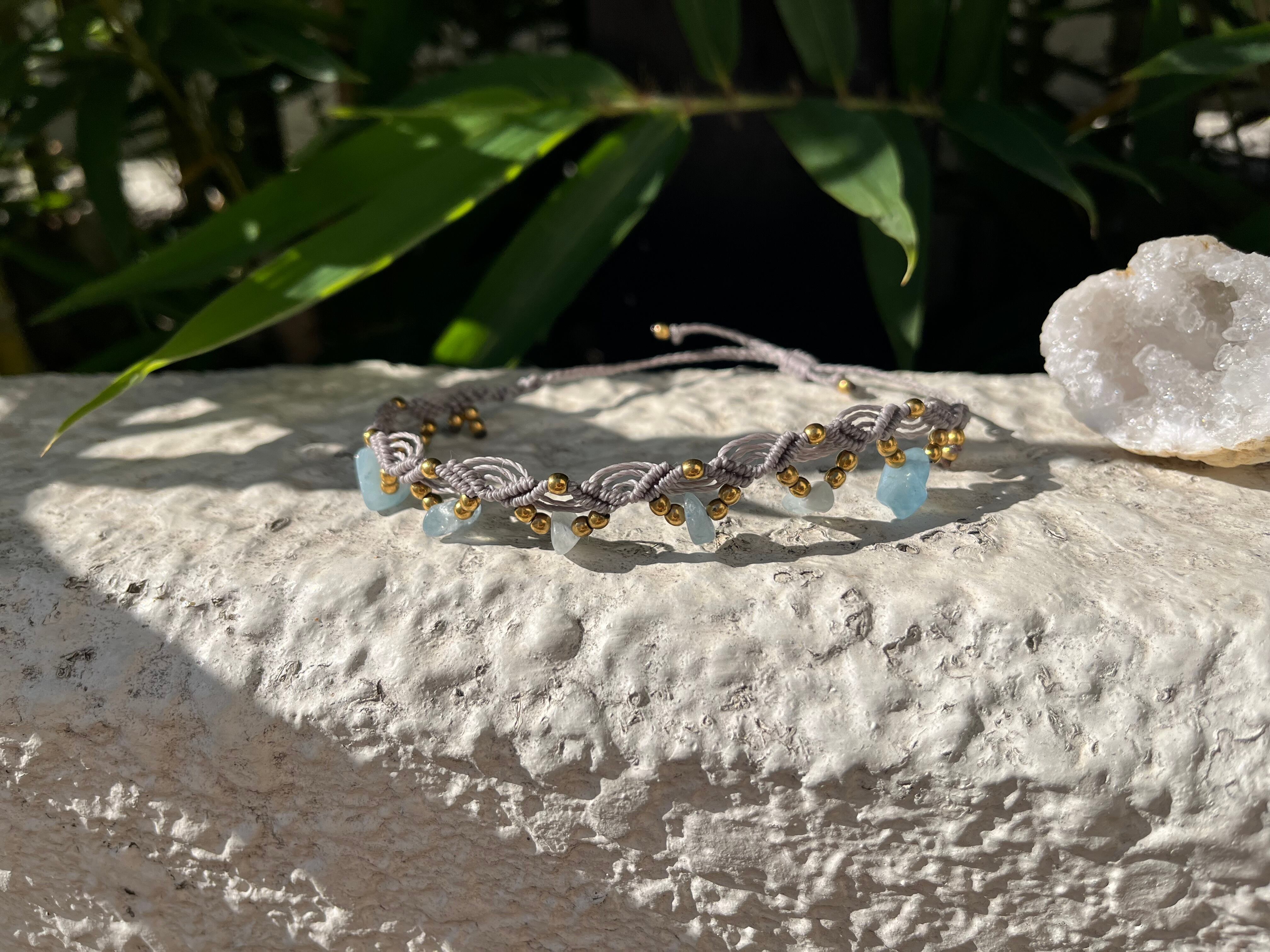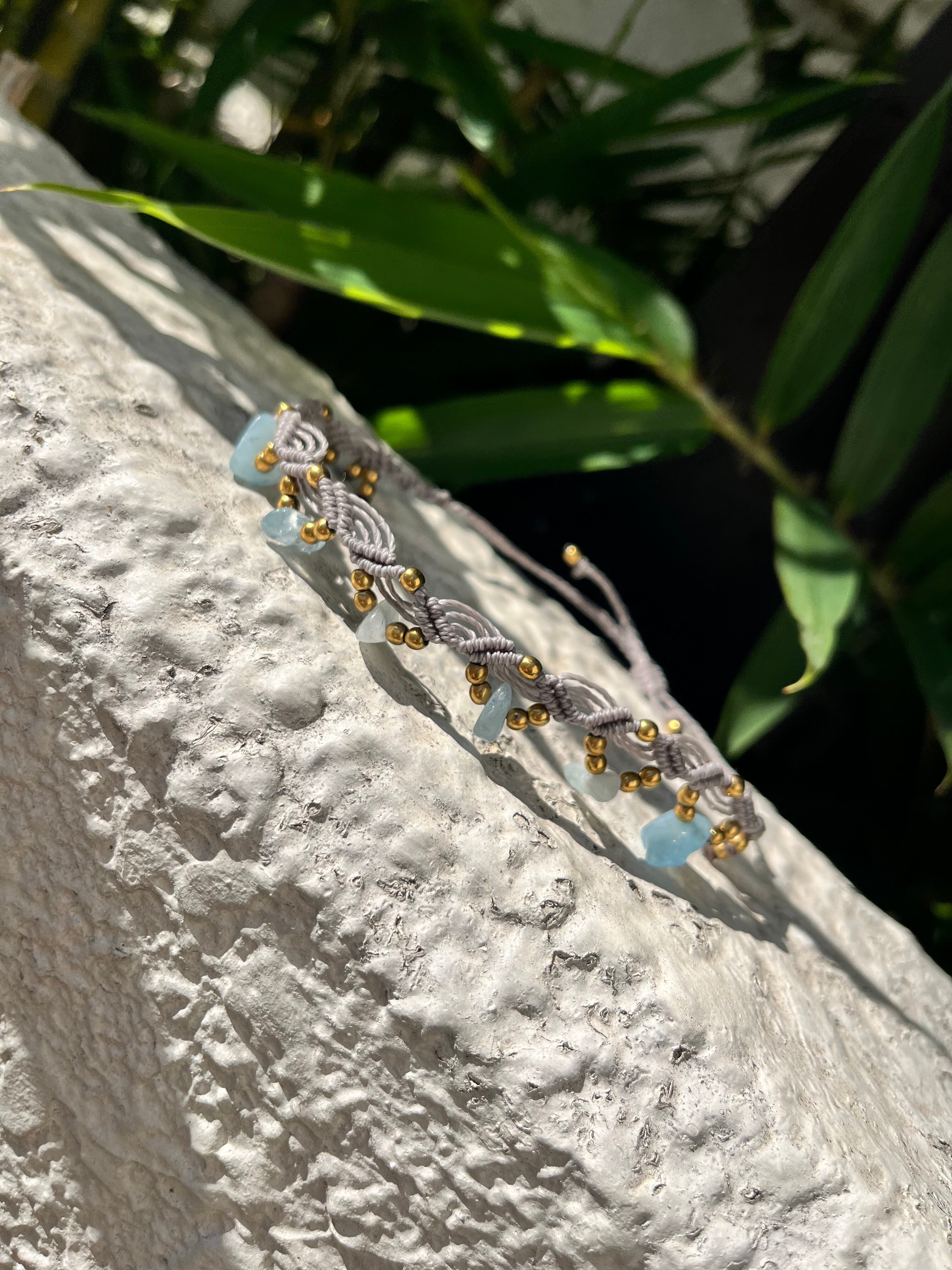 アクアマリンとヘマタイトが織りなす特別なアンクレットです。