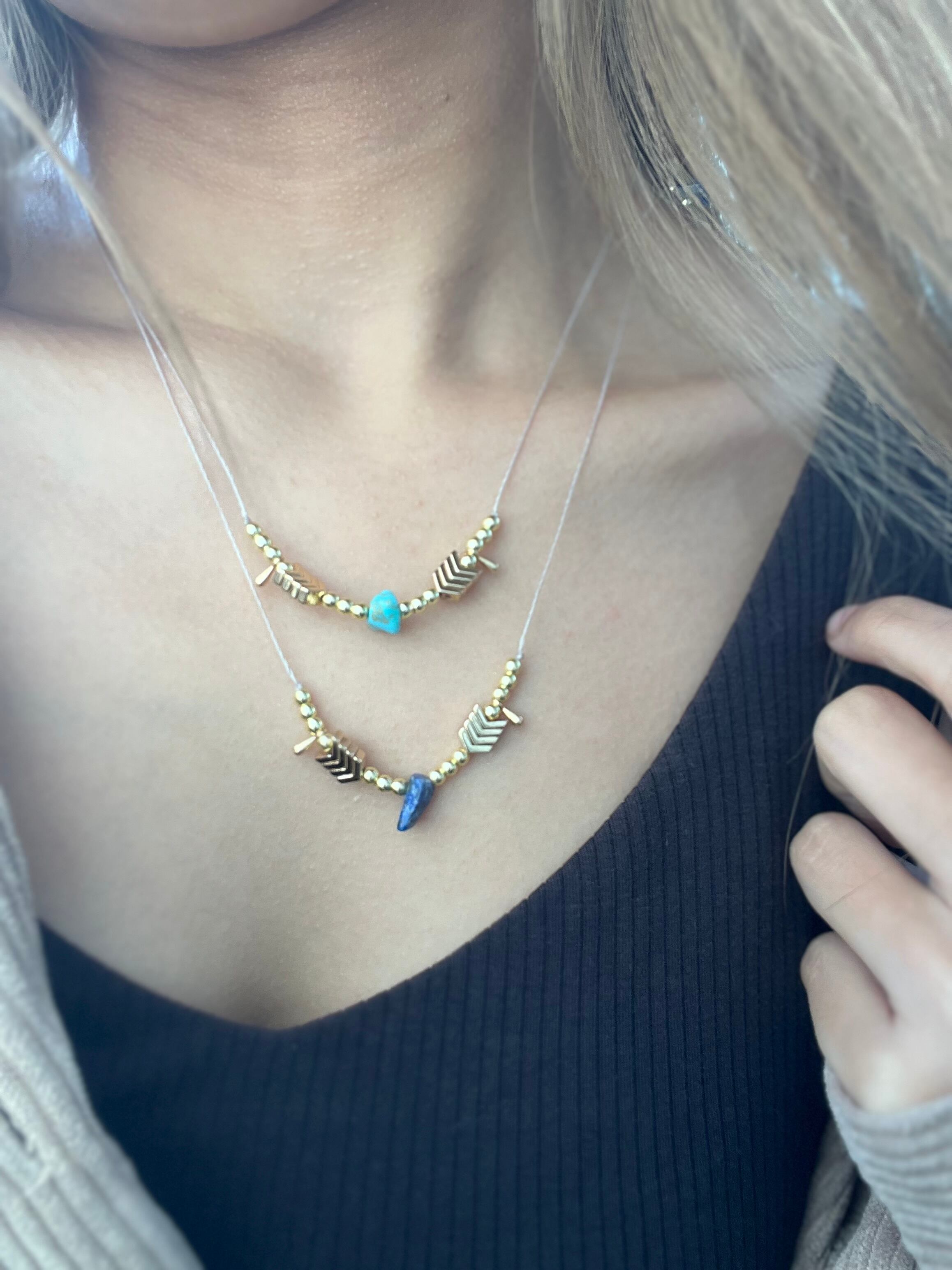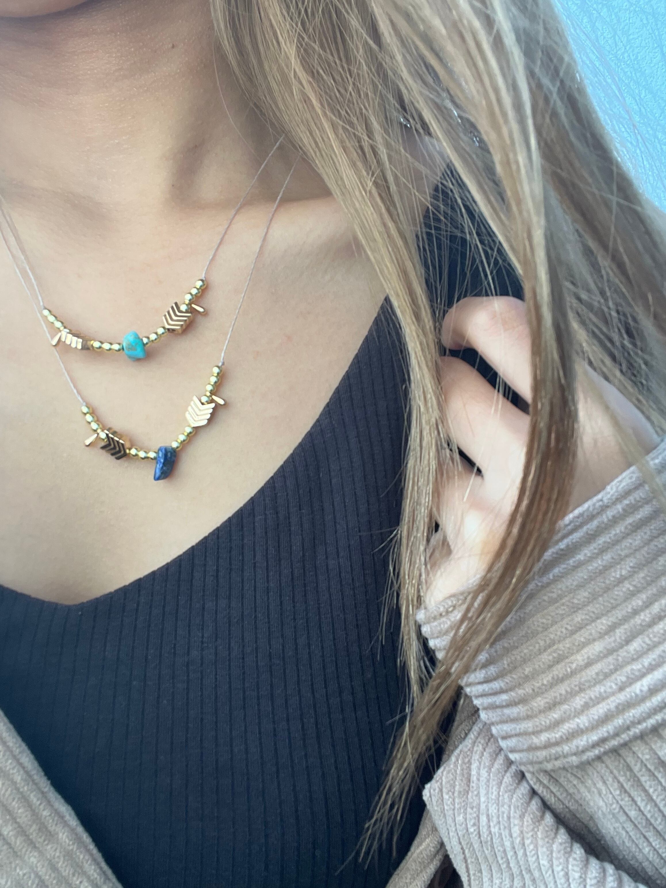 ラピスラズリとヘマタイトが調和した特別なネックレスです。