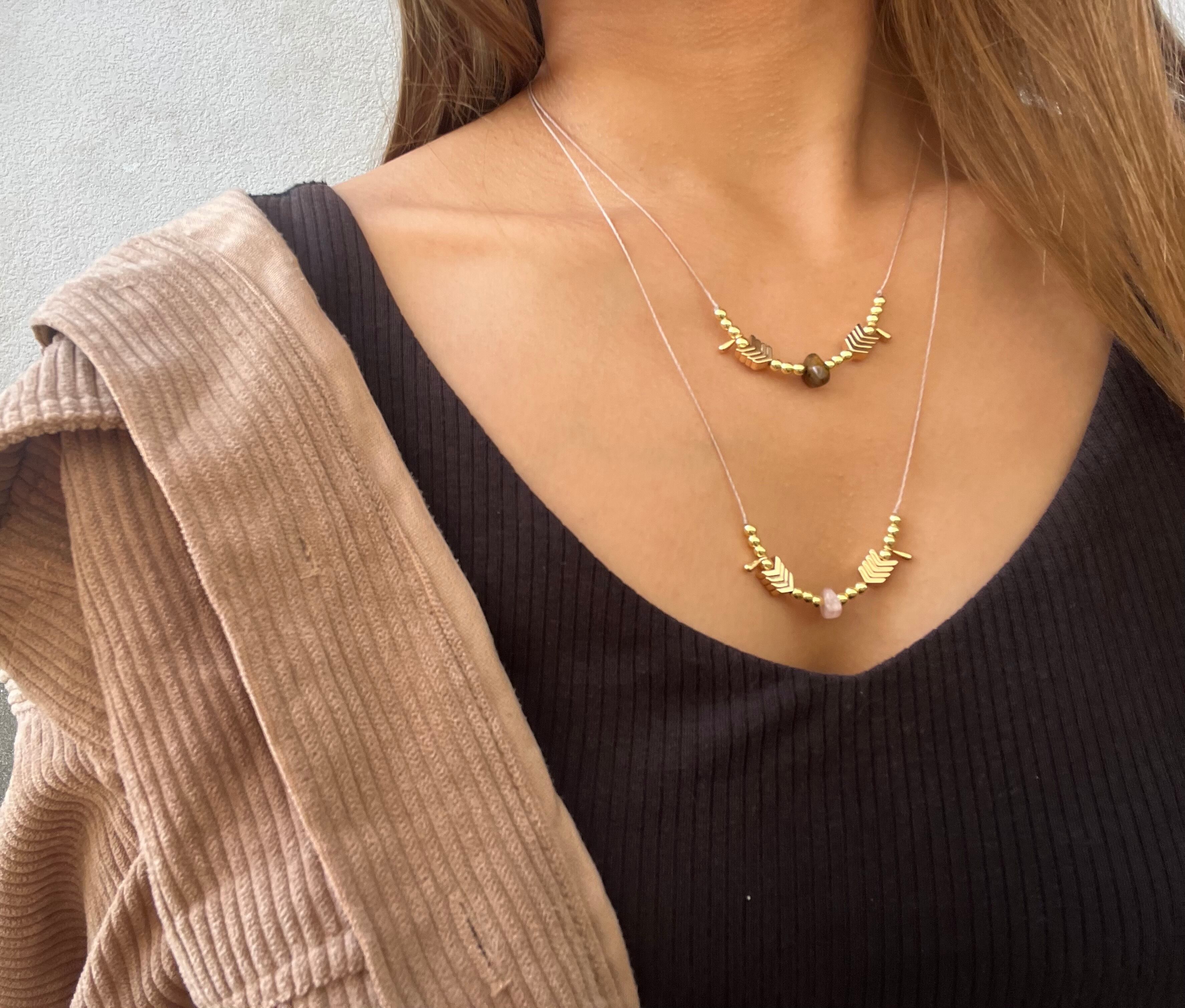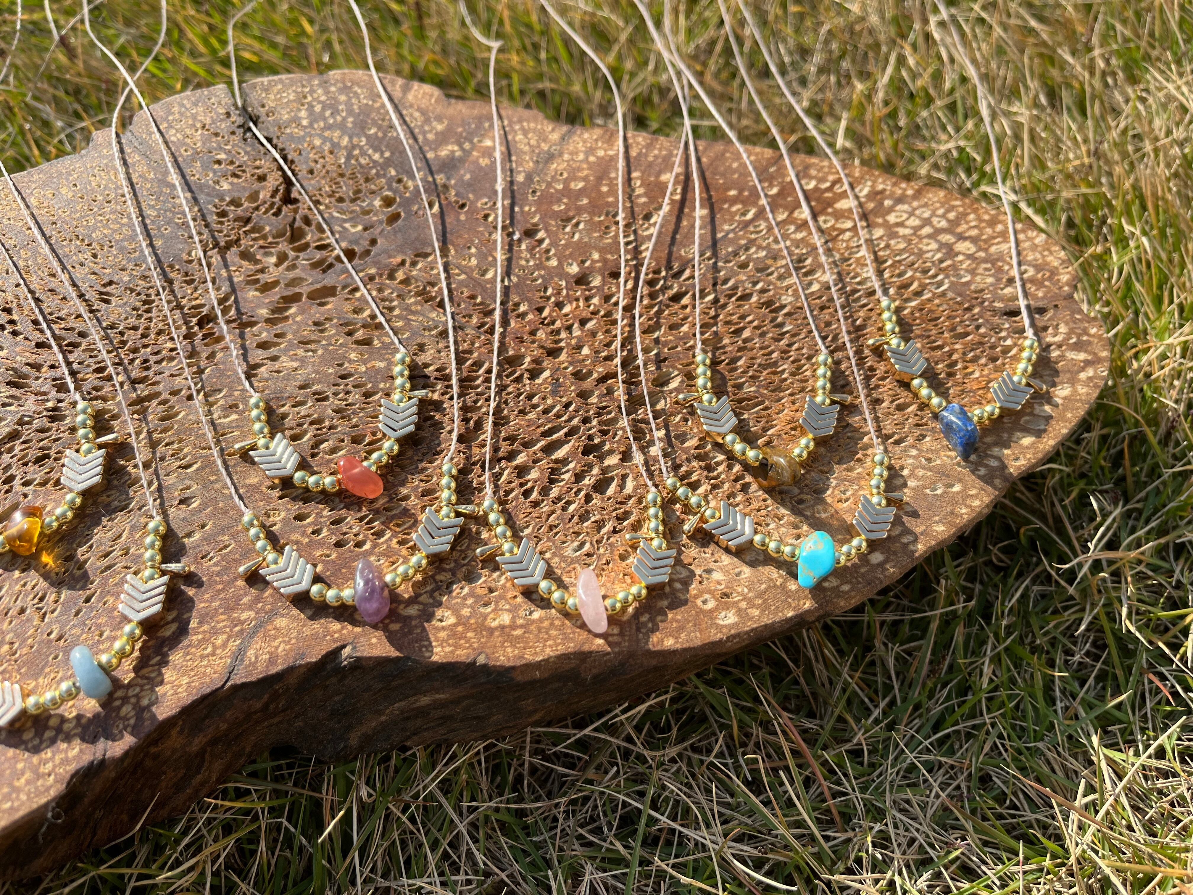 手作業で丁寧に作られたこのネックレスは、天然素材の特性を生かしたデザインが魅力です。