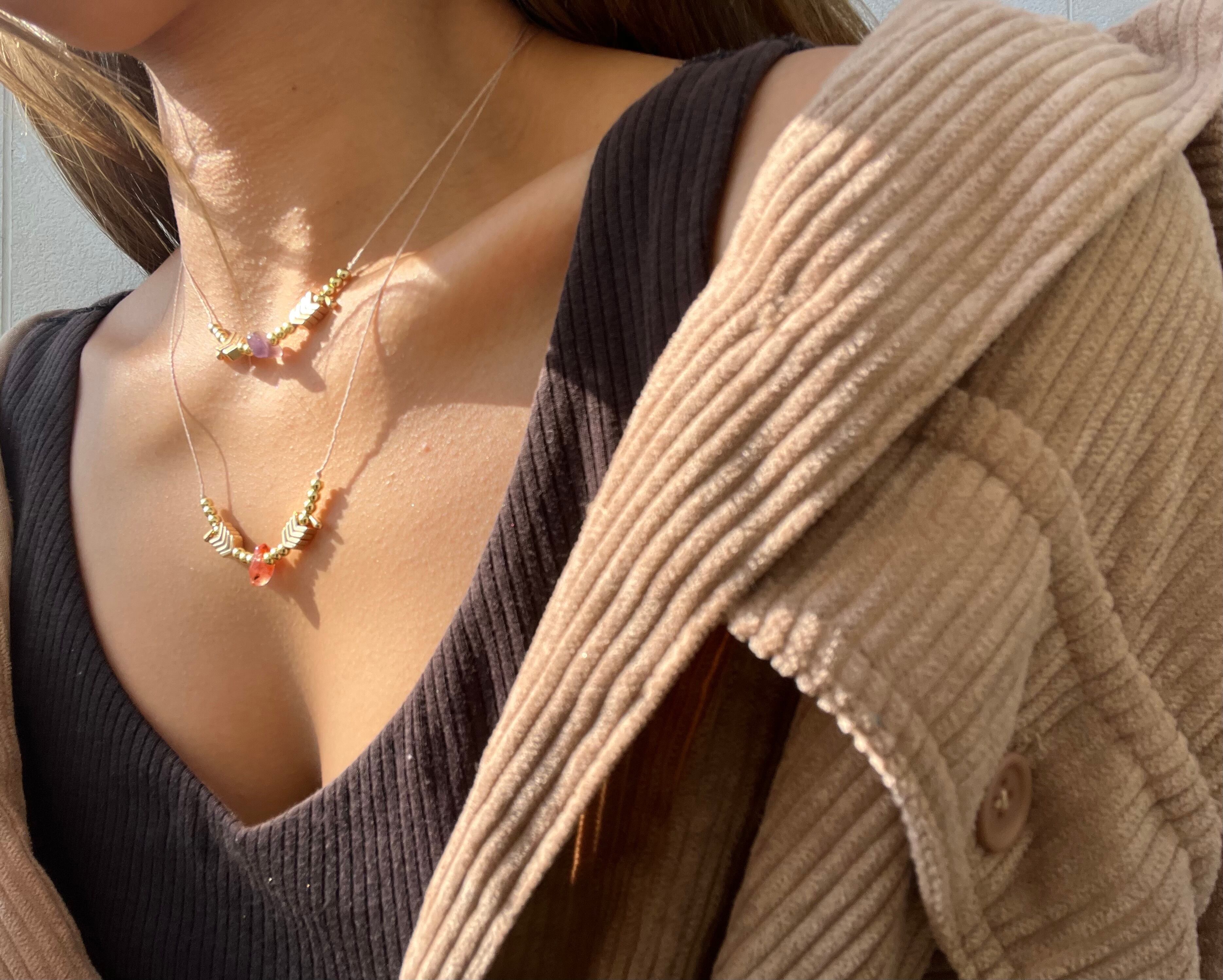 破魔矢は、邪気を払い、幸運を呼び寄せると言われる伝統的なアイテムであり、このネックレスを身に着けることで、持つ人の魅力を引き立て、ポジティブなエネルギーをもたらします。アメジストは高いヒーリングパワーを持ち、心の平和を保つ助けをするとされています。このネックレスを通じて、あなたの日常に豊かな安らぎとインスピレーションを加えることでしょう。