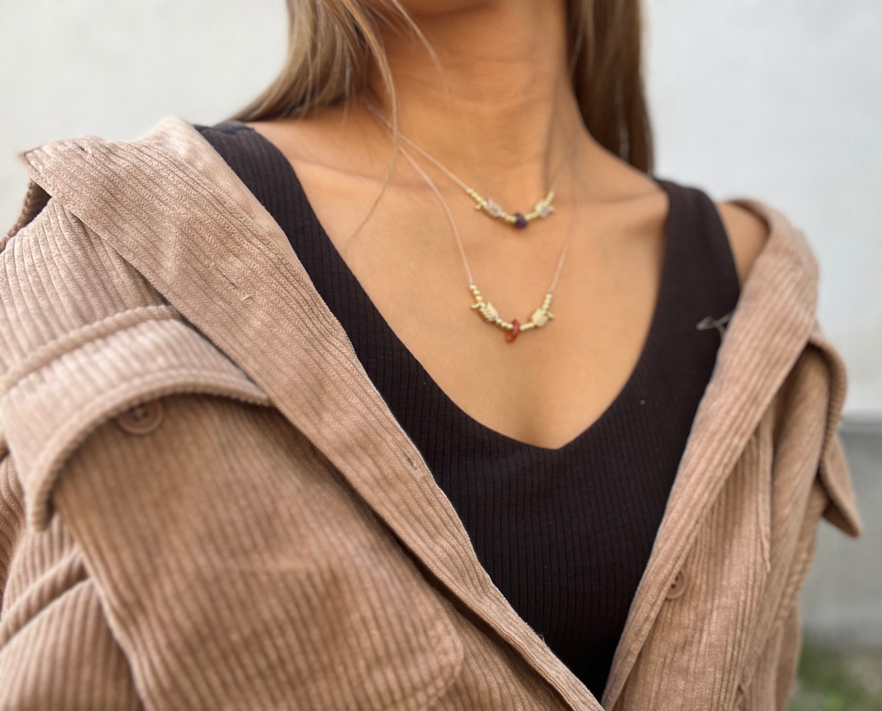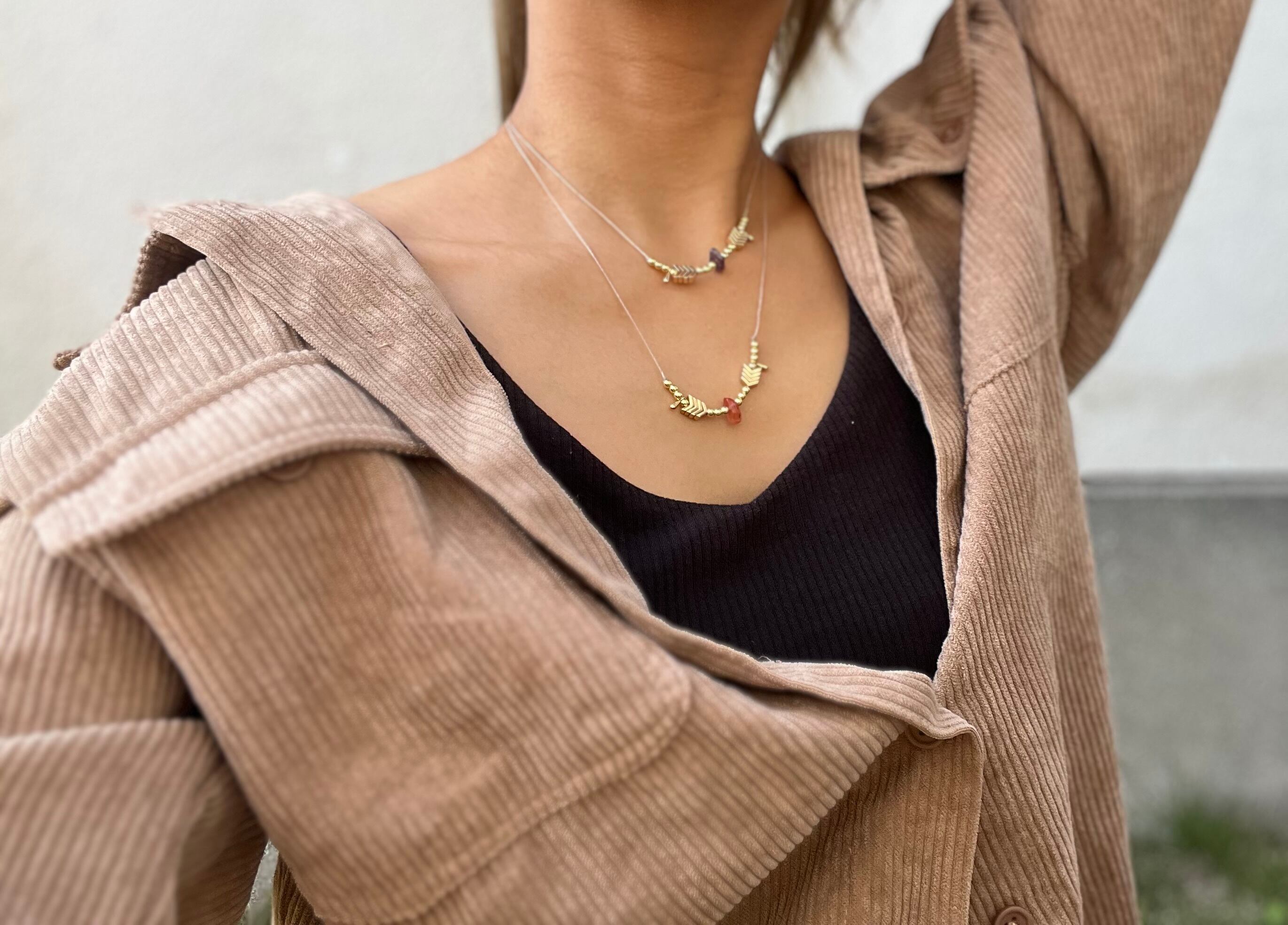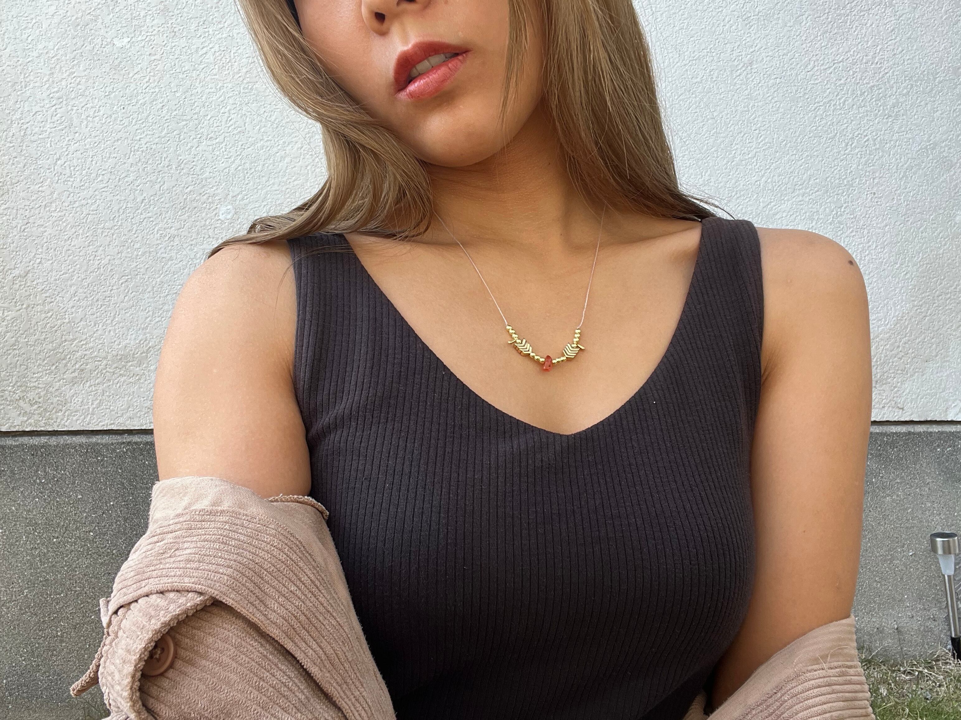 カーネリアンとヘマタイトが絶妙に調和し、あなたのスタイルに鮮やかさと独自の雰囲気を添えます。このネックレスを身に着けることで、特別な瞬間や日常のコーディネートに自信をもたらしてくれるでしょう。