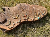 手作業で丁寧に作られたこのネックレスは、天然素材の特性を生かしたデザインが特徴です。