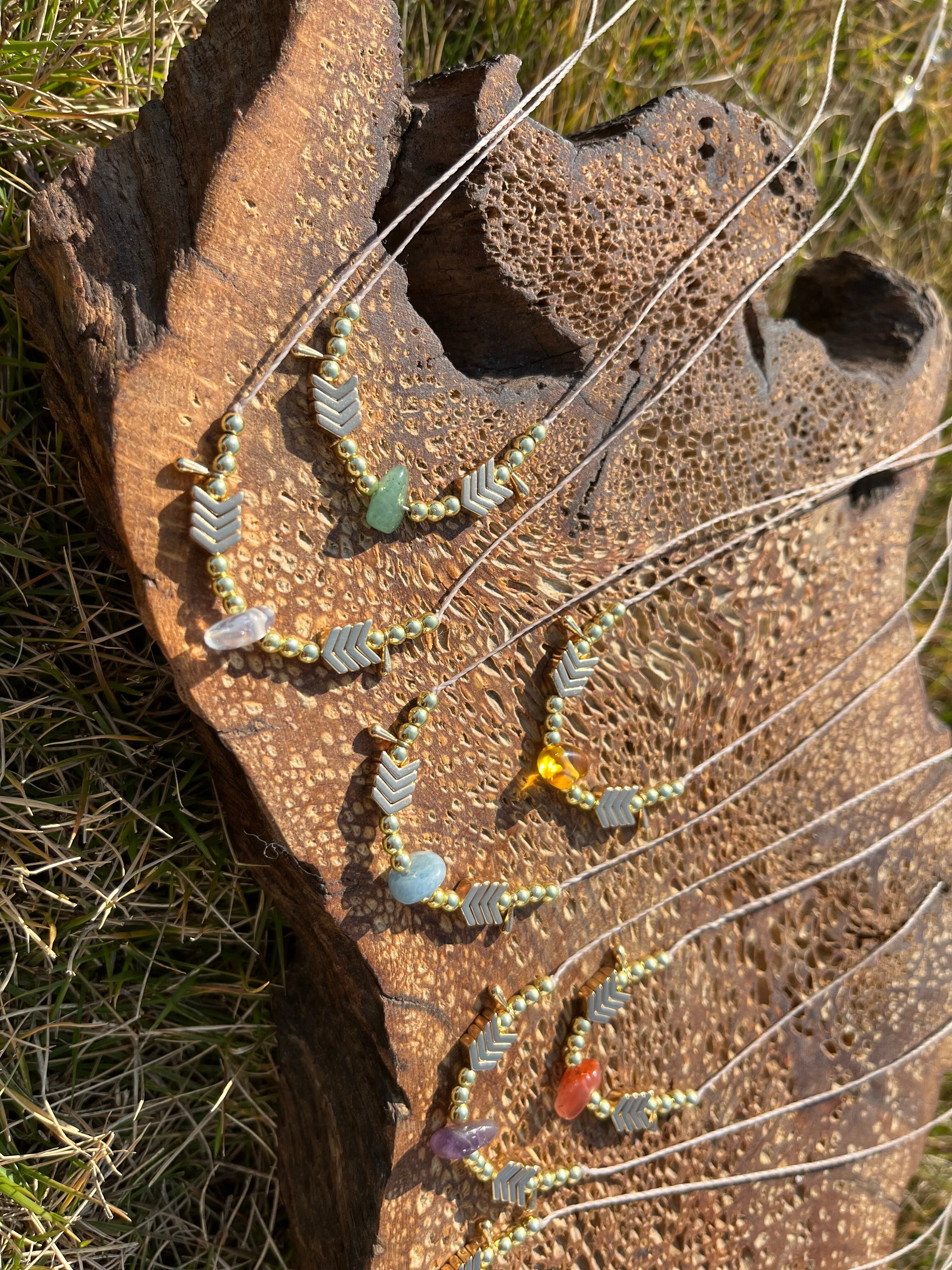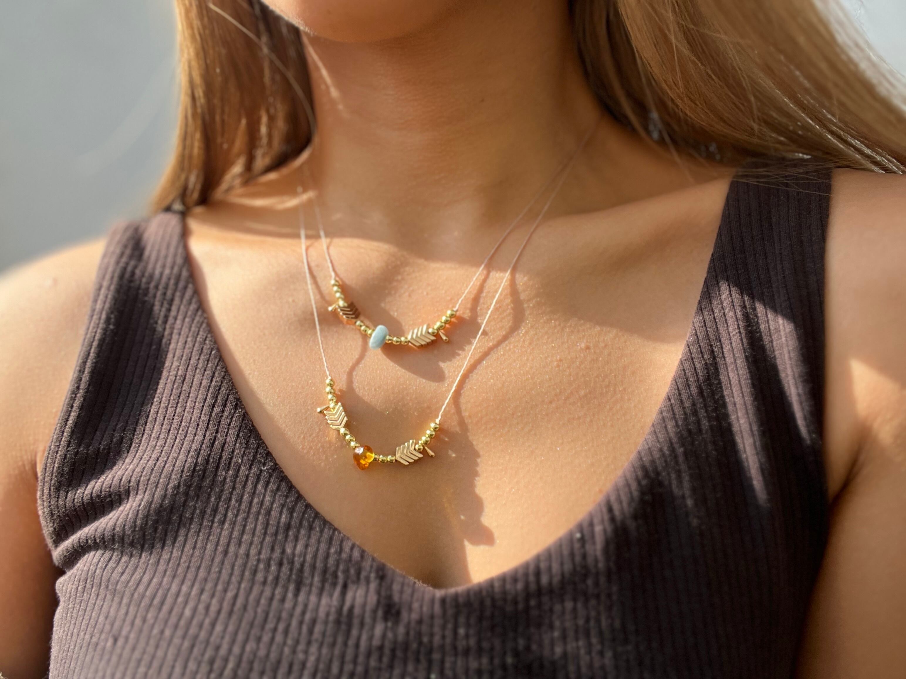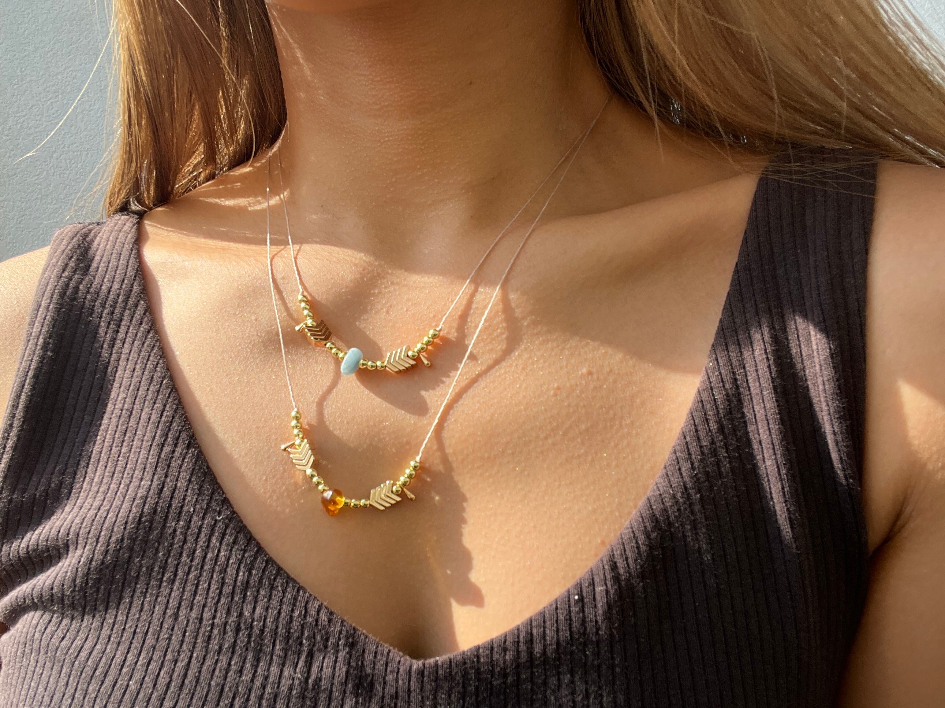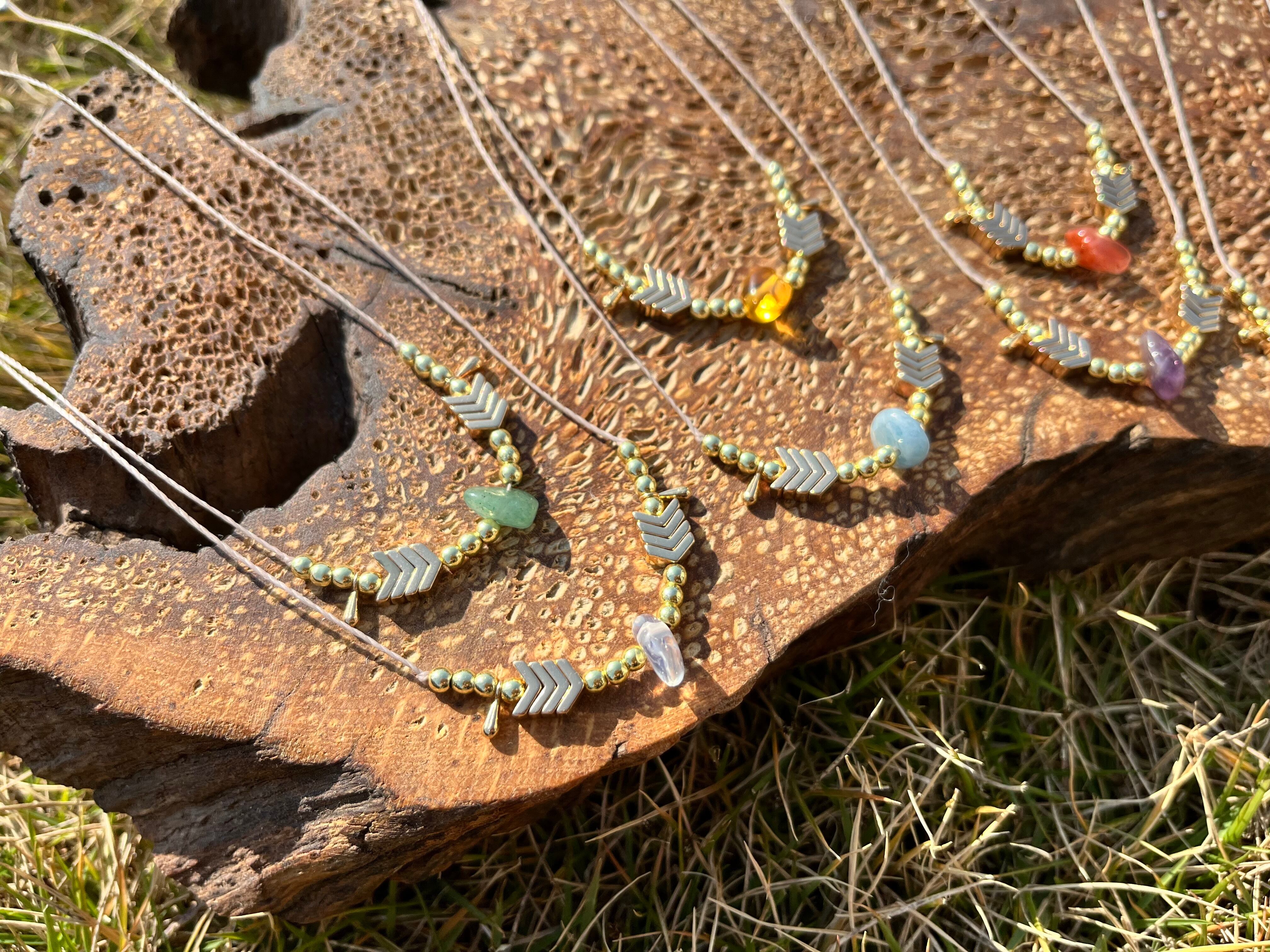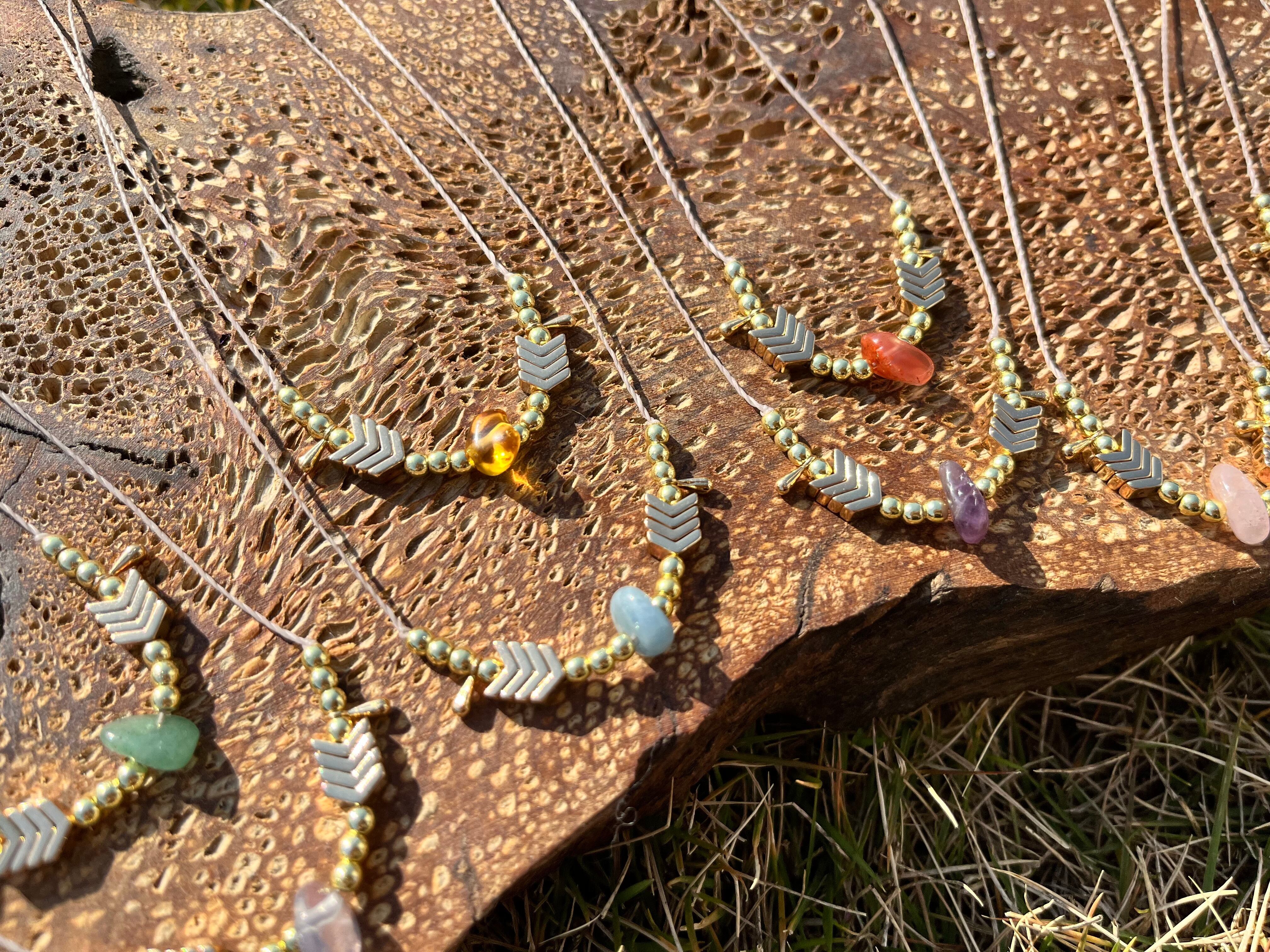 シトリンとヘマタイトが織りなす特別なネックレスです。