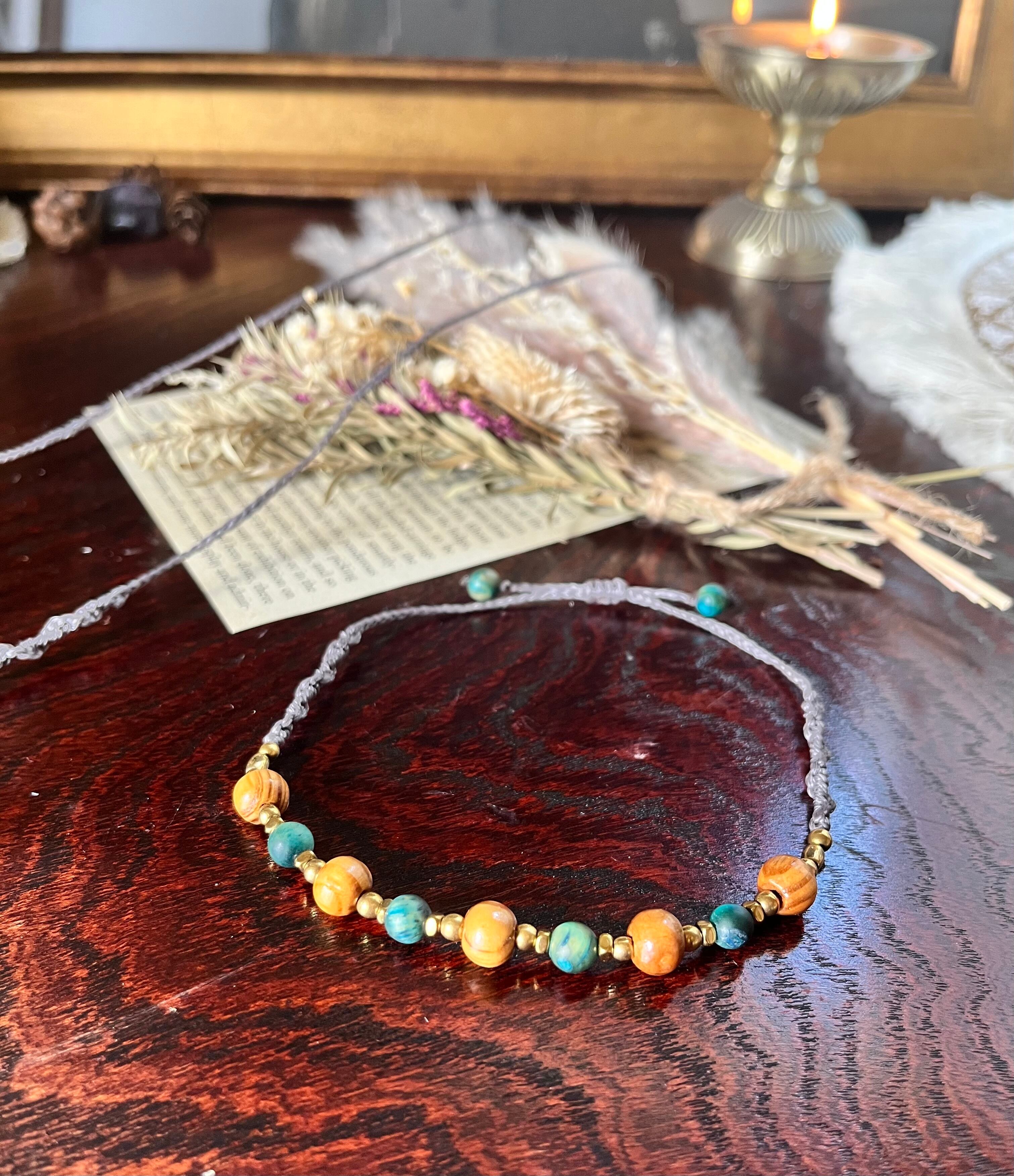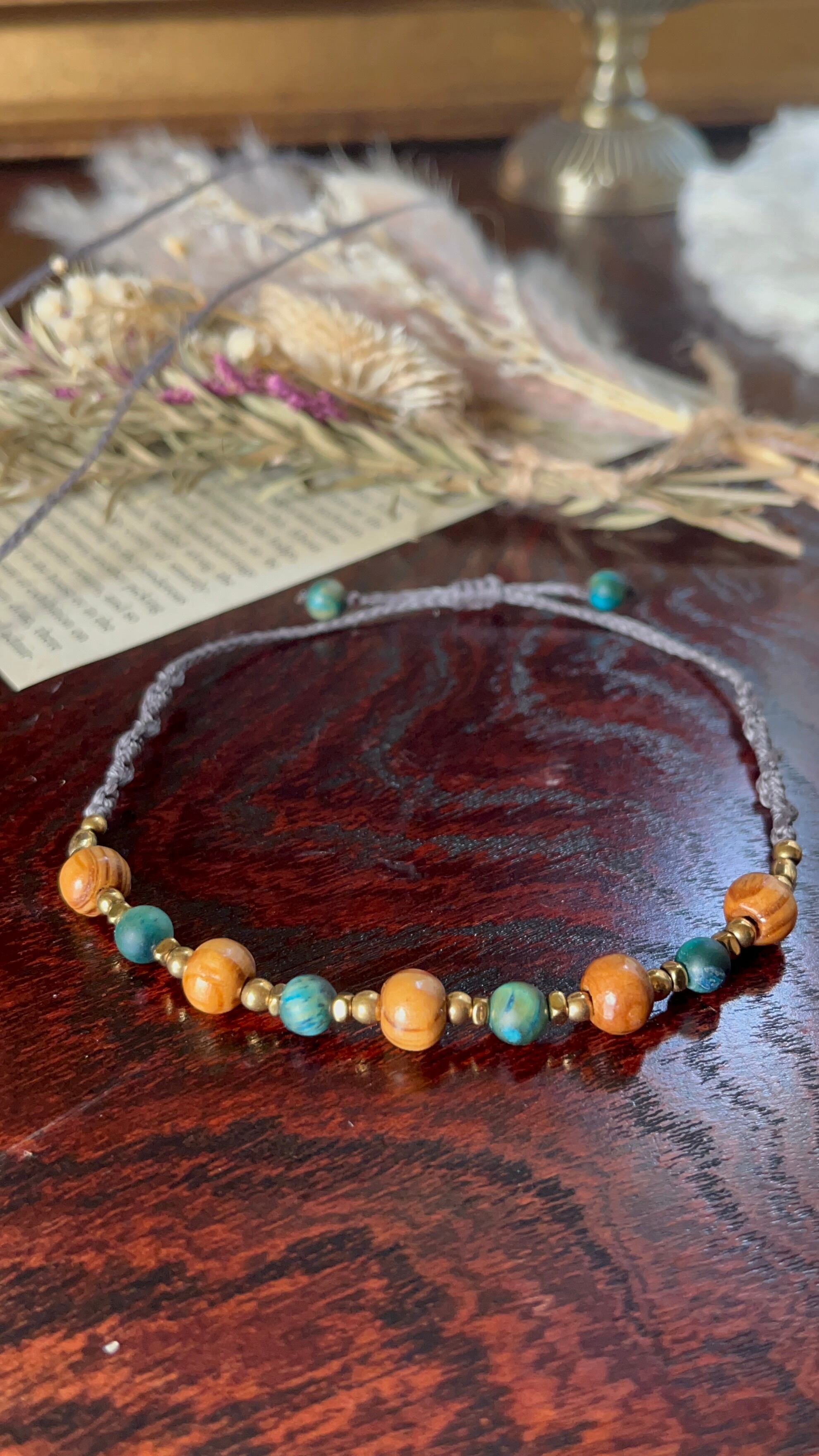 「tiger eye*pine(松)〜anklet」は、神秘的なタイガーアイと木の温もりを感じる松を使用した素敵なマクラメアンクレットです。手作業で丁寧に編まれたこのアンクレットは、シンプルでありながら存在感があり、どんなスタイルにもマッチします。あなたの日常のアクセントとして、また特別な場面でも活躍するアイテムです。
