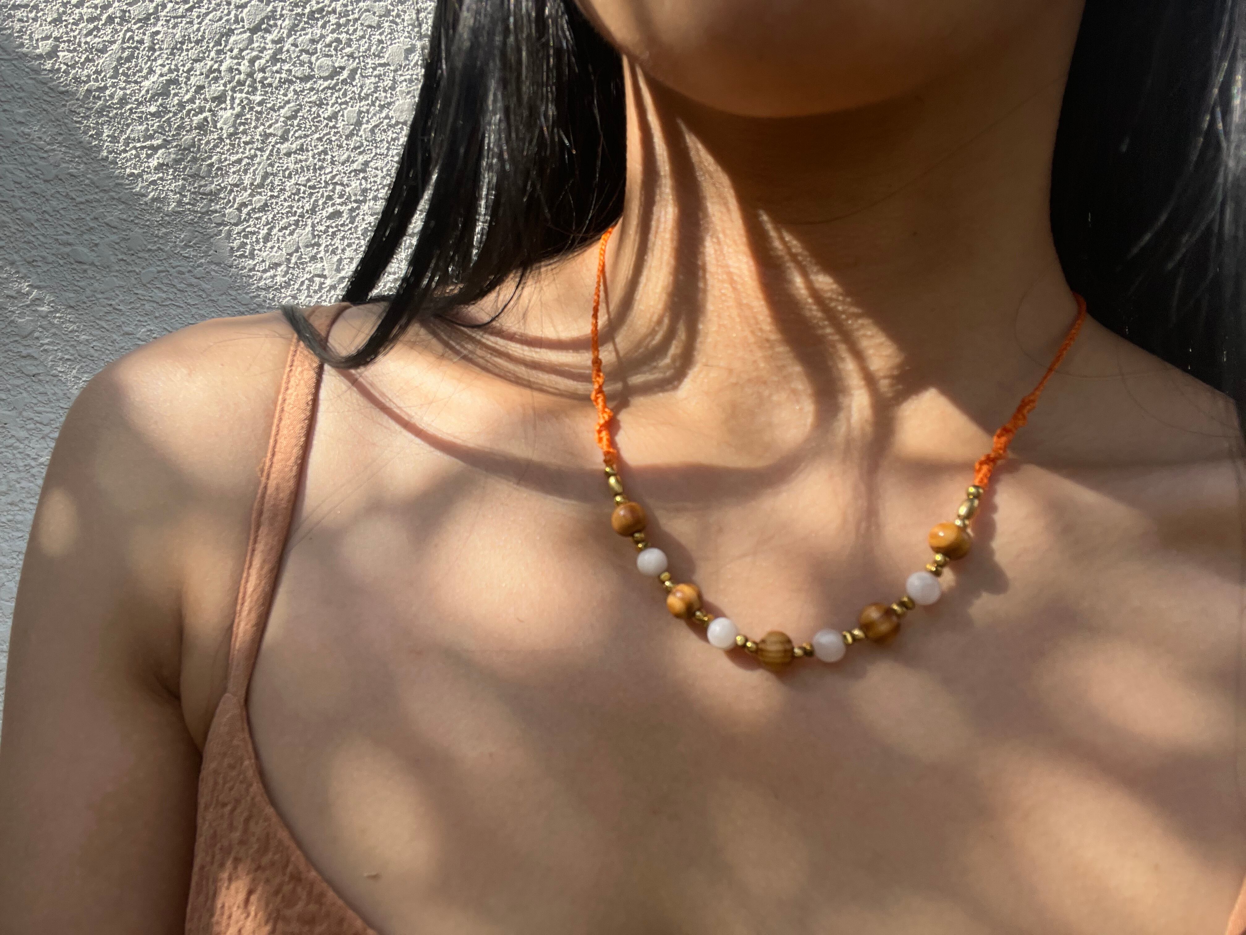 鮮やかなオレンジのトーンがあなたのスタイルに明るさと活気を与え、日常のコーディネートに彩を添えます。このネックレスを身に着けることで、特別な日からカジュアルなシーンまで、自分らしさを引き立てるお手伝いをいたします。