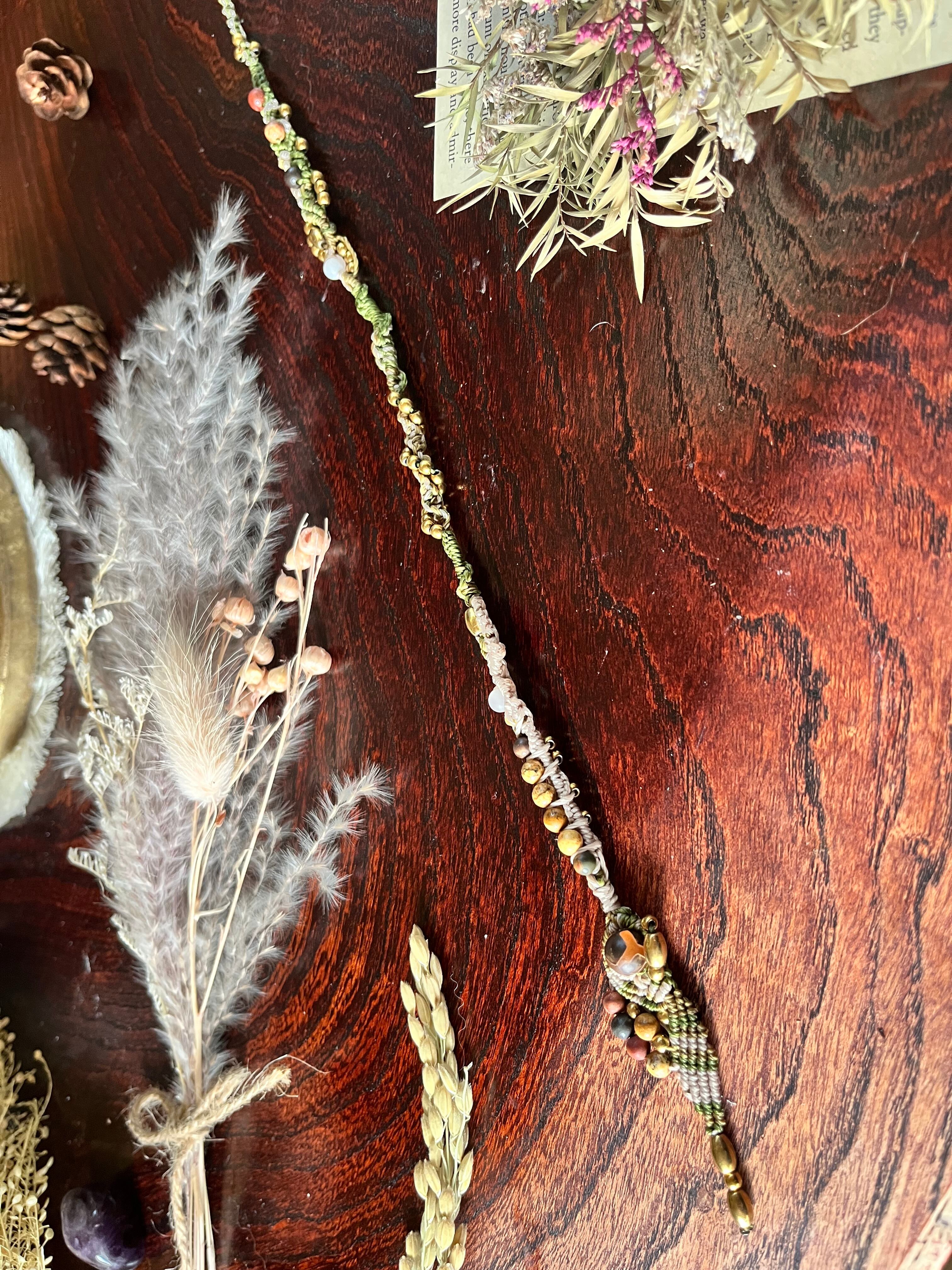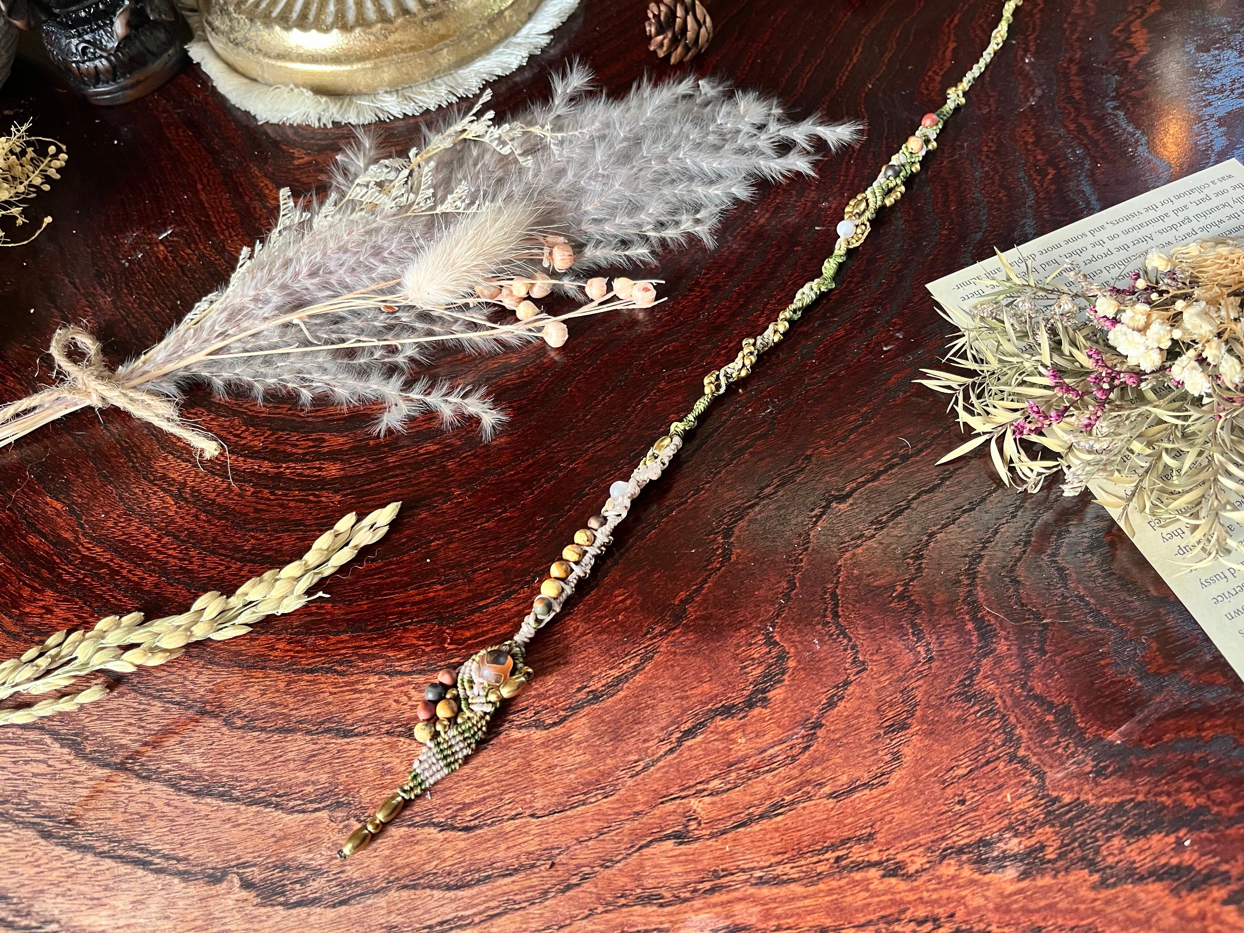 「WITNESS OF BEAUTY*美の証人」は、天然石を使用したマクラメエクステであり、ジャスパー、クリソコラ、ヘマタイトの繊細なバランスが魅力です。このエクステは、個性を引き立てる特別なアイテムとして、あなたの日常を美しく彩ります。