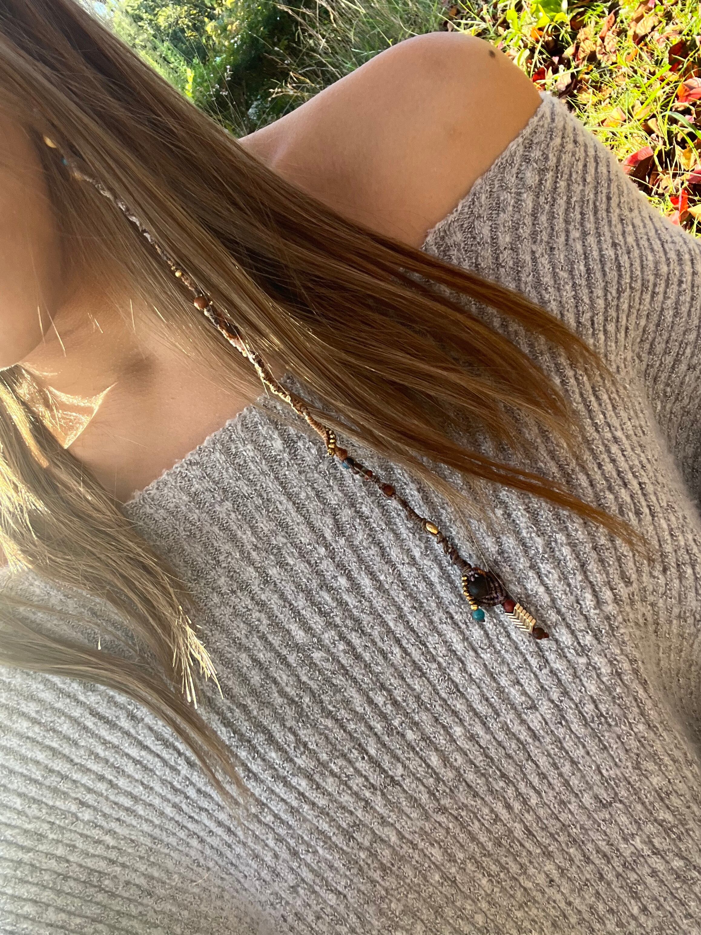 このエクステは手作業で丁寧に編まれ、天然石の美しさを最大限に活かしたデザインです。
